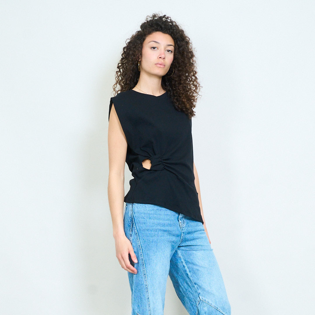 Asymmetrical knot side cut out sleeveless top wholesale
