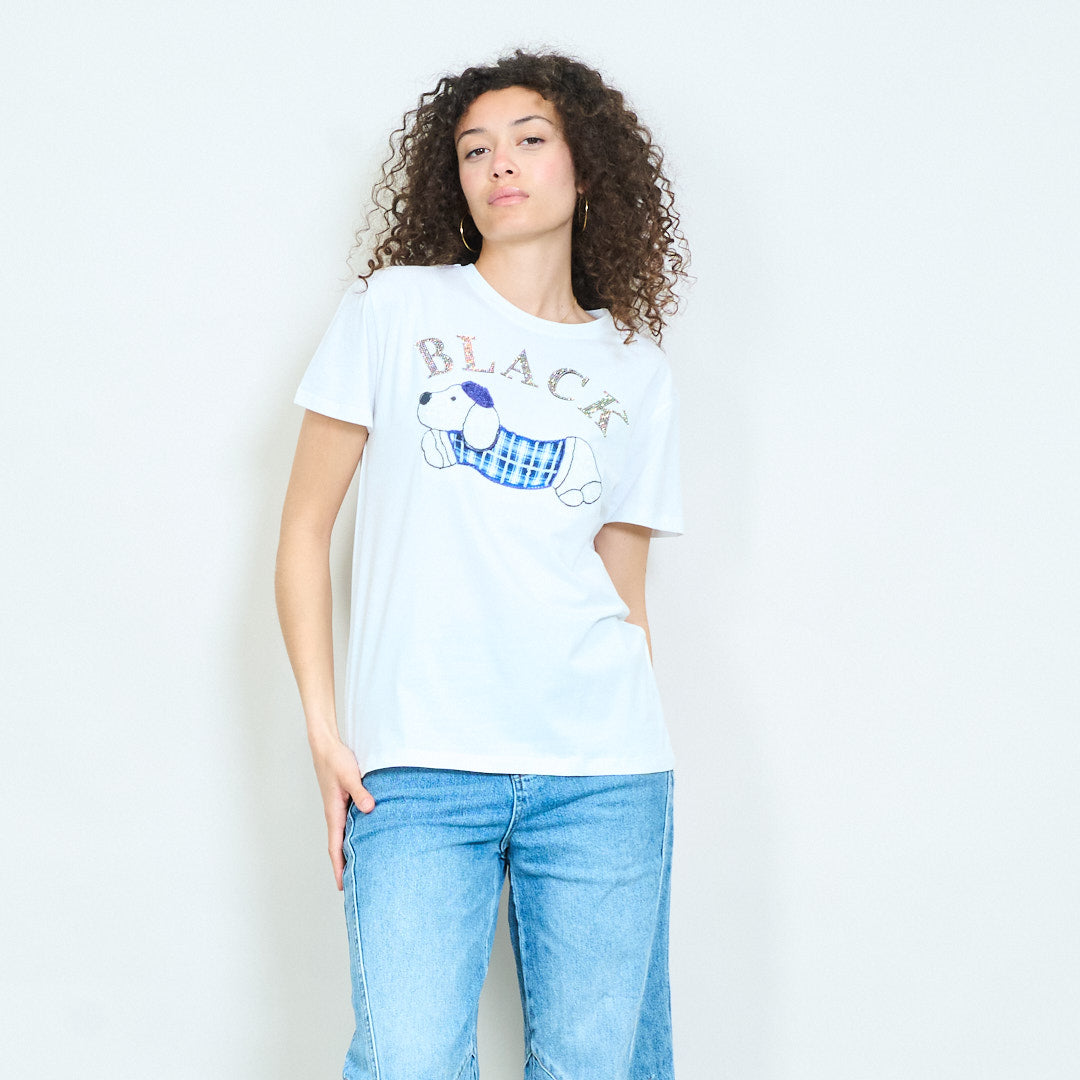 Animalia graphic dog chequered print "Black" relaxed t-shirt wholesale