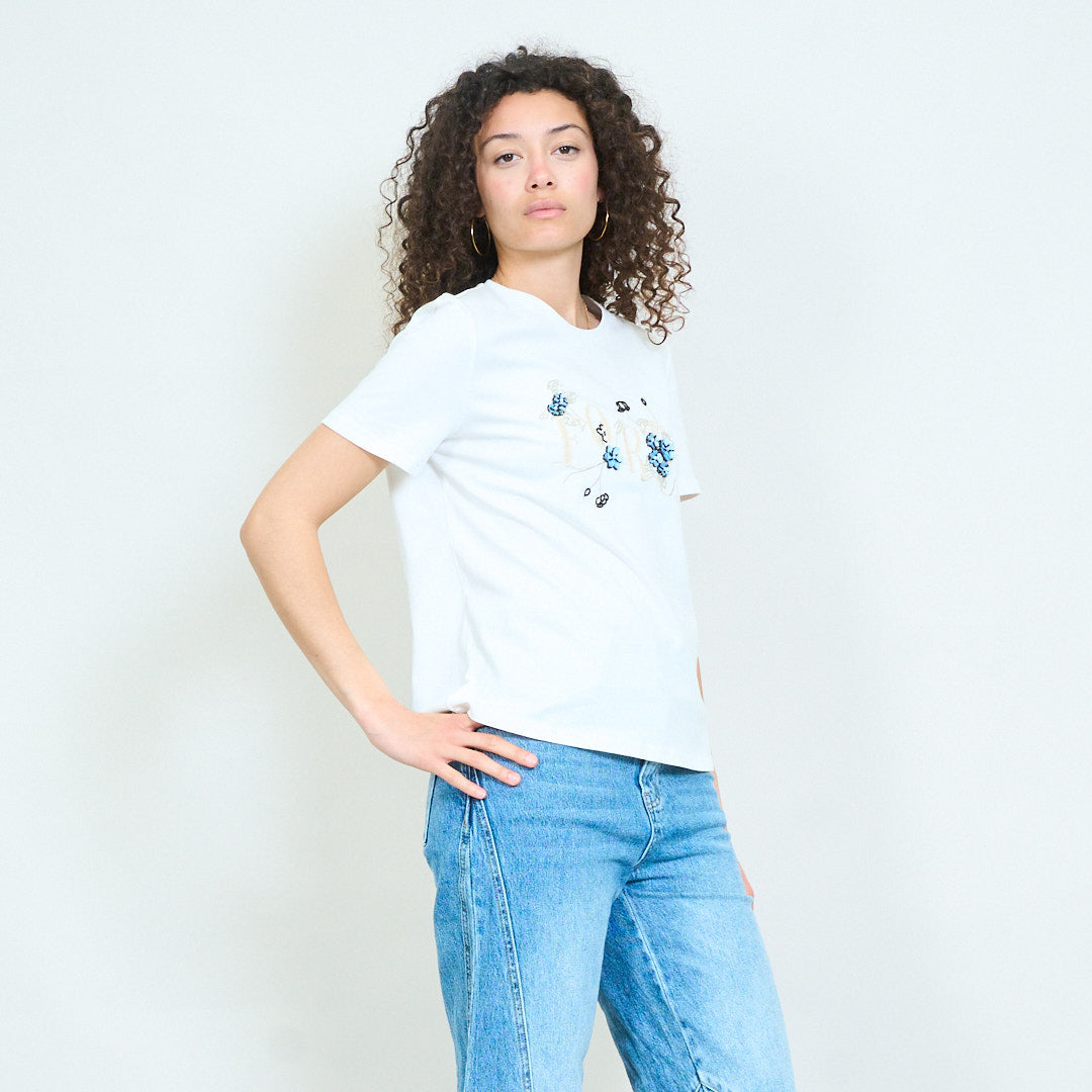 Floral graphic lettering detail fitted t-shirt wholesale
