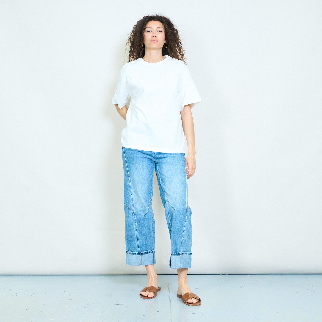 Floral minimalist oversized short sleeve round neck t-shirt wholesale