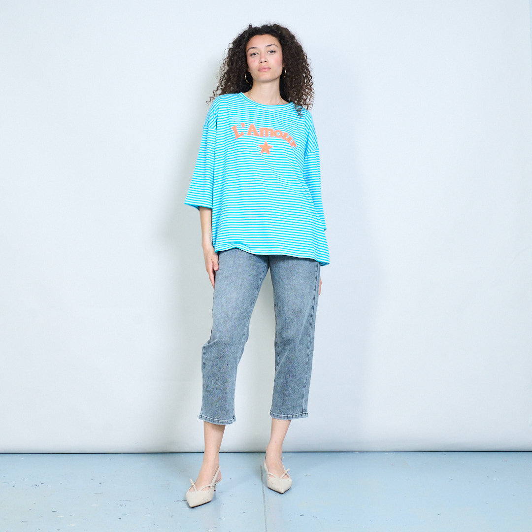 Striped "L’Amour" star graphic oversized t-shirt wholesale