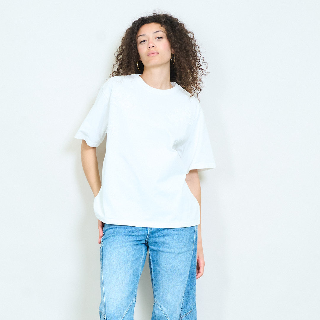 Floral minimalist oversized short sleeve round neck t-shirt wholesale