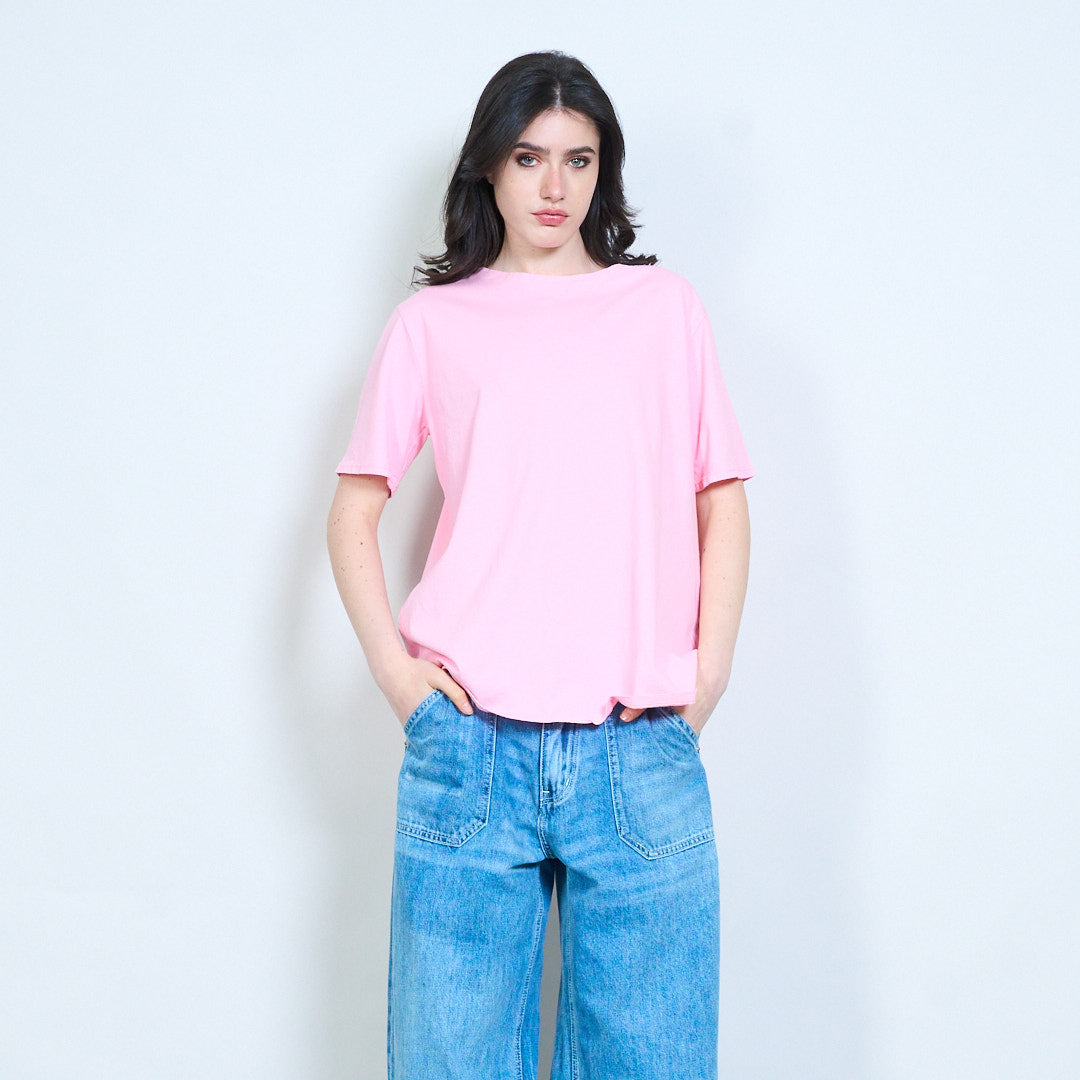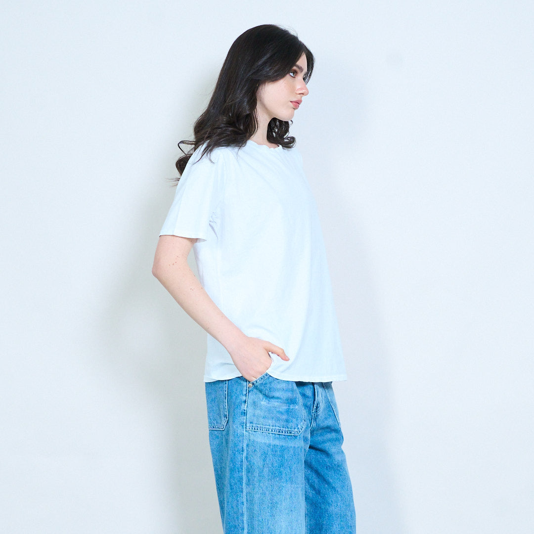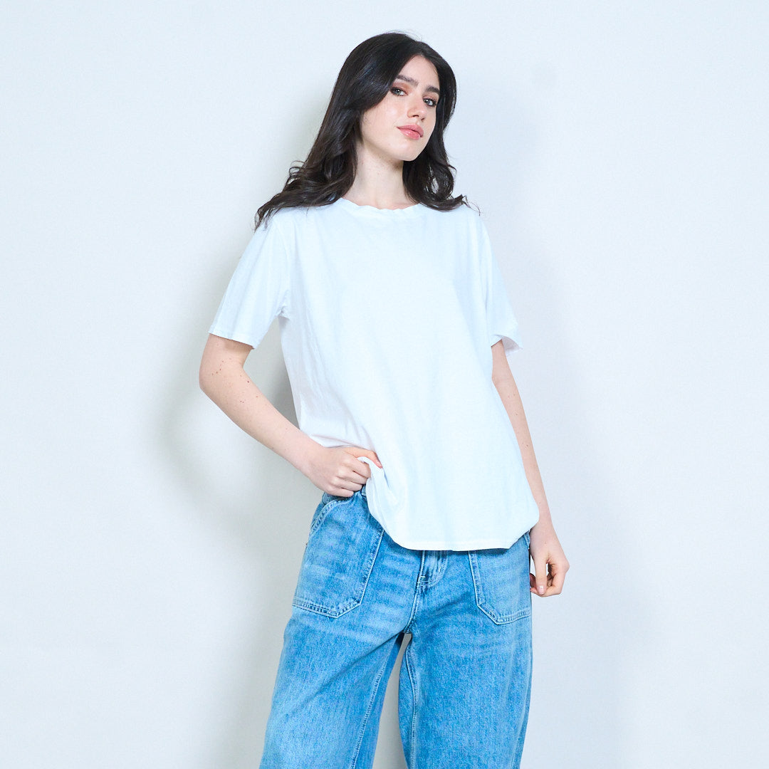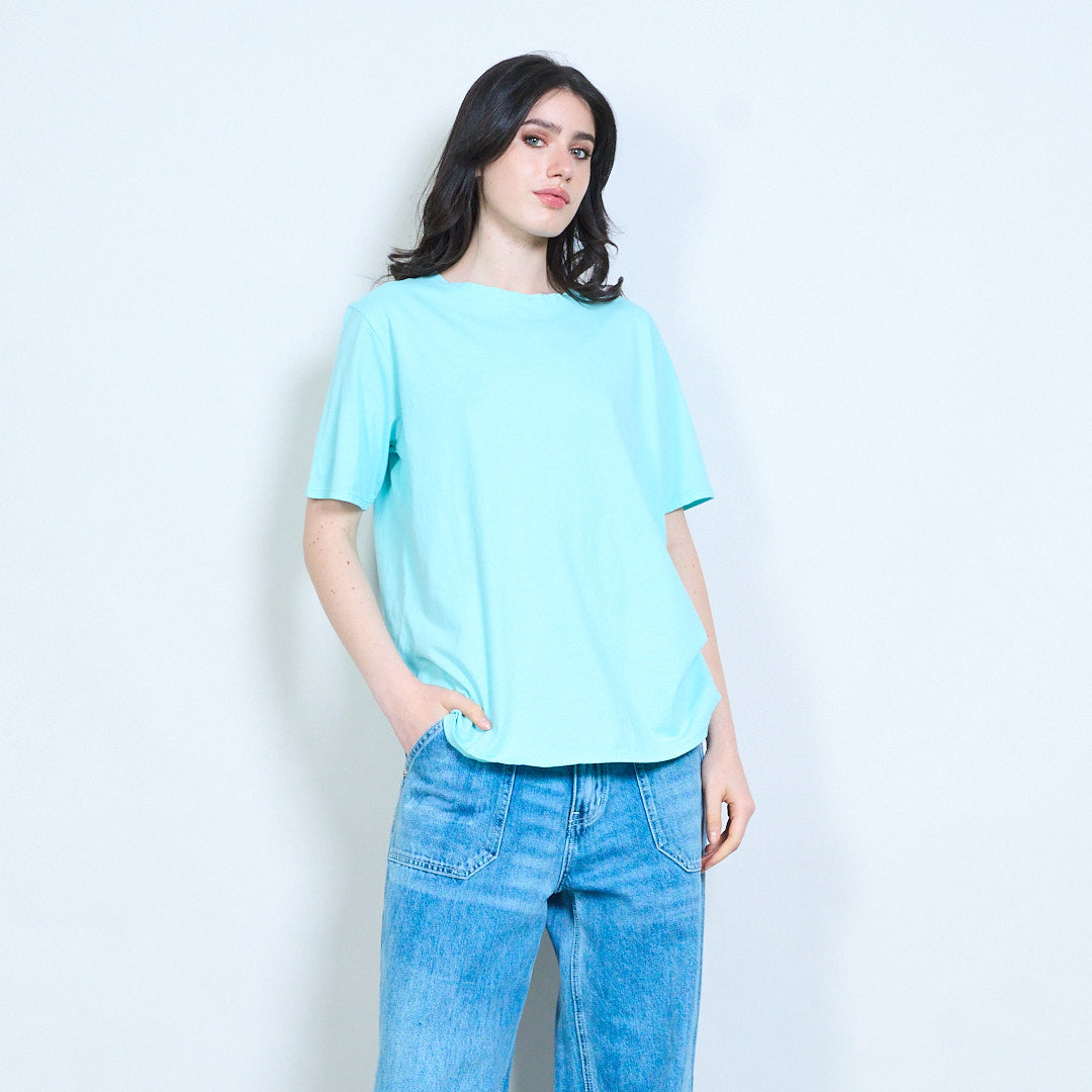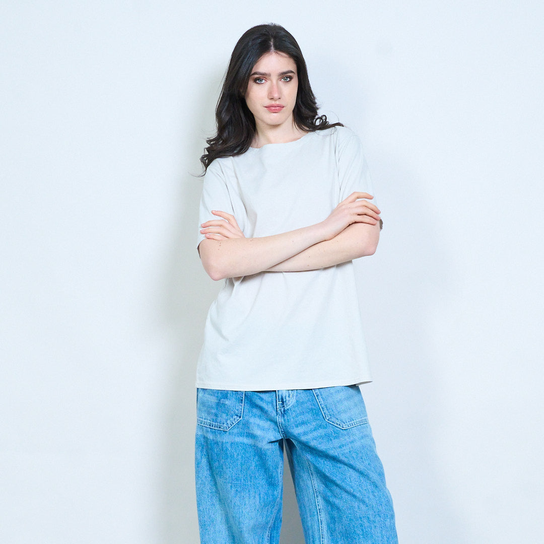 - Classic round neckline with clean finish