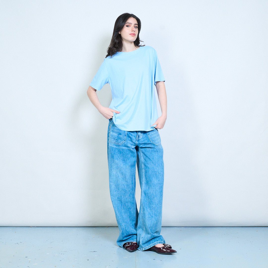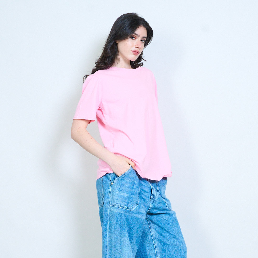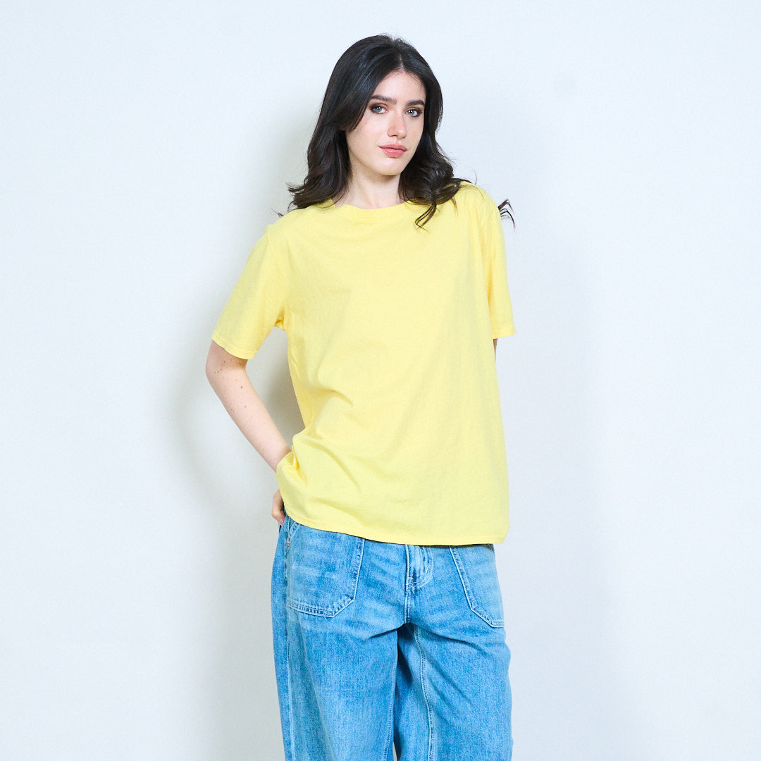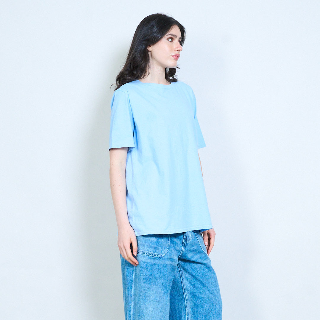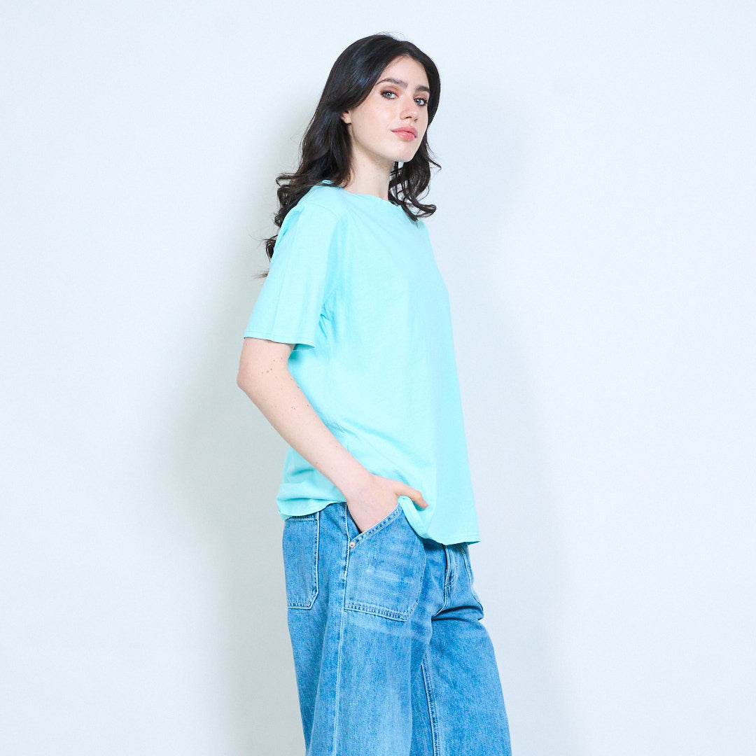 - Classic round neckline with clean finish