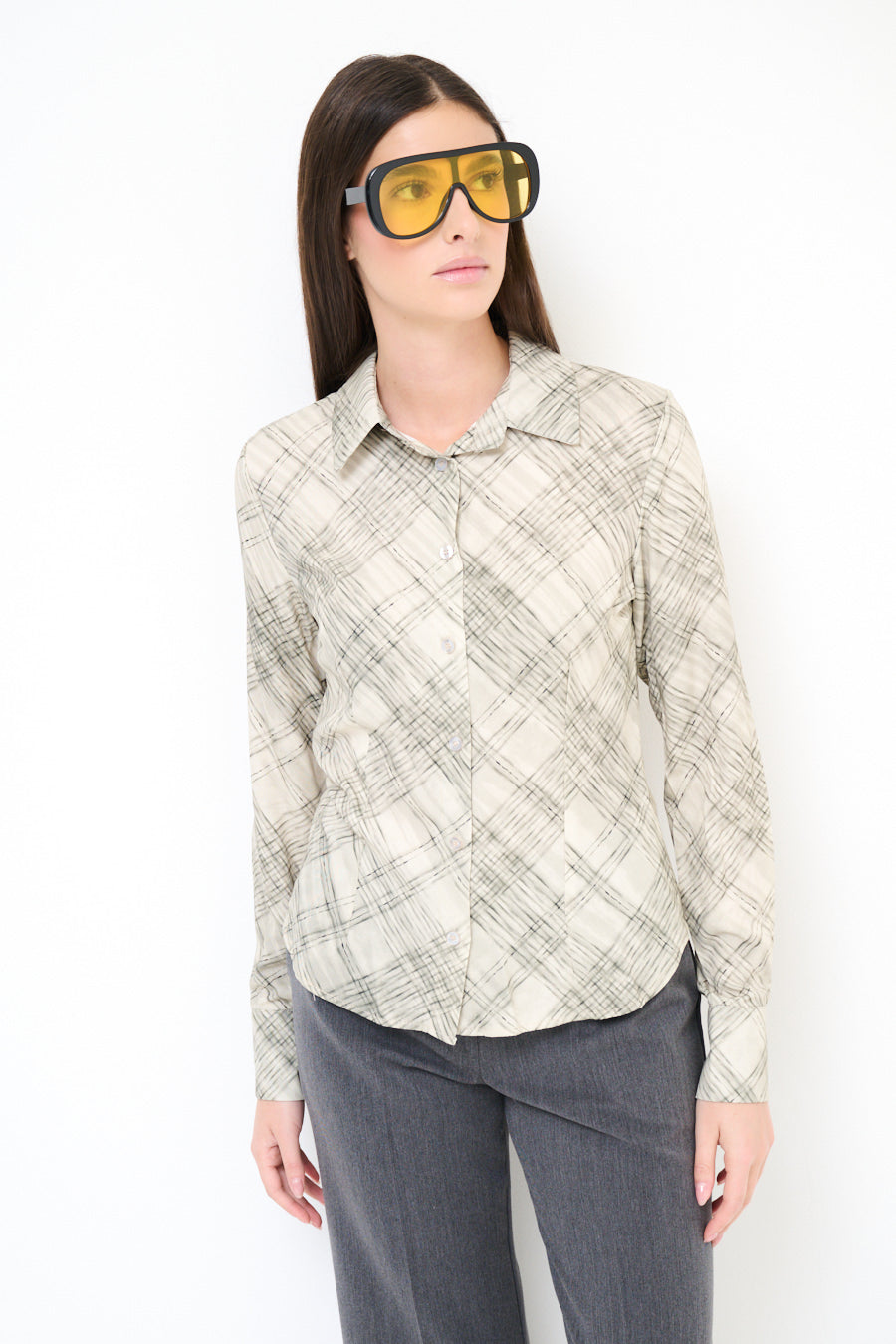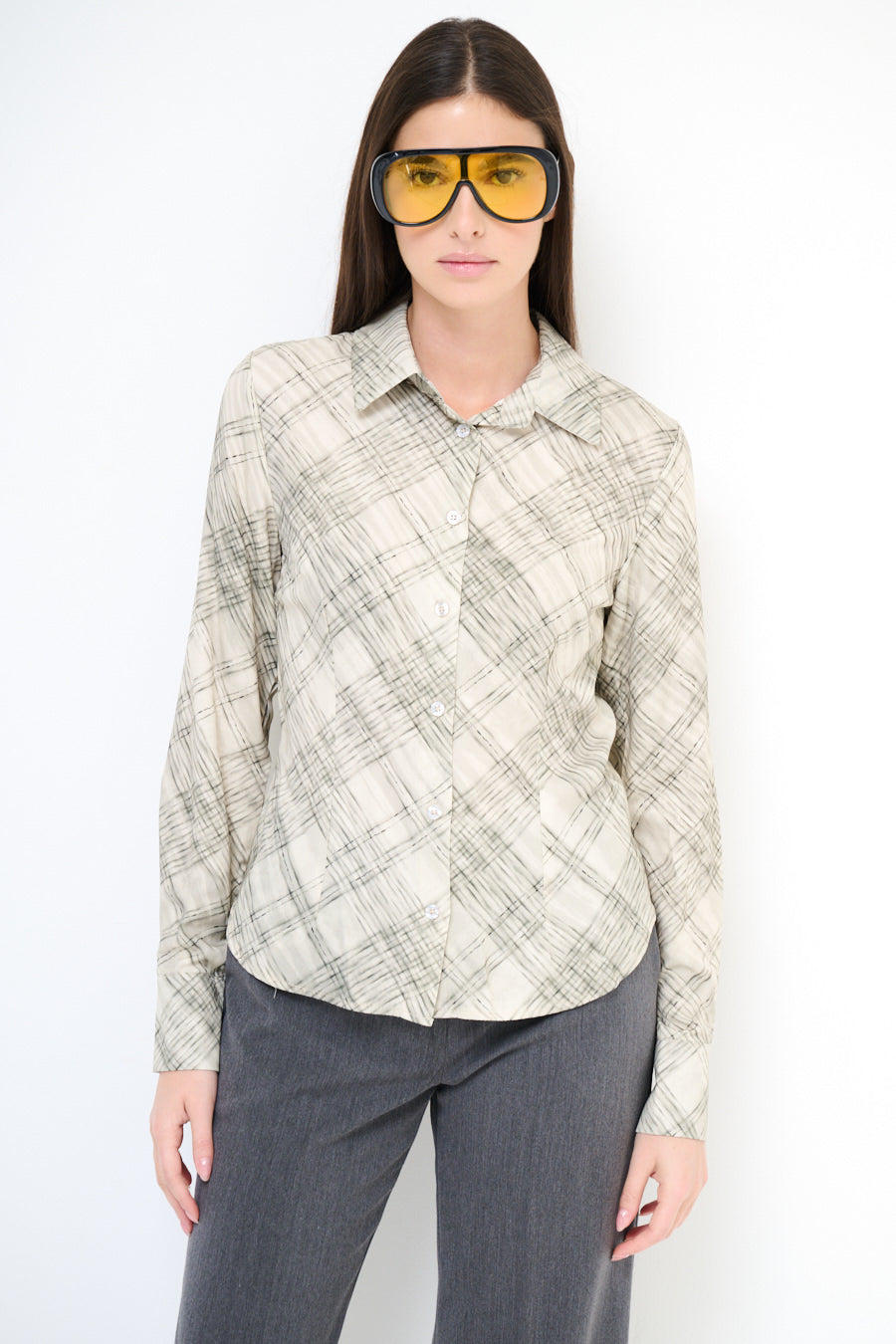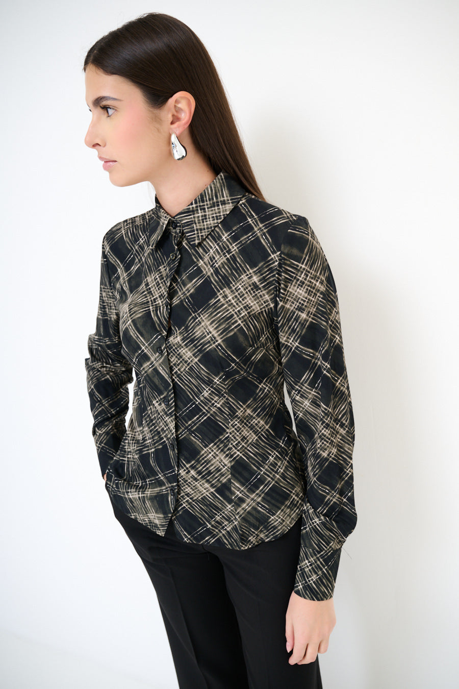 Abstract chequered long sleeve button shirt wholesale
