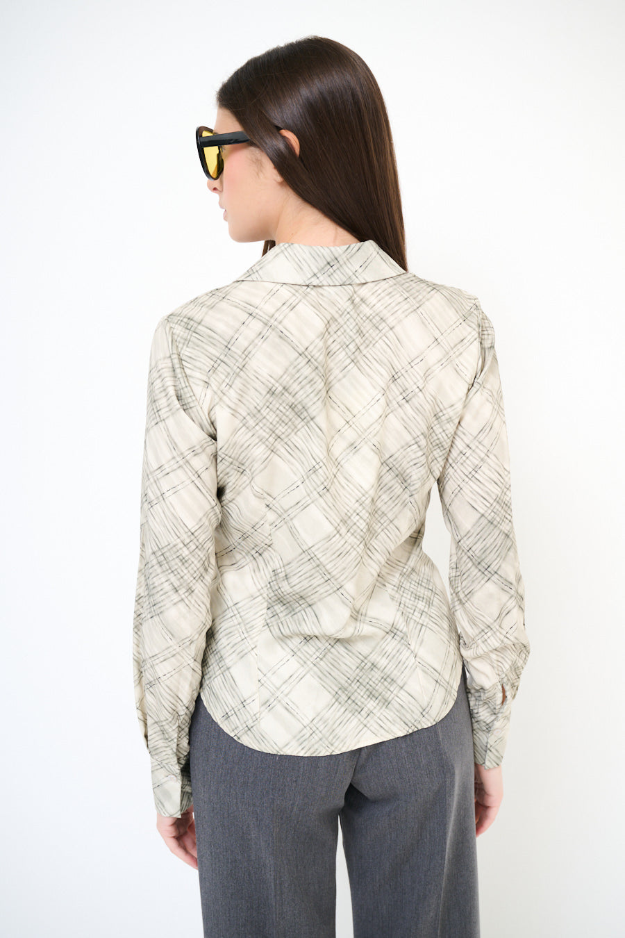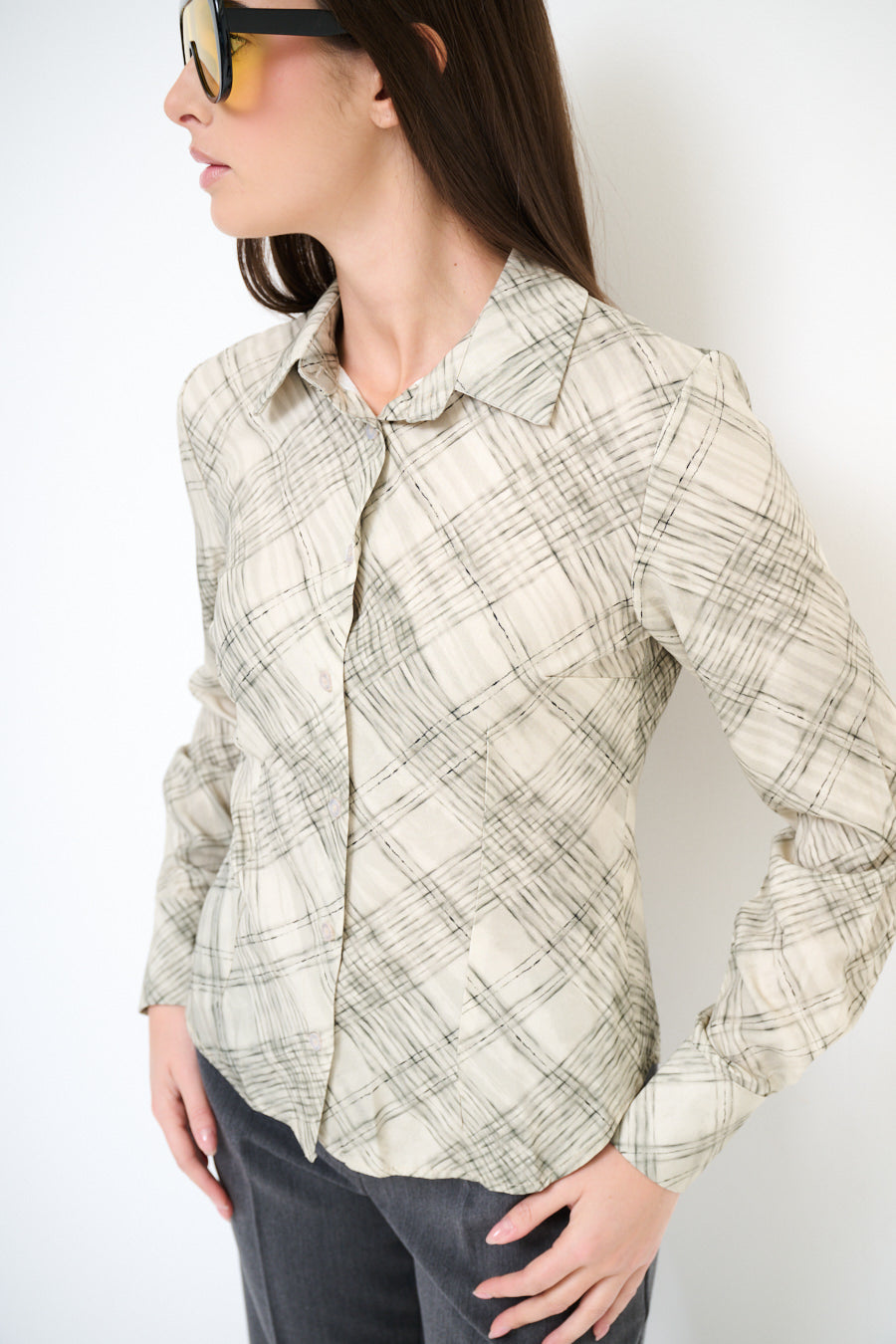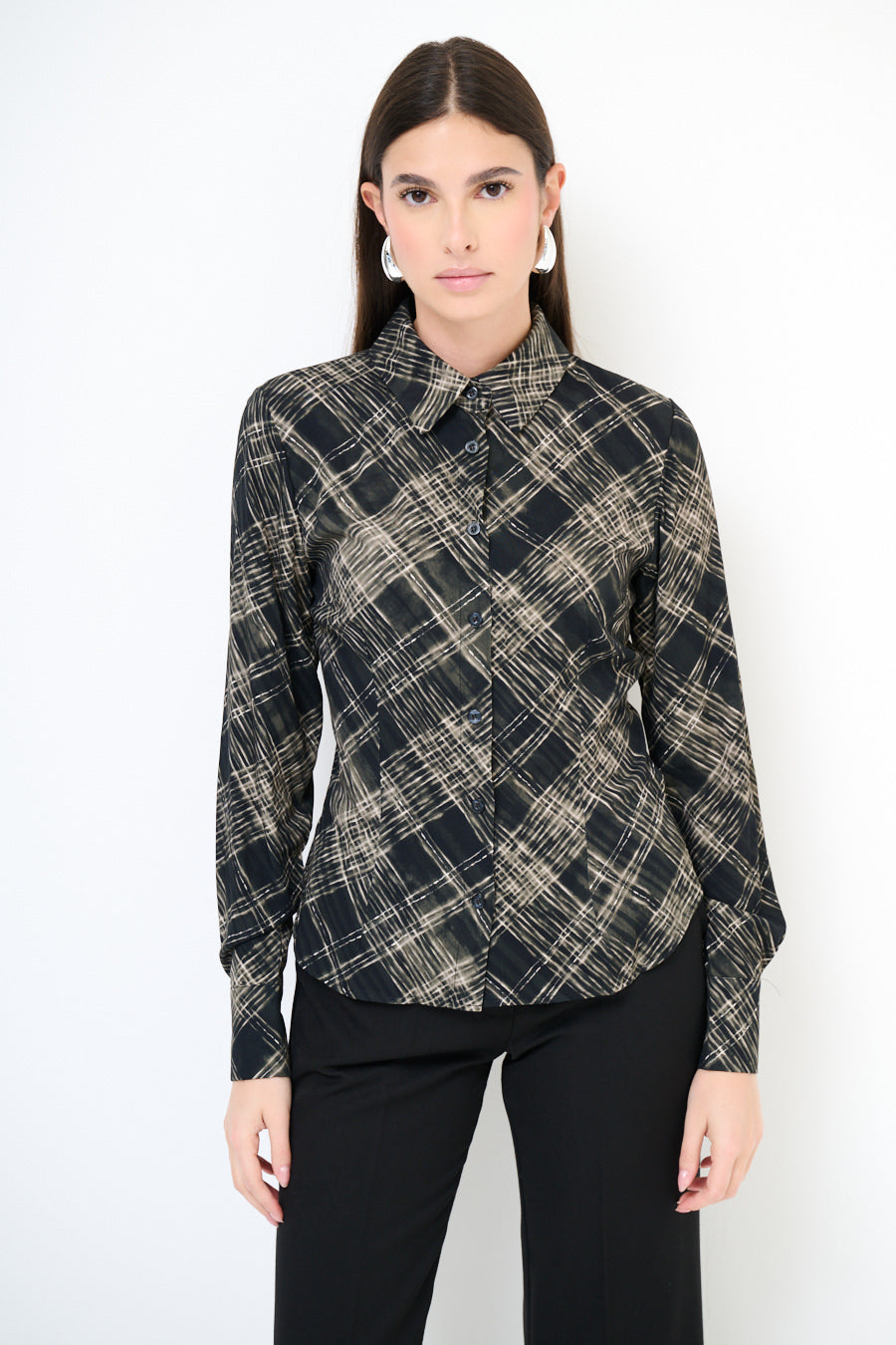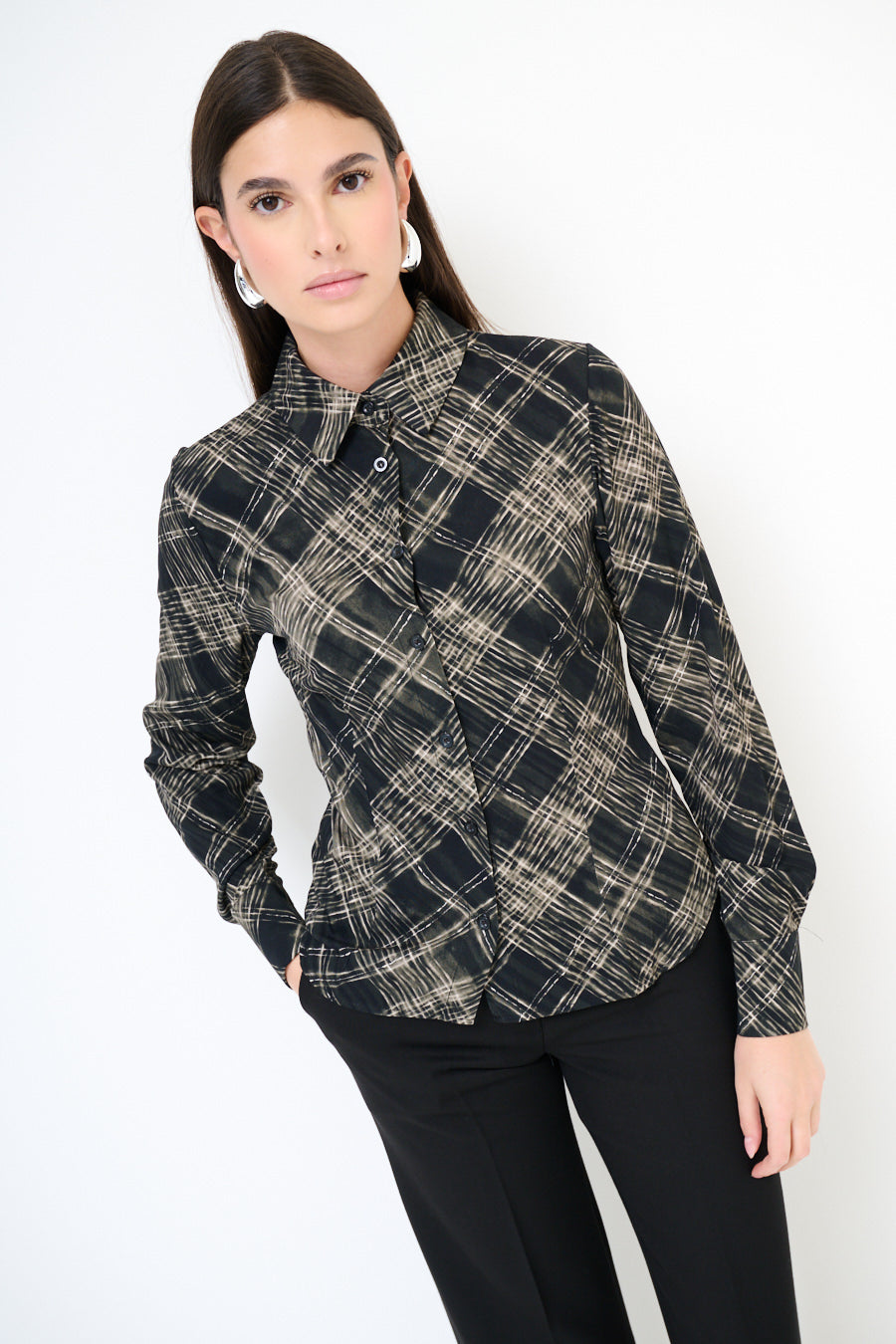 Abstract chequered long sleeve button shirt wholesale