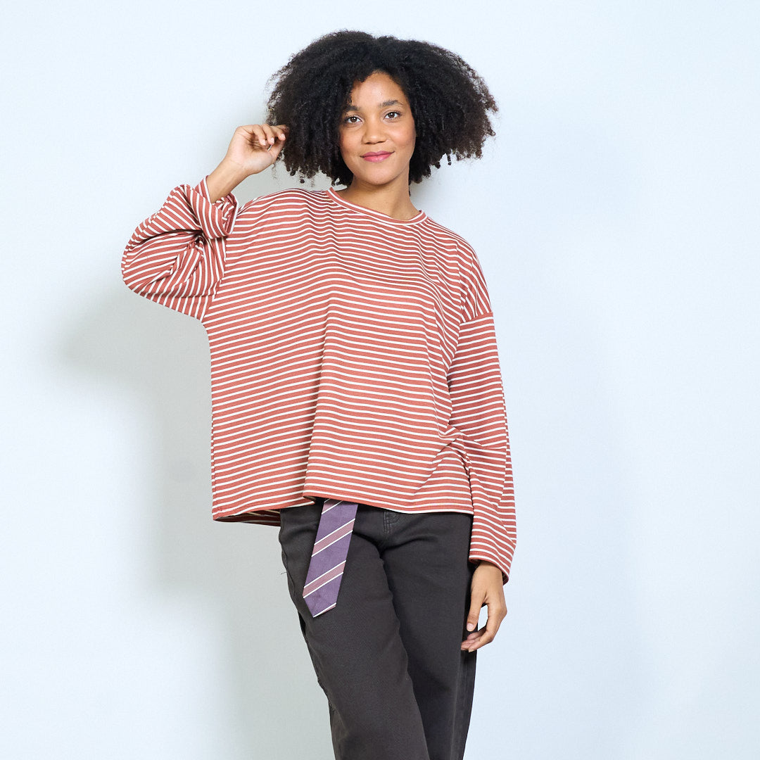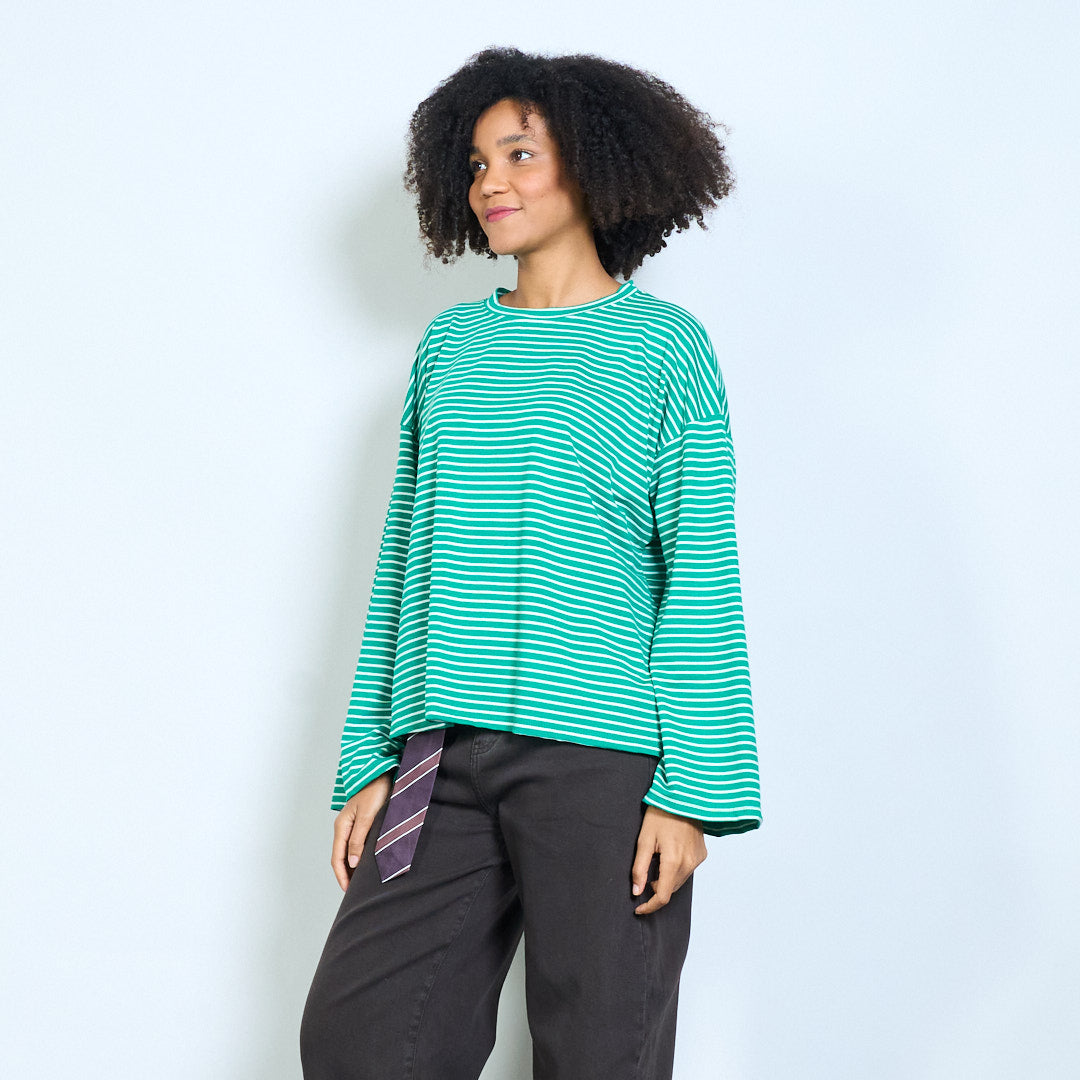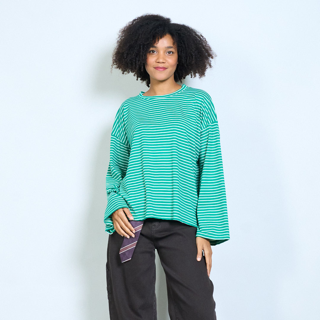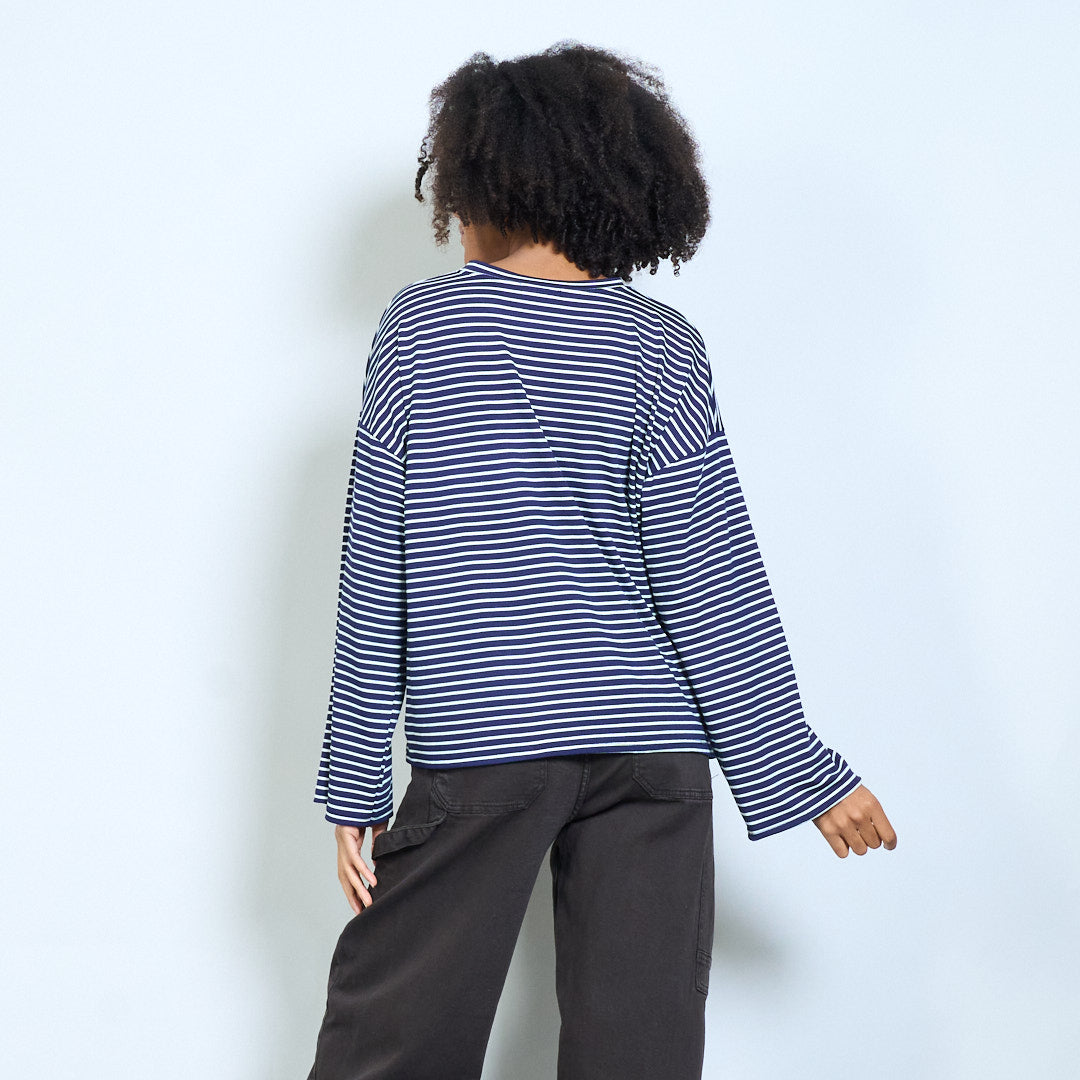 Classic contrast striped round-neck long-sleeve knit top wholesale