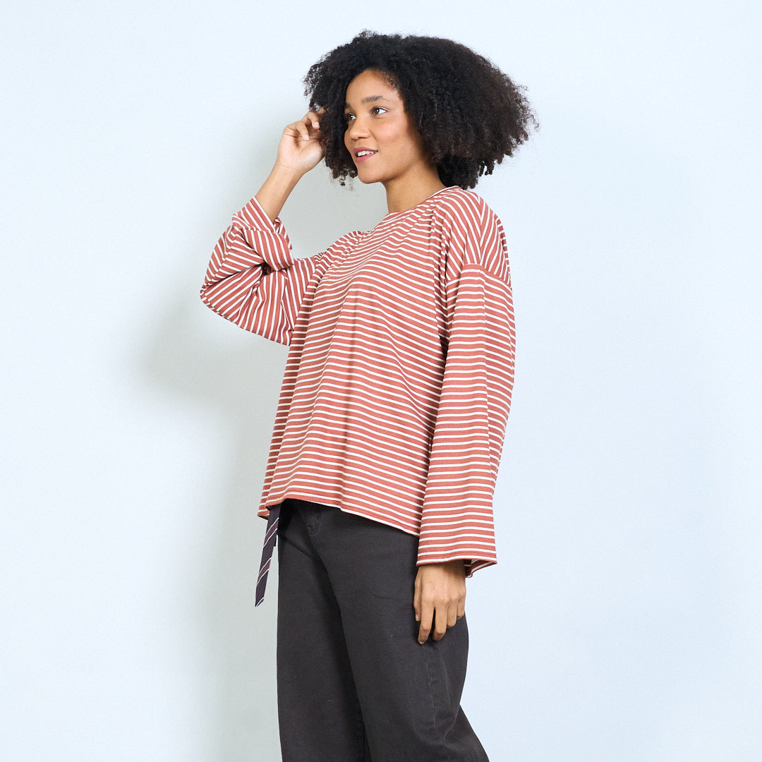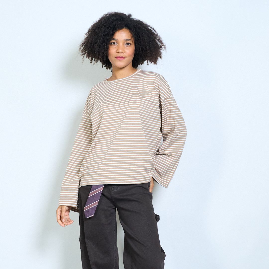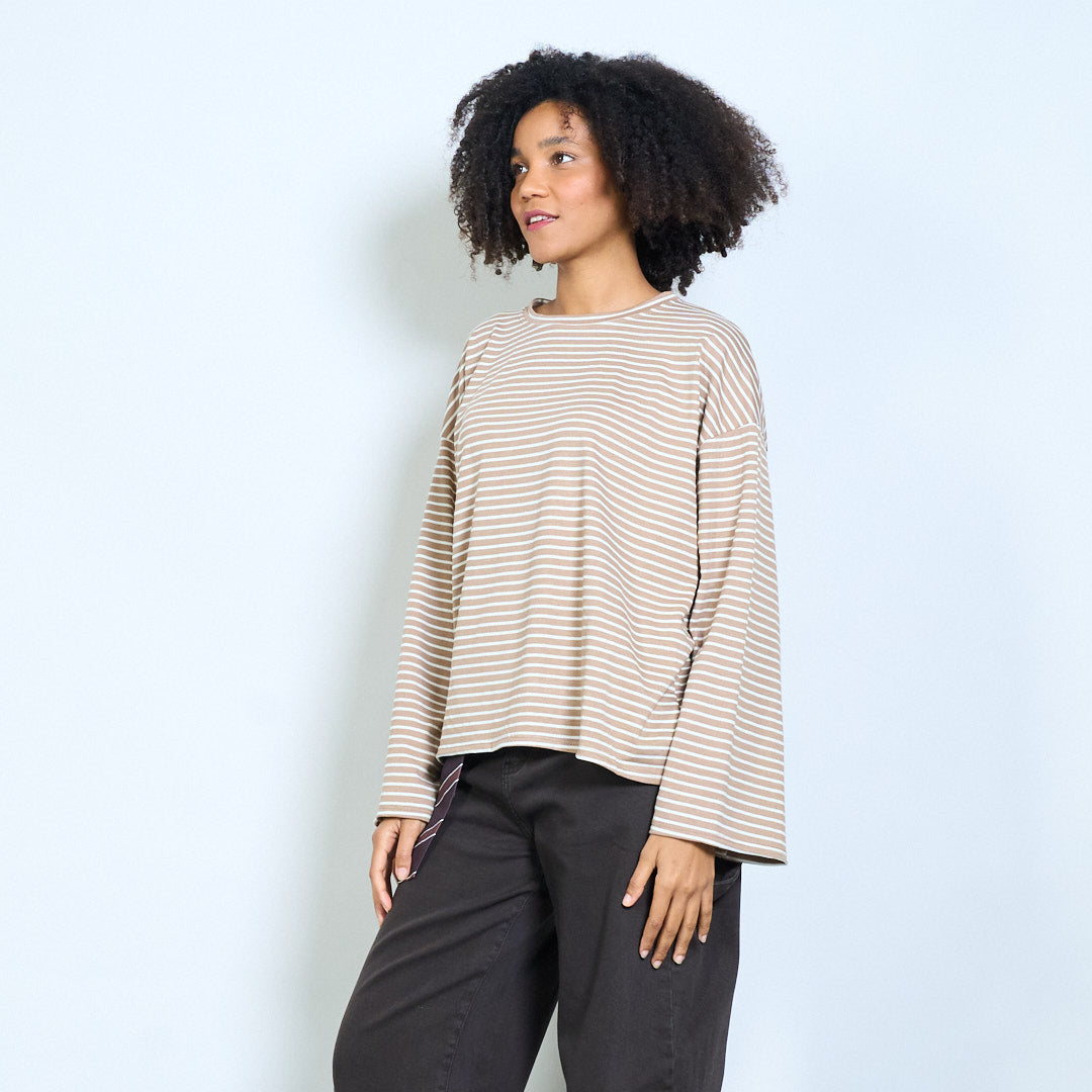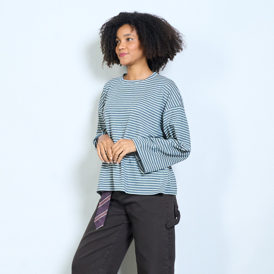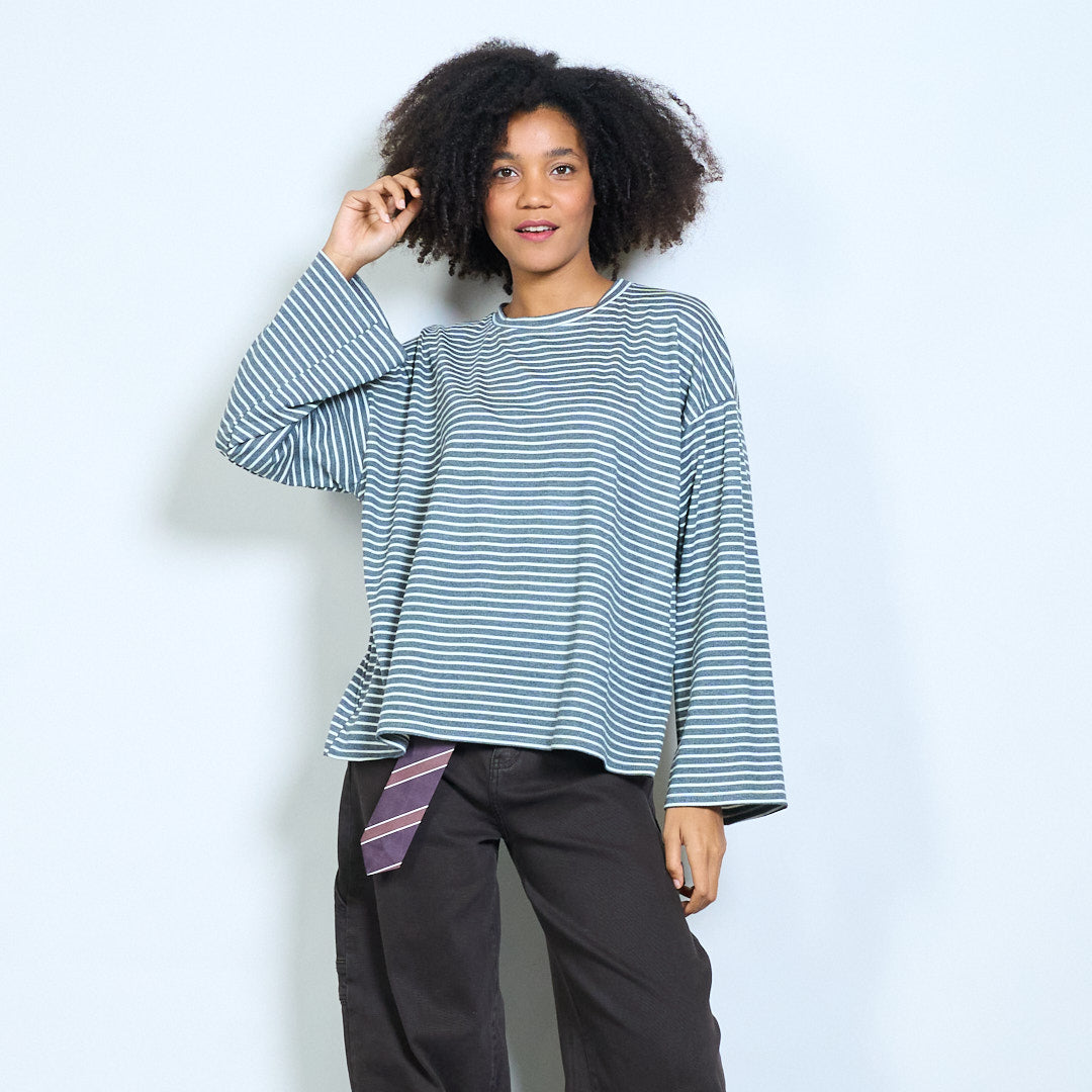 Classic contrast striped round-neck long-sleeve knit top wholesale