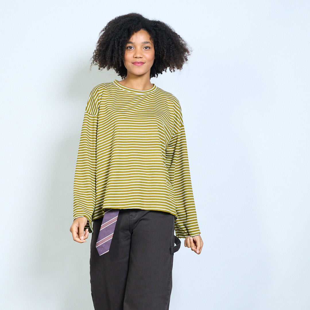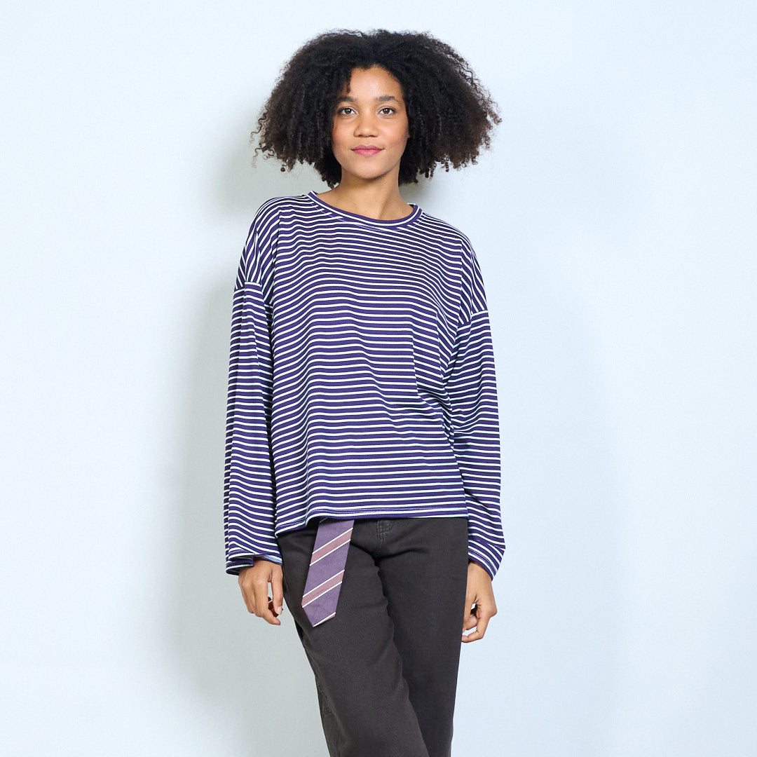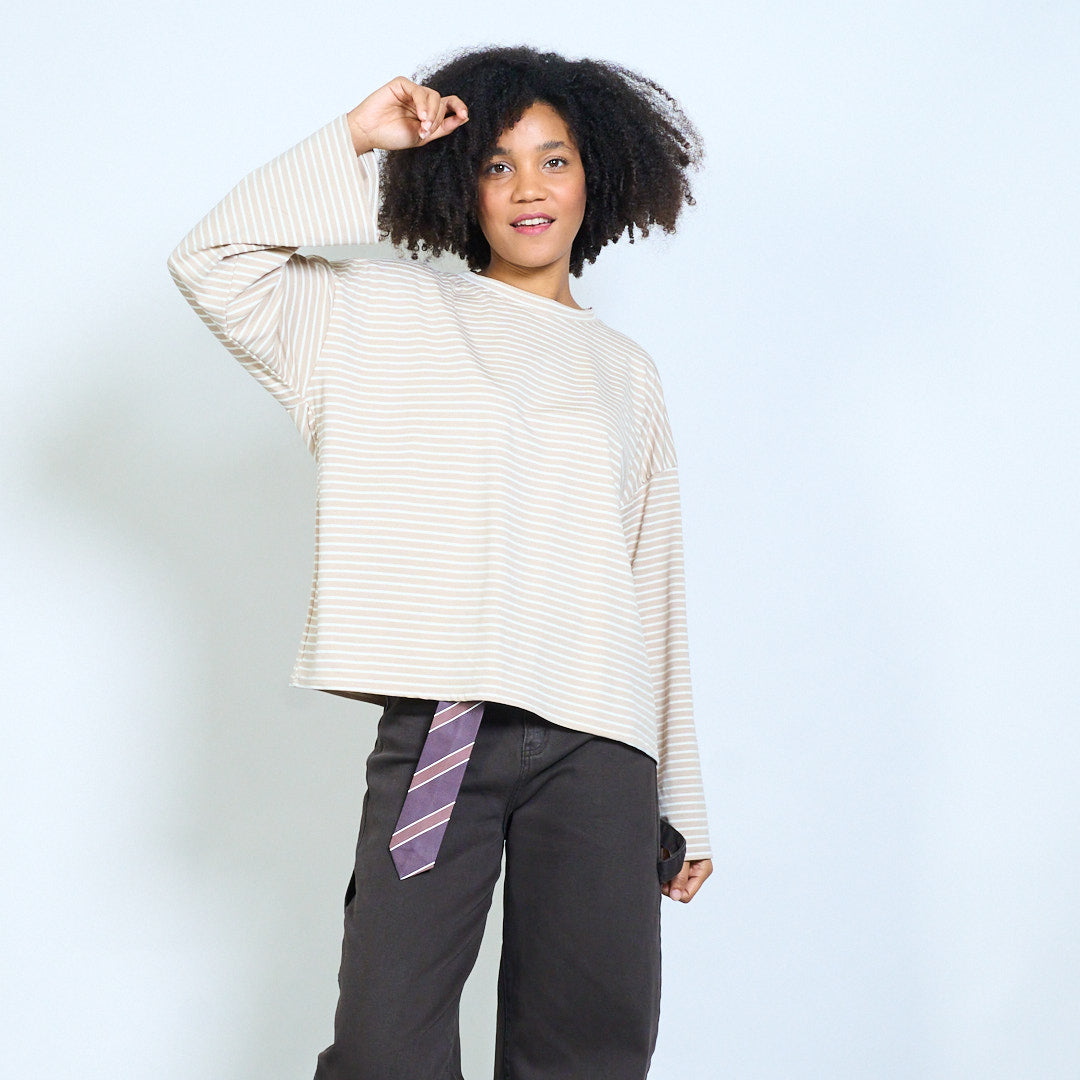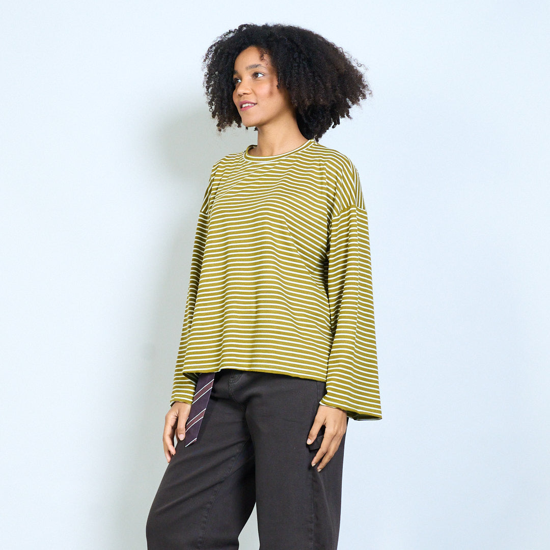 Classic contrast striped round-neck long-sleeve knit top wholesale