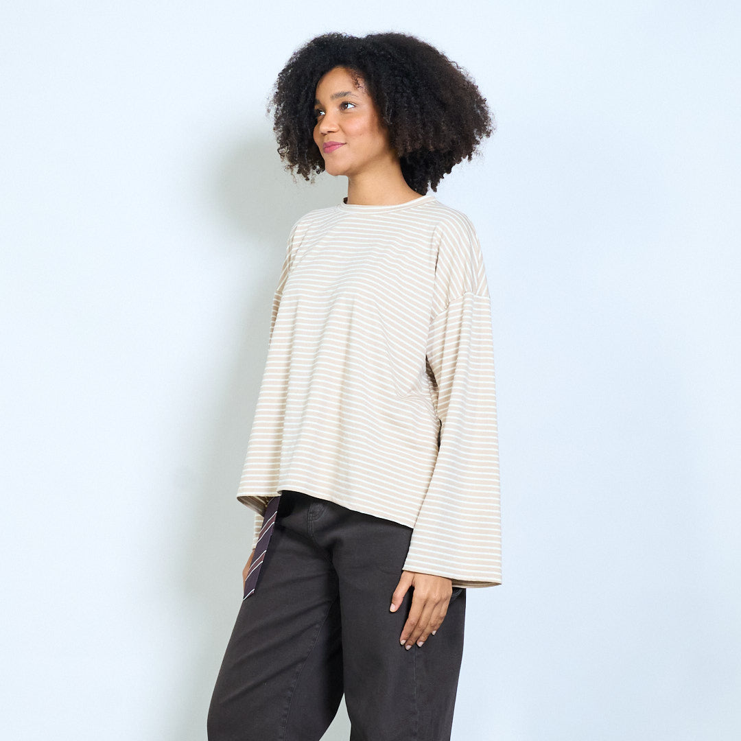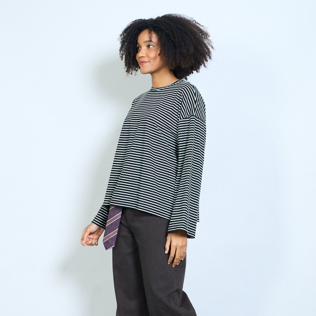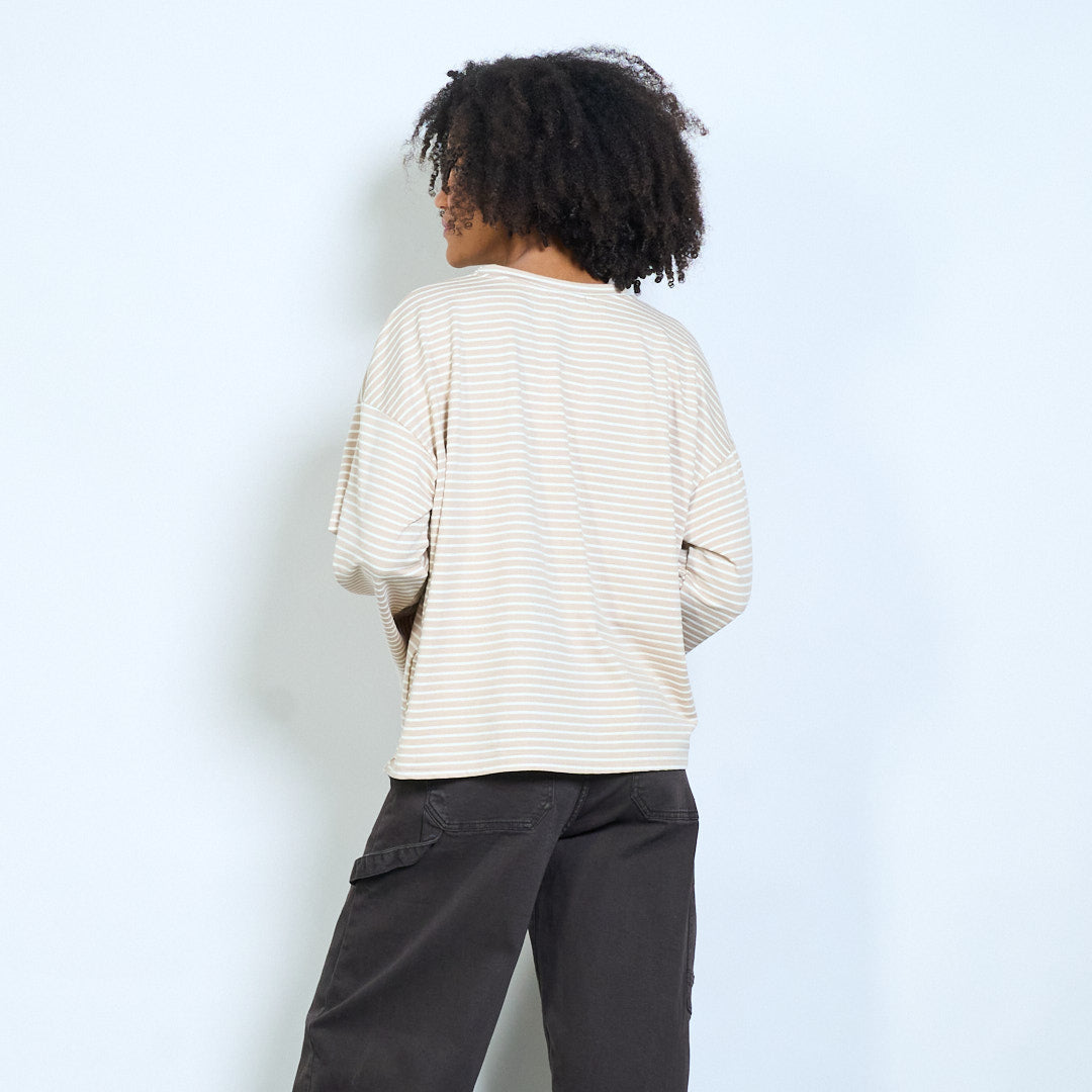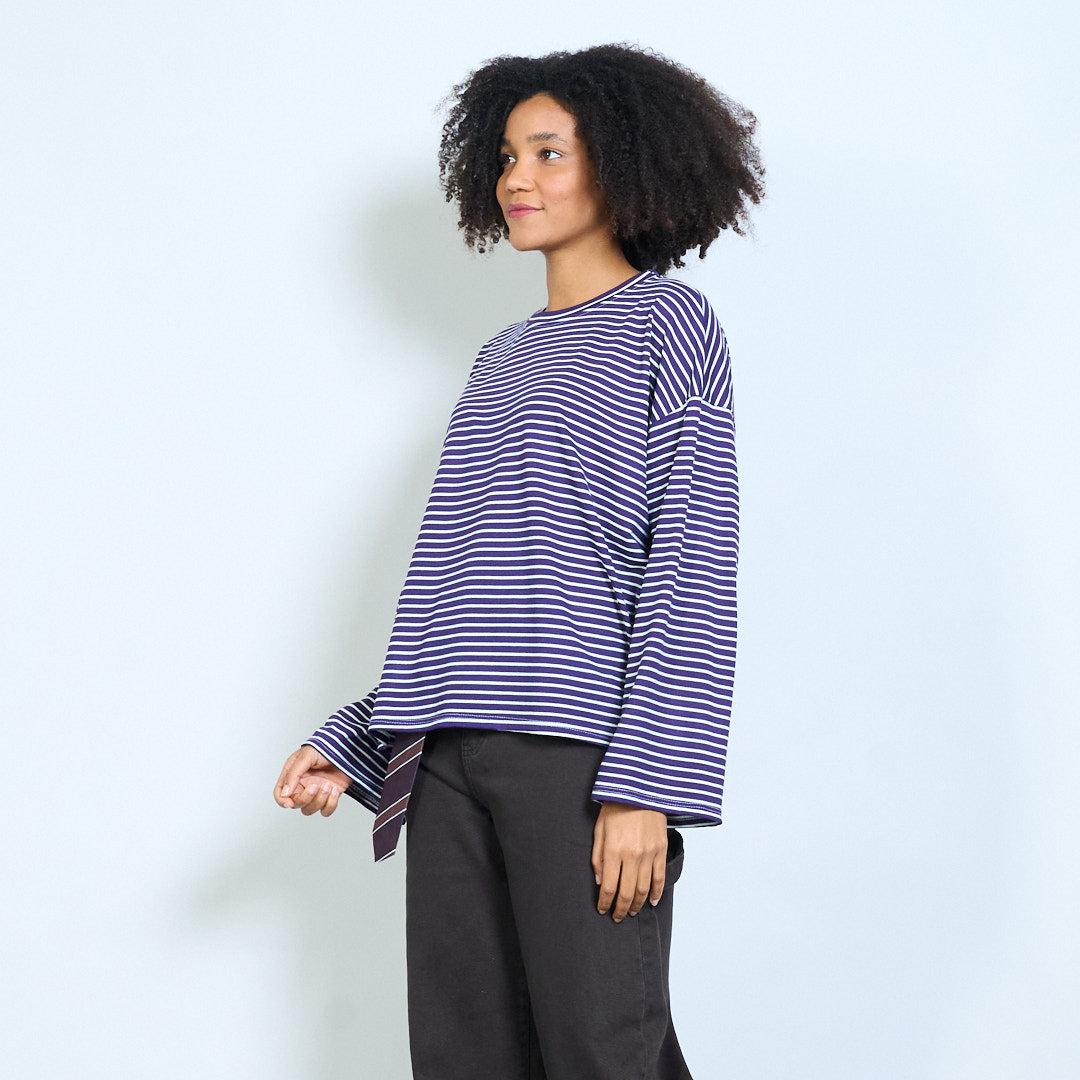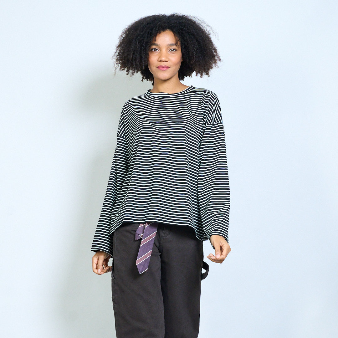 Classic contrast striped round-neck long-sleeve knit top wholesale