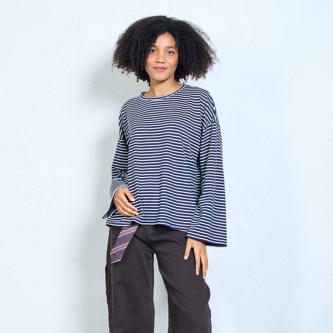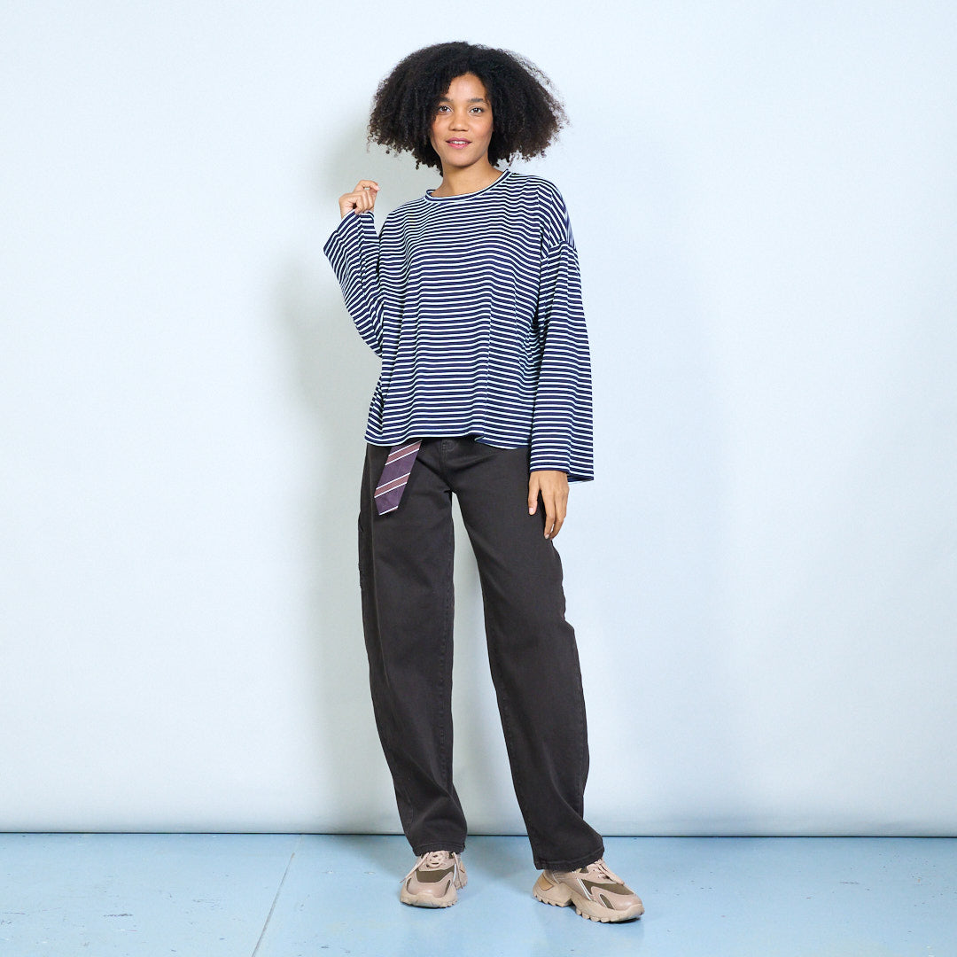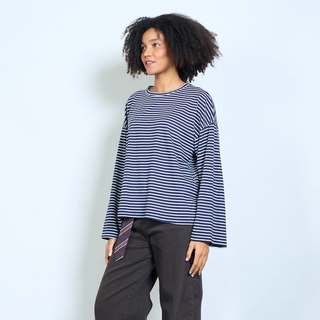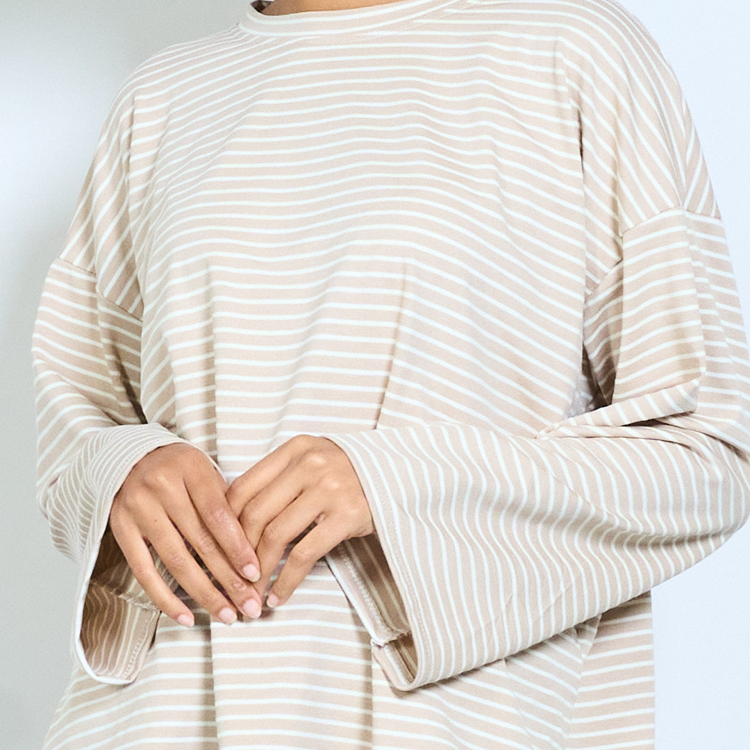 Classic contrast striped round-neck long-sleeve knit top wholesale