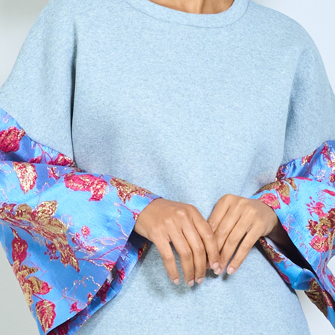 - Features striking embroidered floral bell sleeves for an elegant and artistic touch
