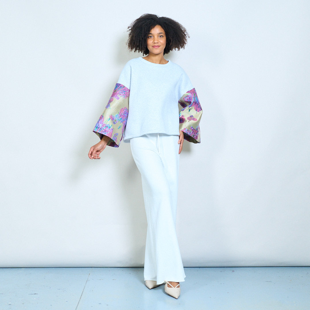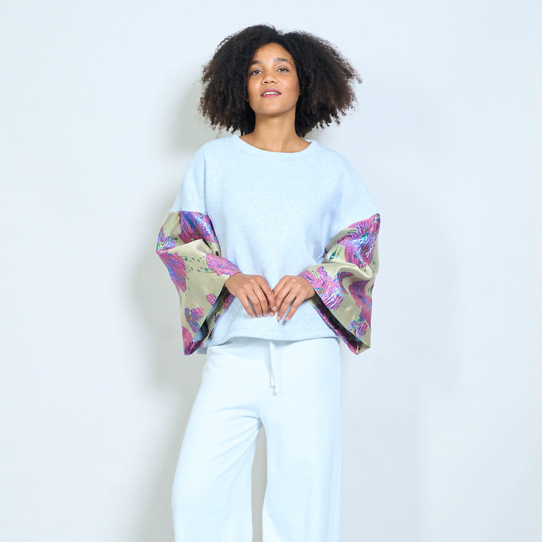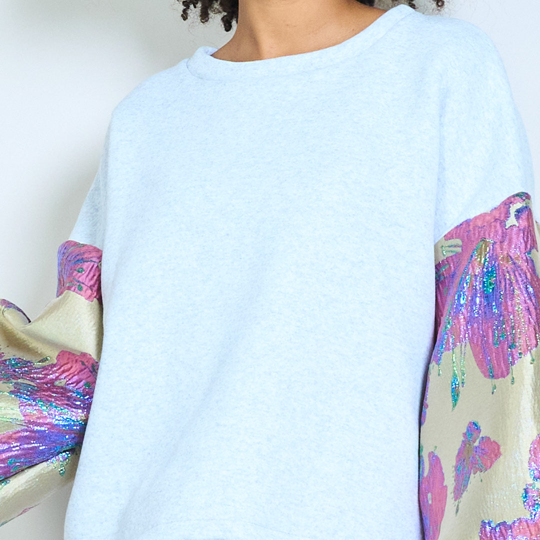 Contrast floral sequin sleeve soft knit sweatshirt wholesale