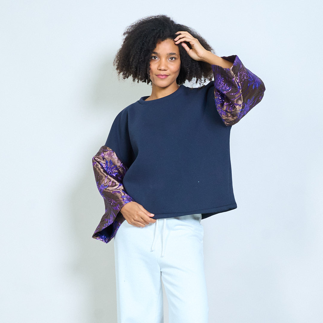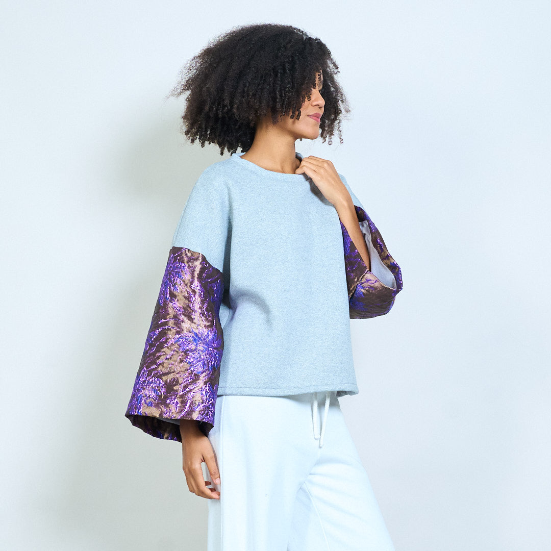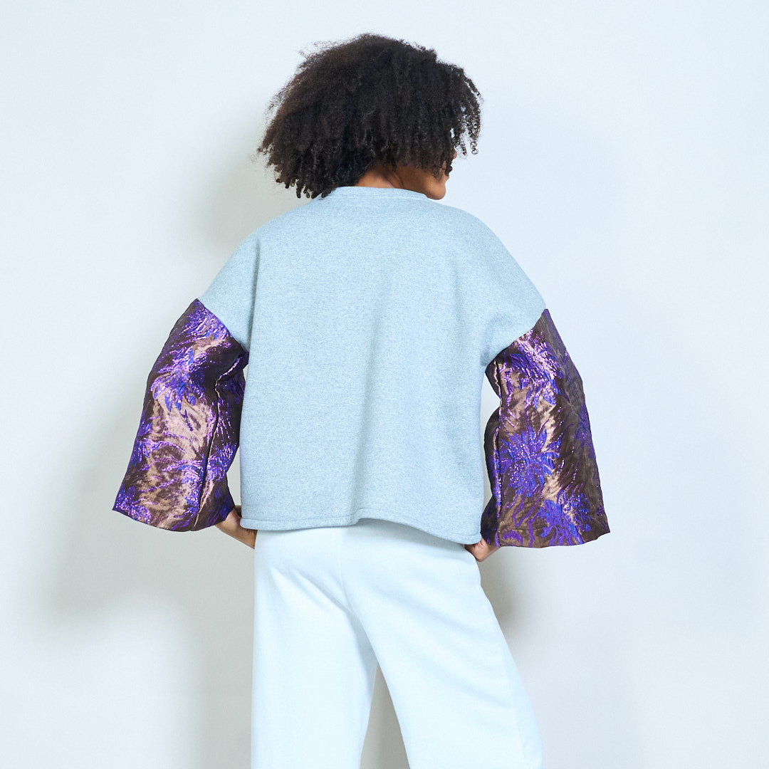 - Features luxurious jacquard floral bell sleeves for a bold statement look