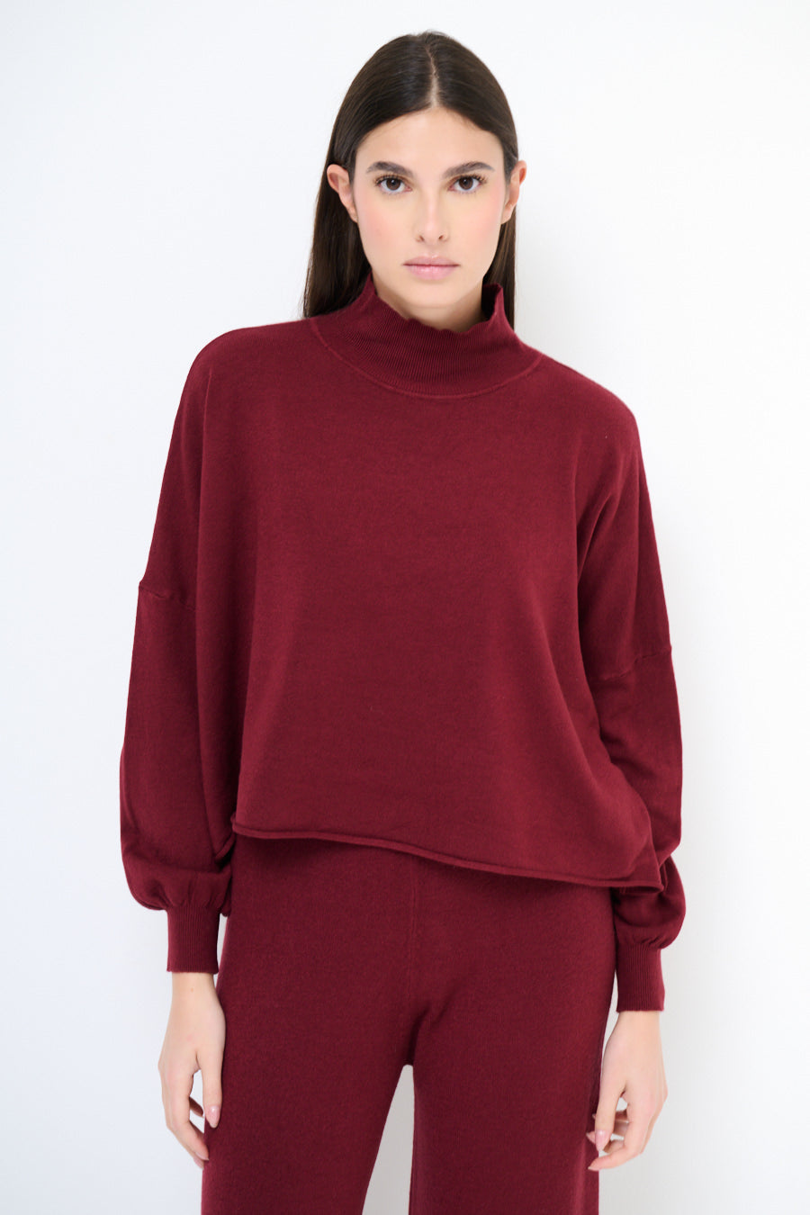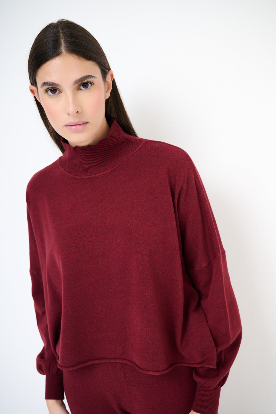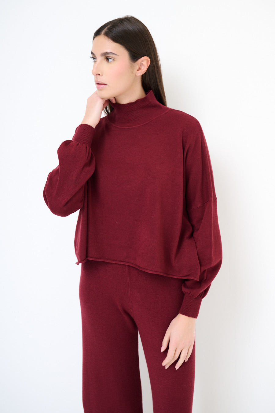 - Soft and elegant loose-fit sweater with a modern mock neck design