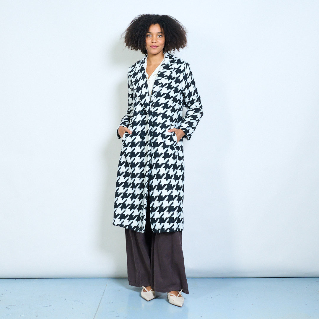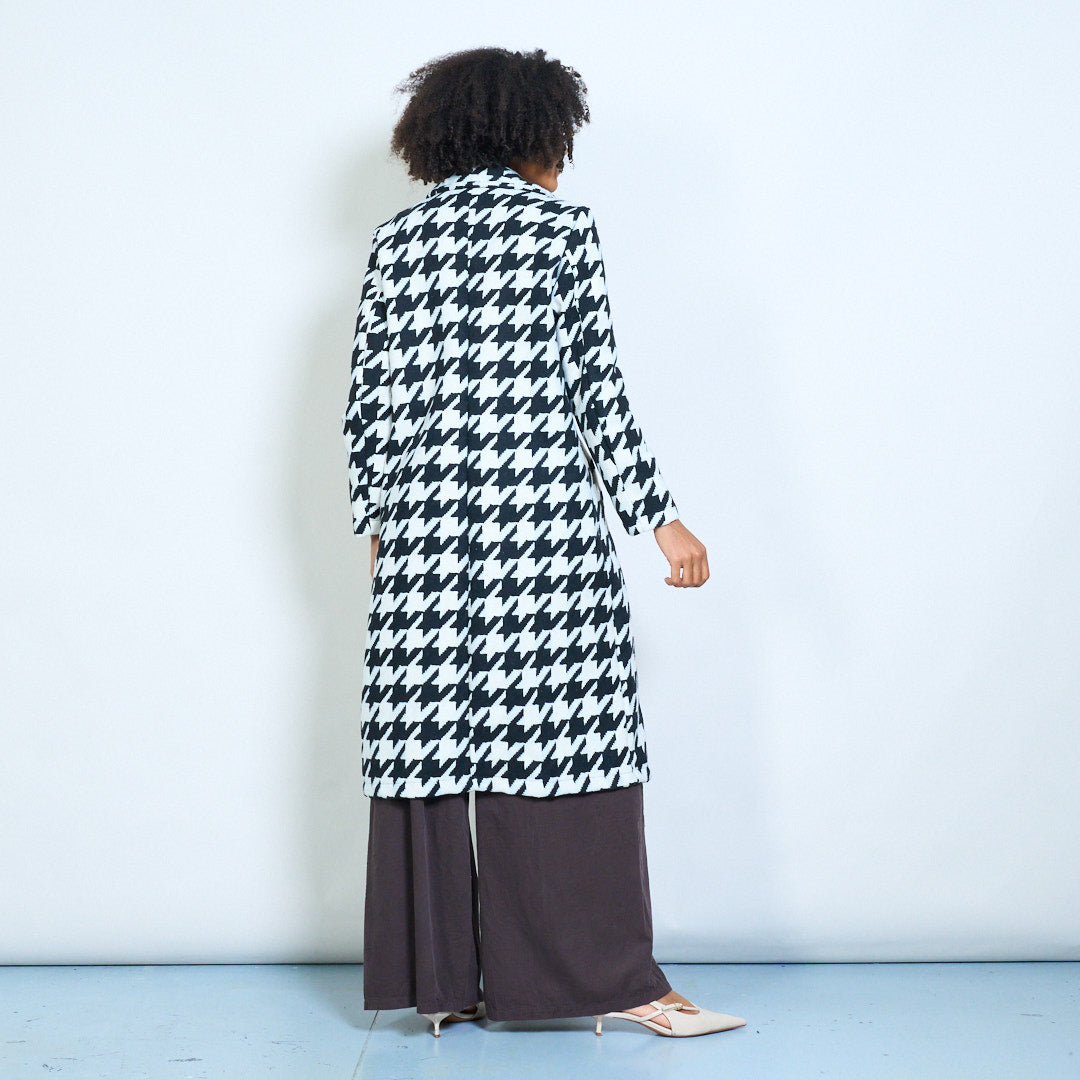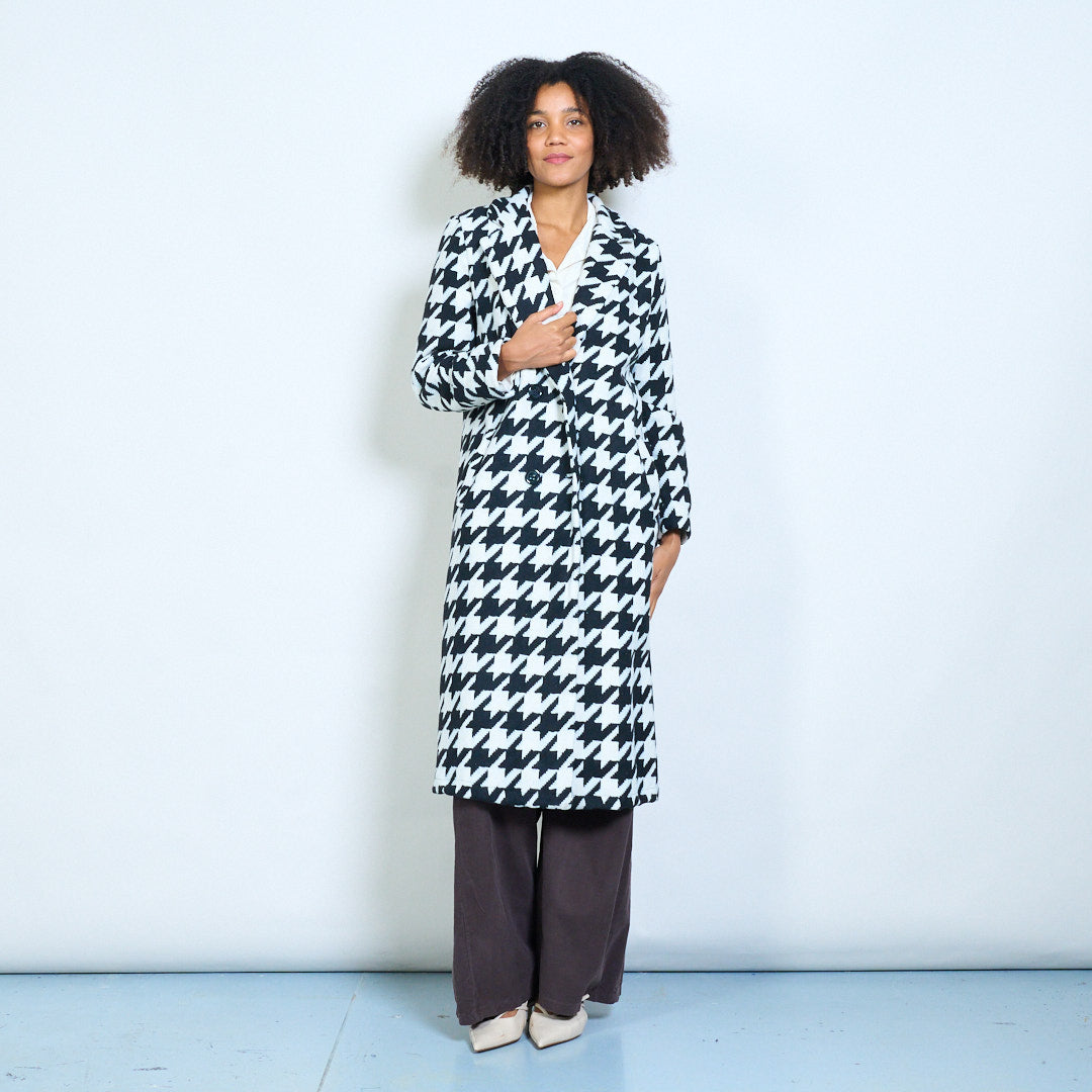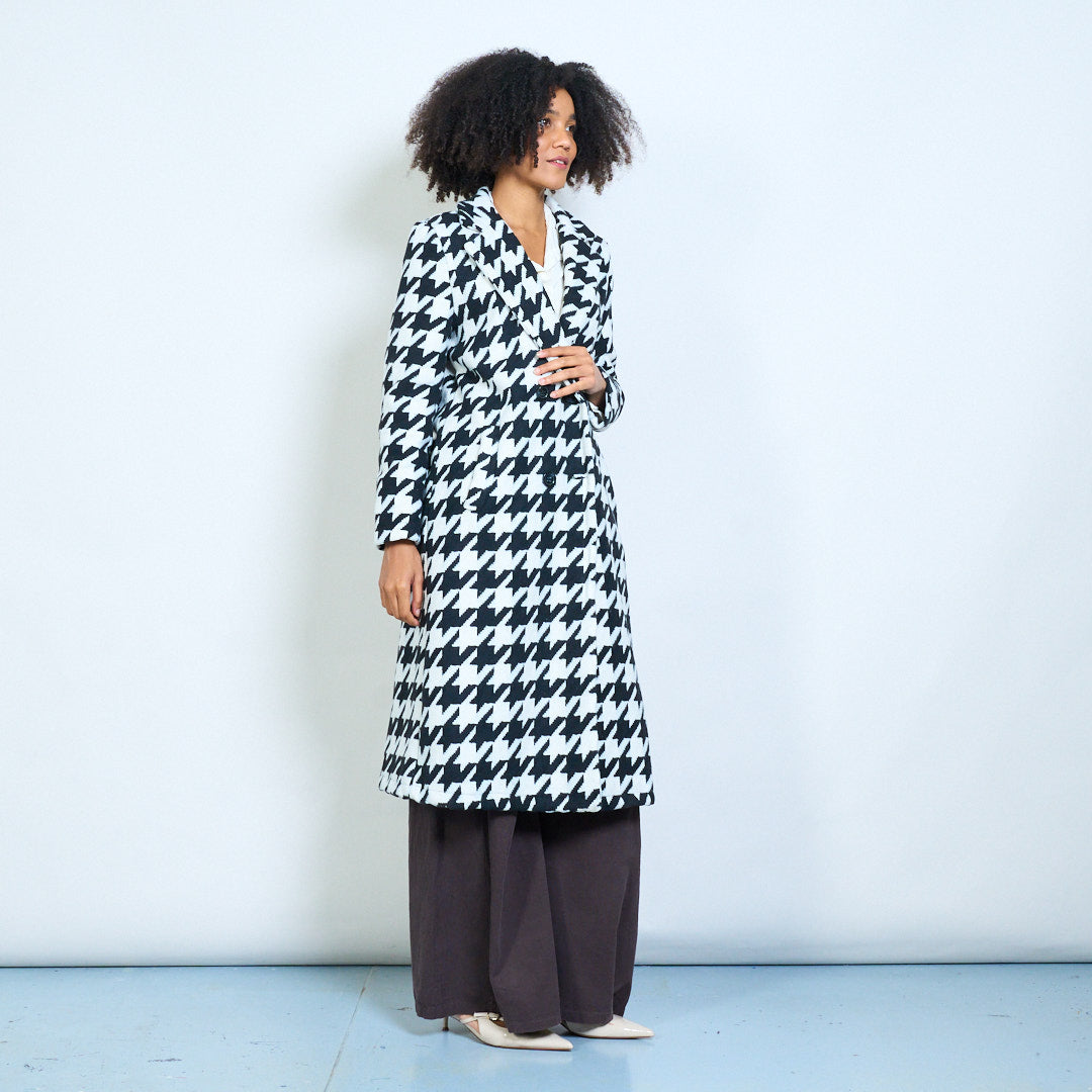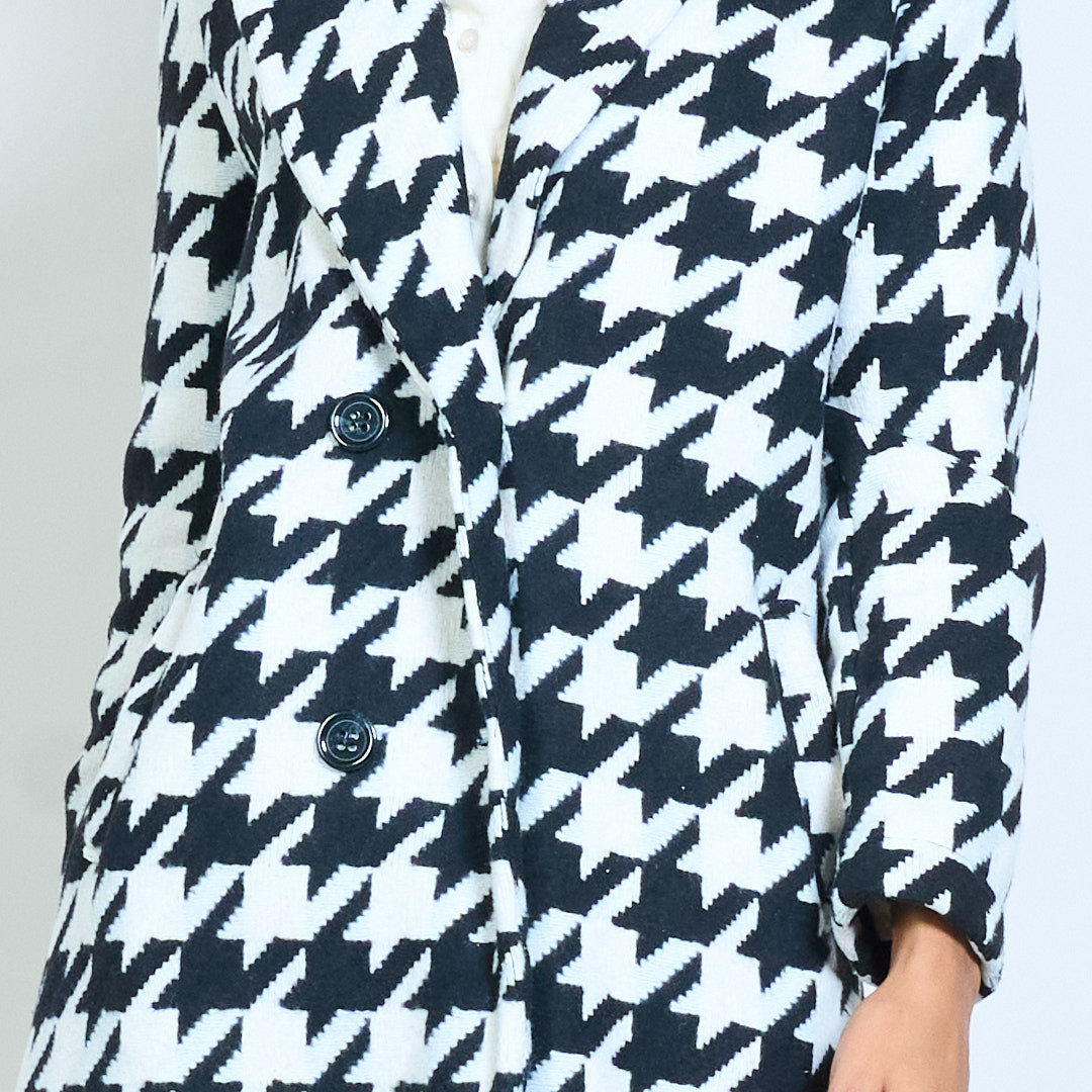 Oversized houndstooth double-breasted long patterned coat wholesale