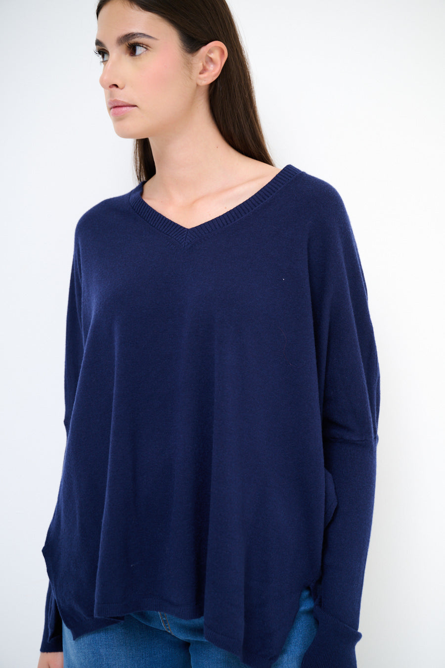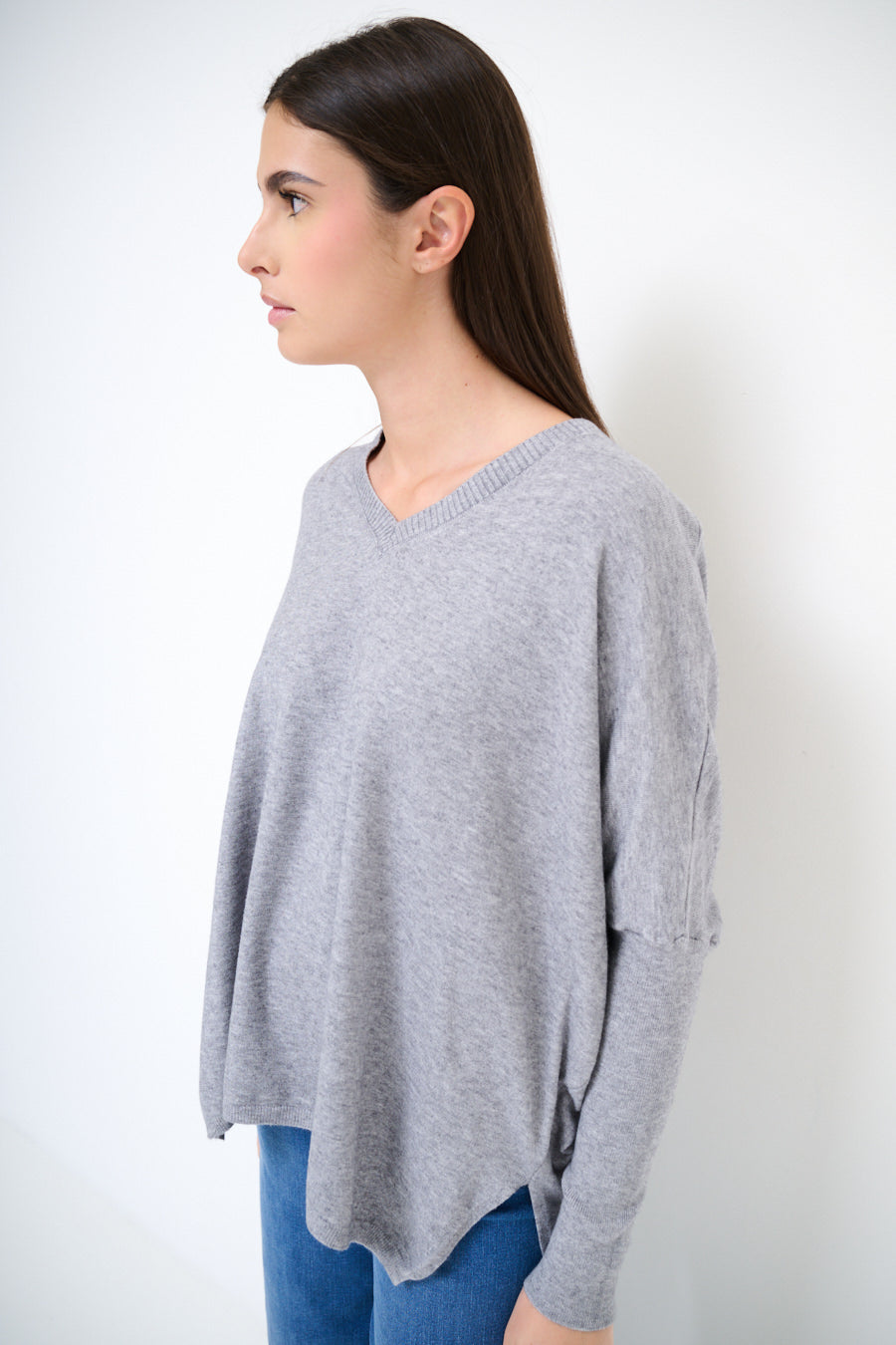 Oversized V-neck asymmetrical hem sweater wholesale