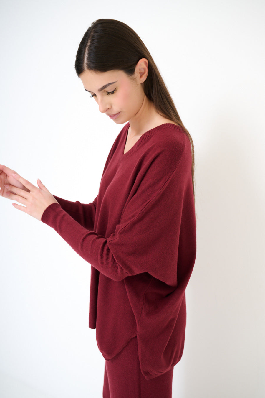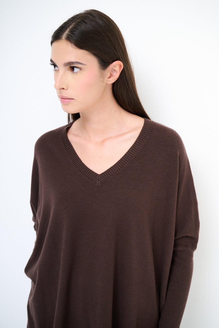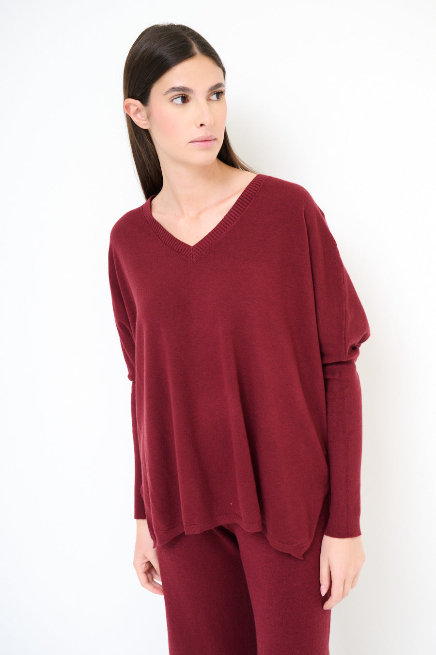 - Features a flattering V-neckline and dropped shoulders