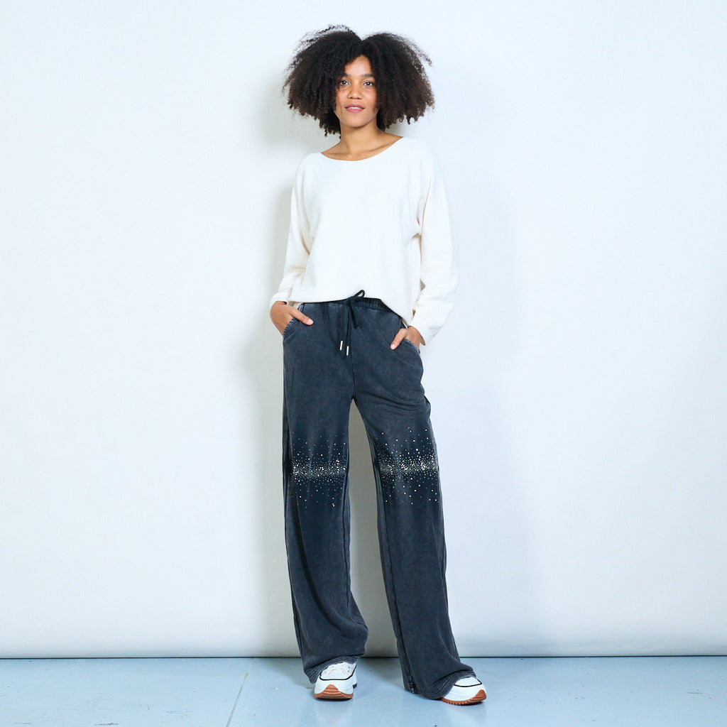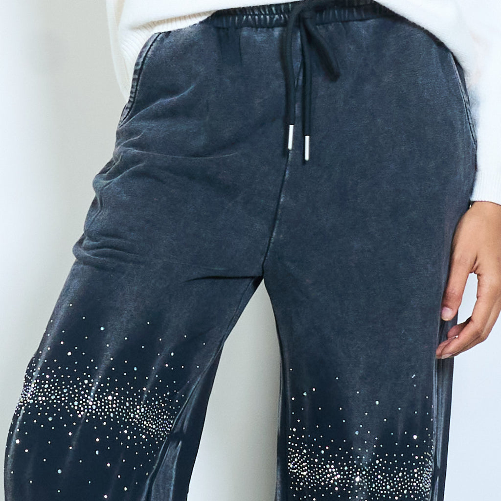 Rhinestone wave embellished relaxed drawstring trousers wholesale