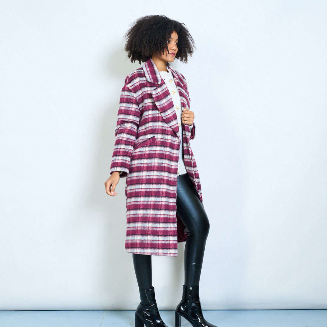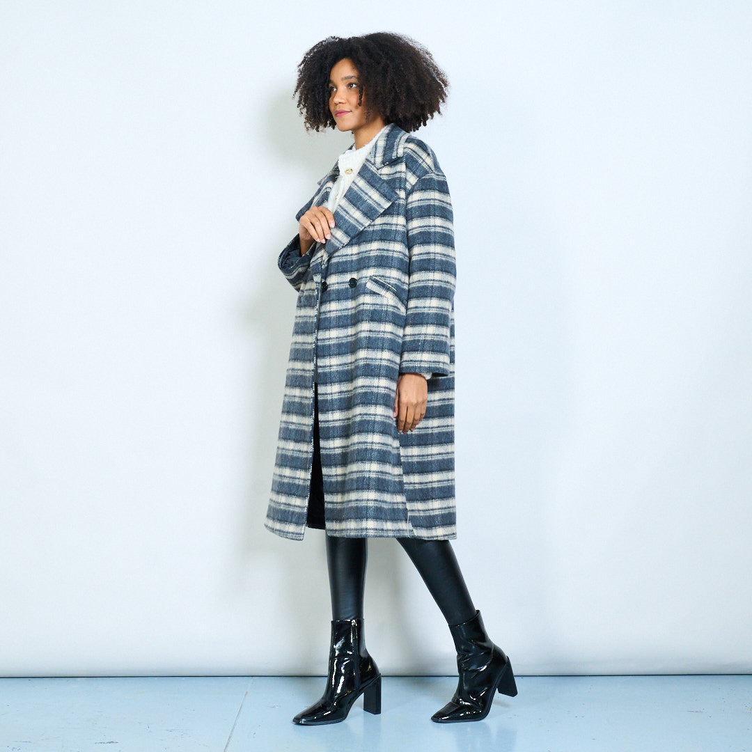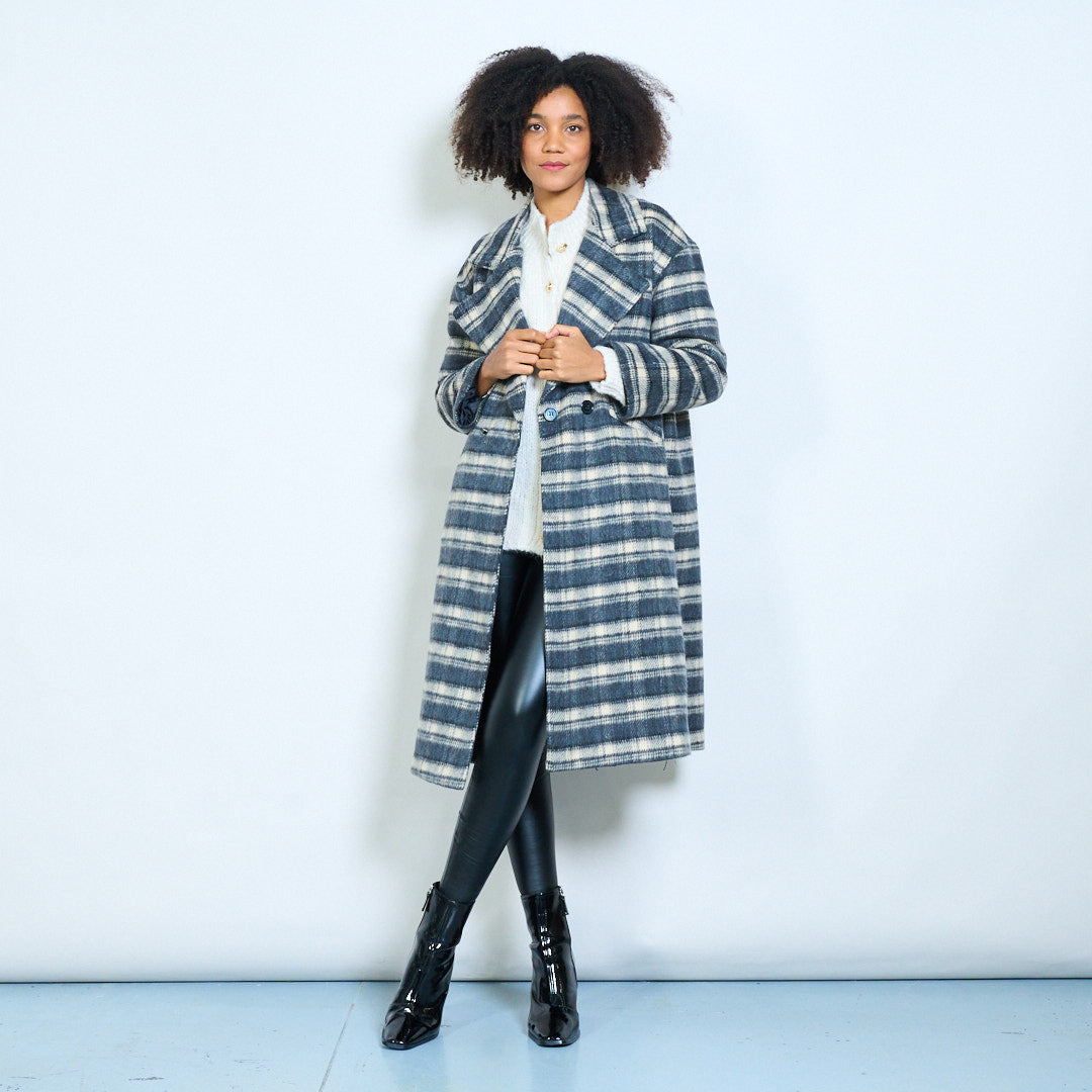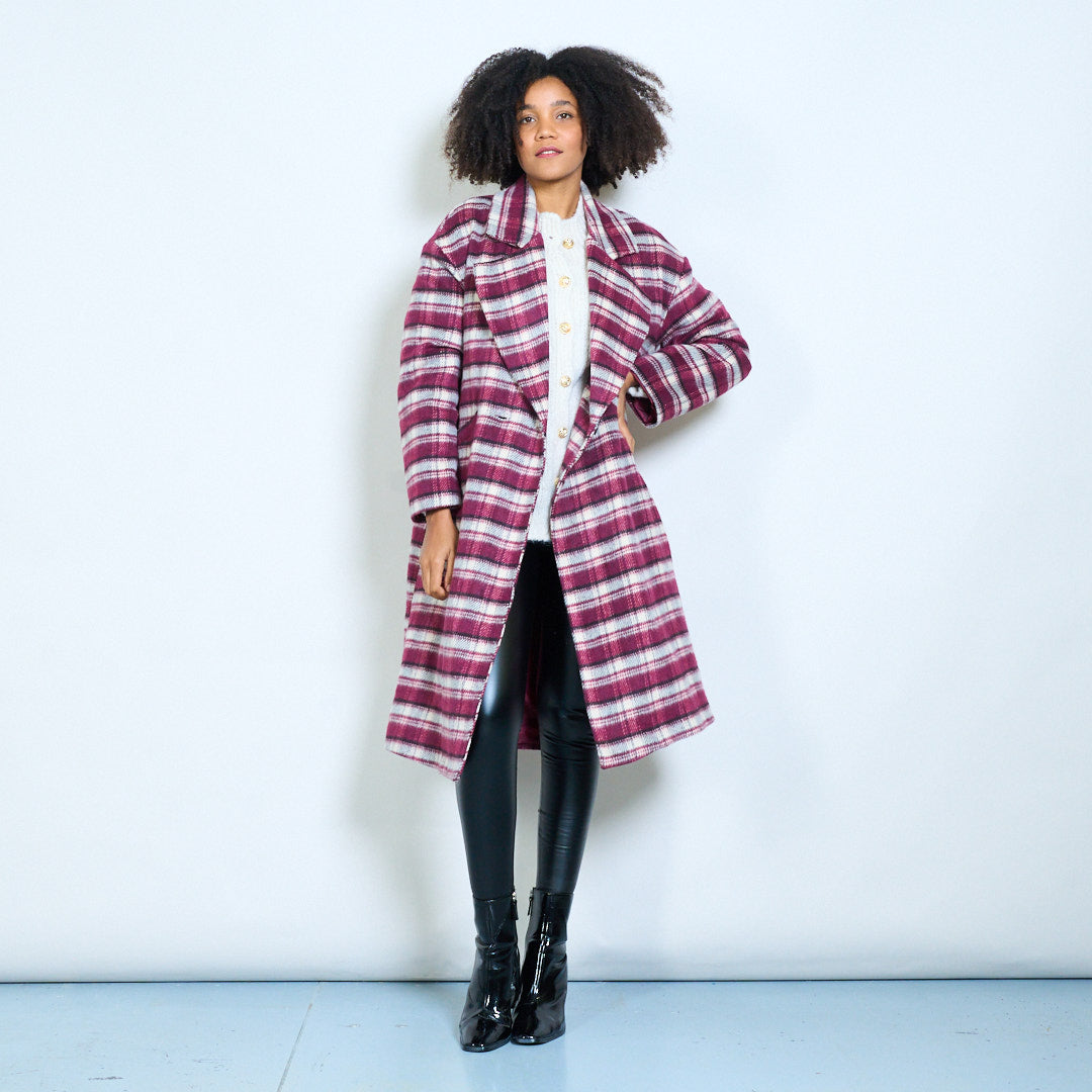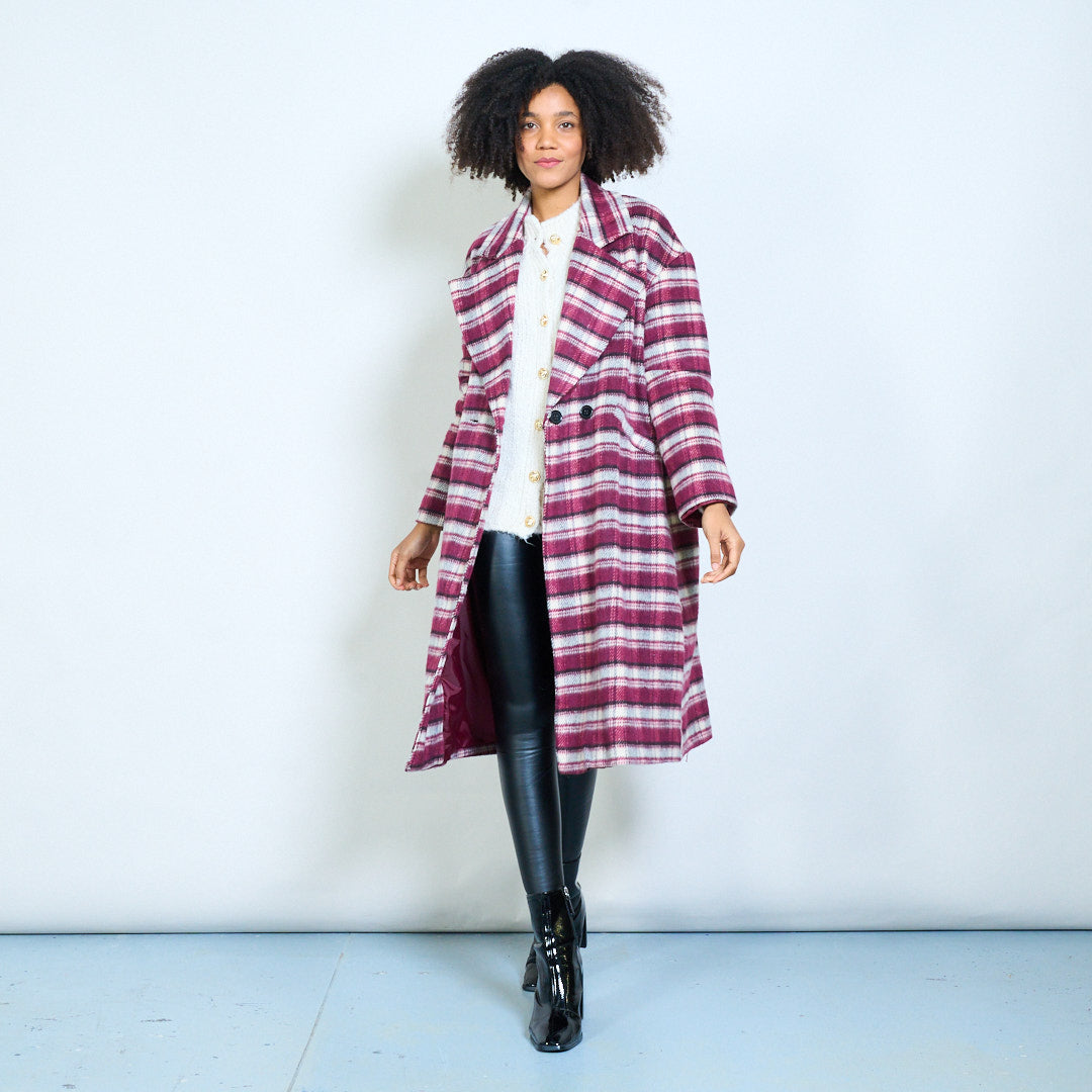 Striped double-breasted oversized lapel woolen coat wholesale