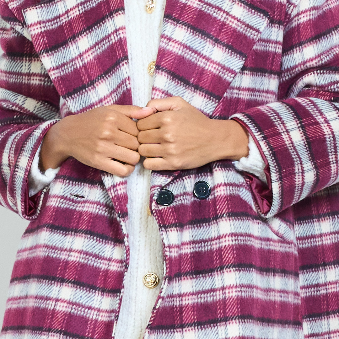 - Double-breasted button closure adds an elegant and timeless appeal