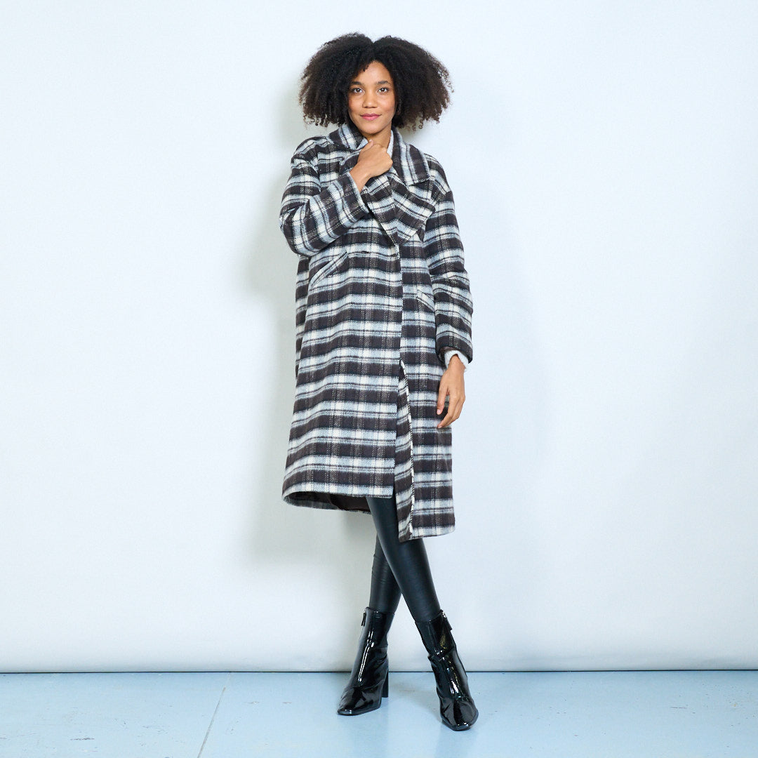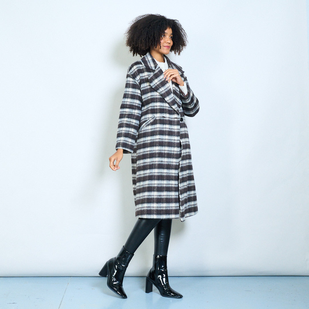 - Designed with an oversized lapel collar for a modern, structured silhouette