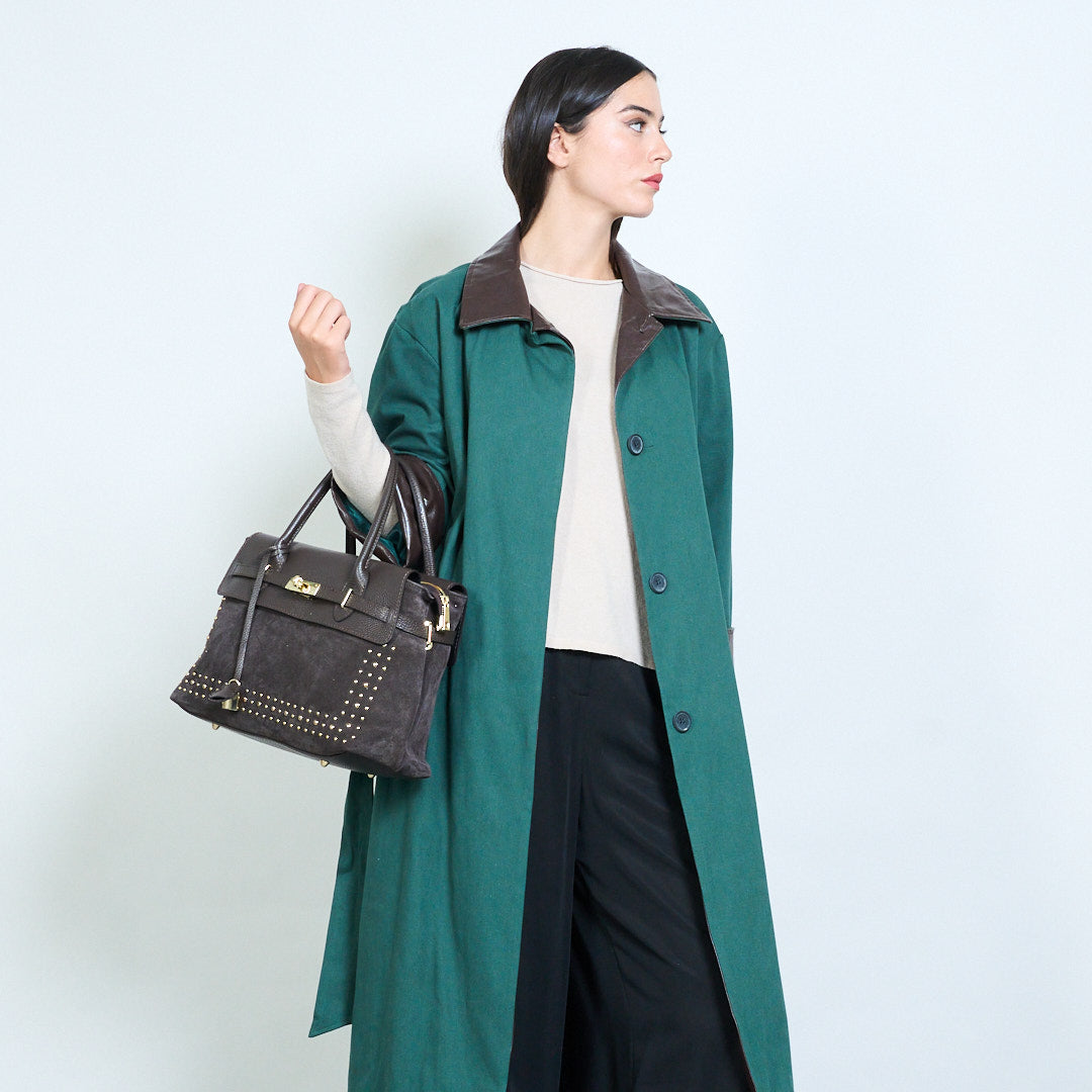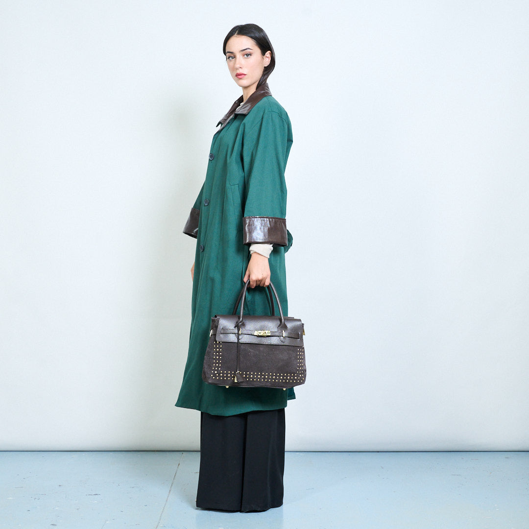 Studded flap structured top handle handbag wholesale