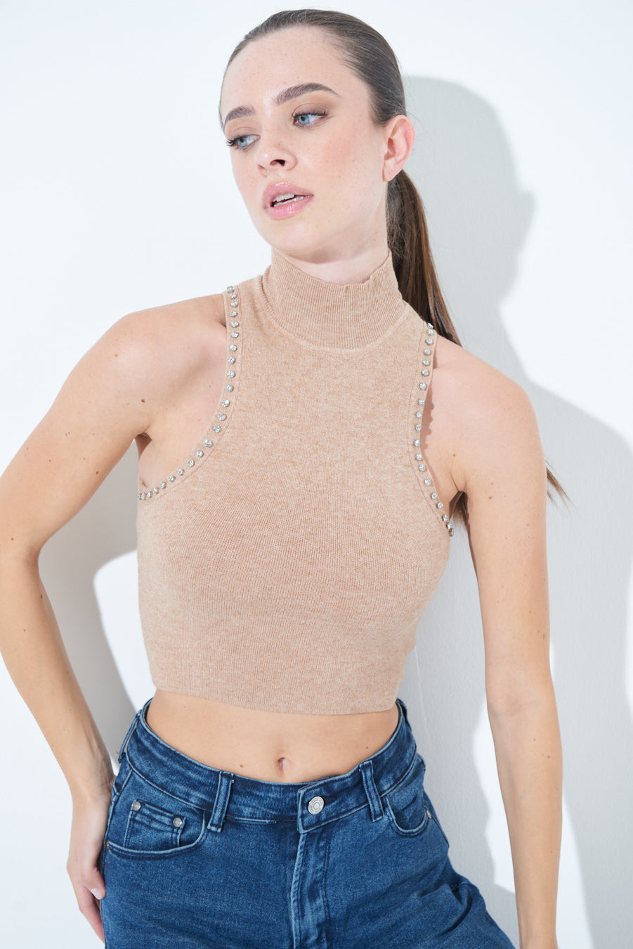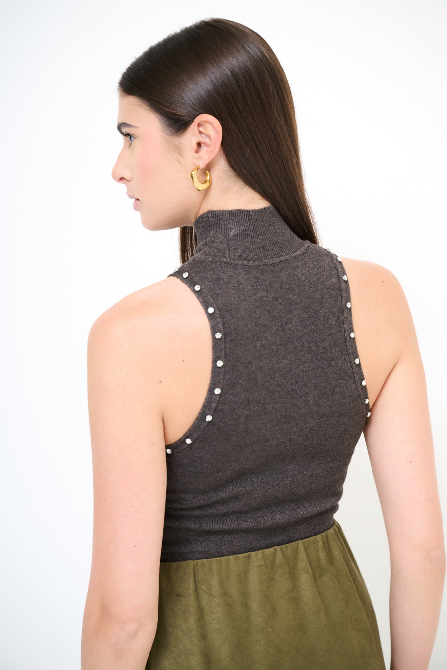 Studded high neck sleeveless knit top wholesale