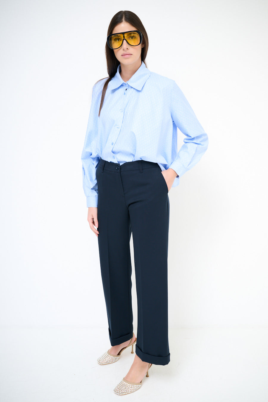 - Features a neatly folded cuffed hem for a polished, modern finish