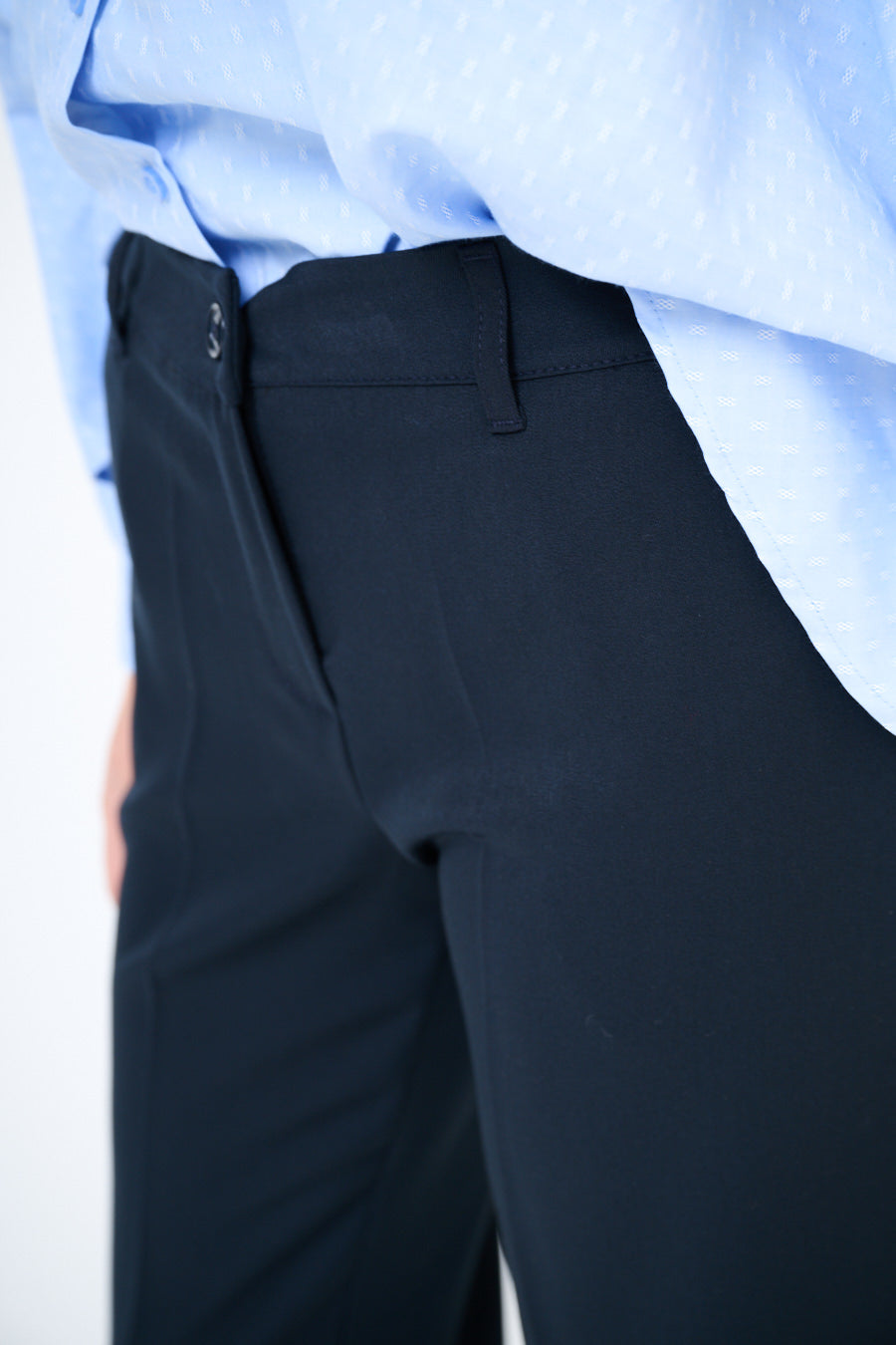 - Mid-rise waistline with secure button and zip fastening for comfort