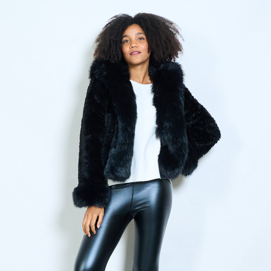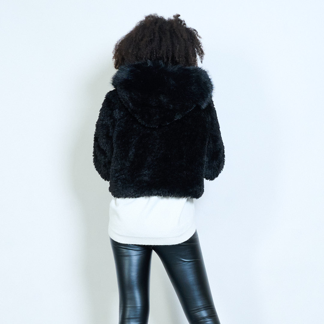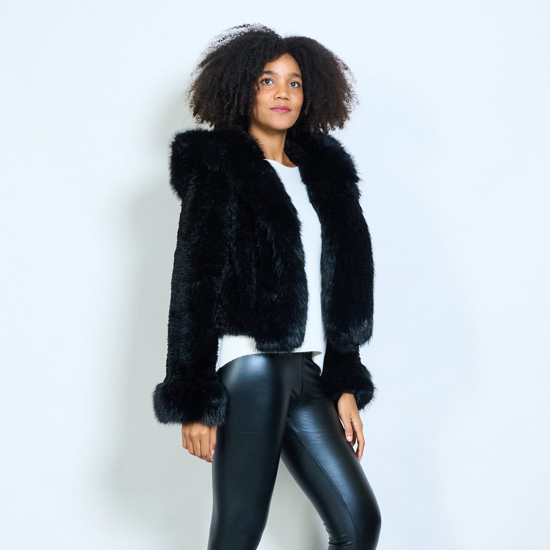 Luxe faux fur cropped plush jacket with voluminous sleeve details wholesale