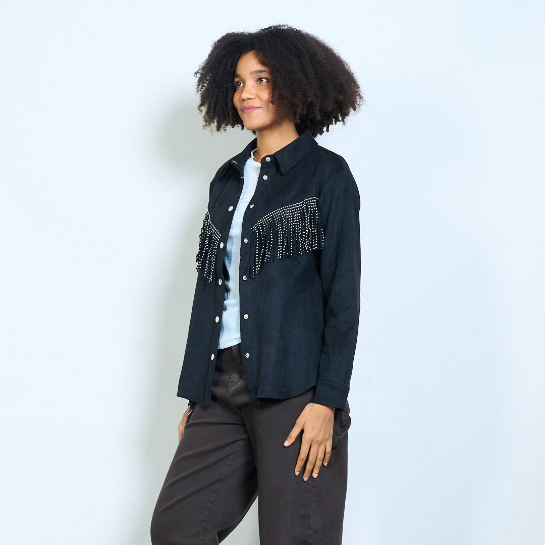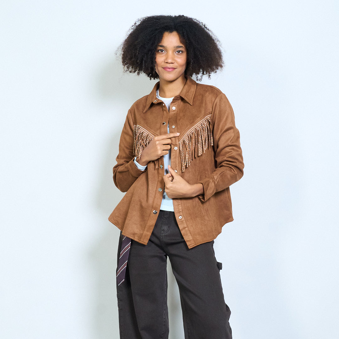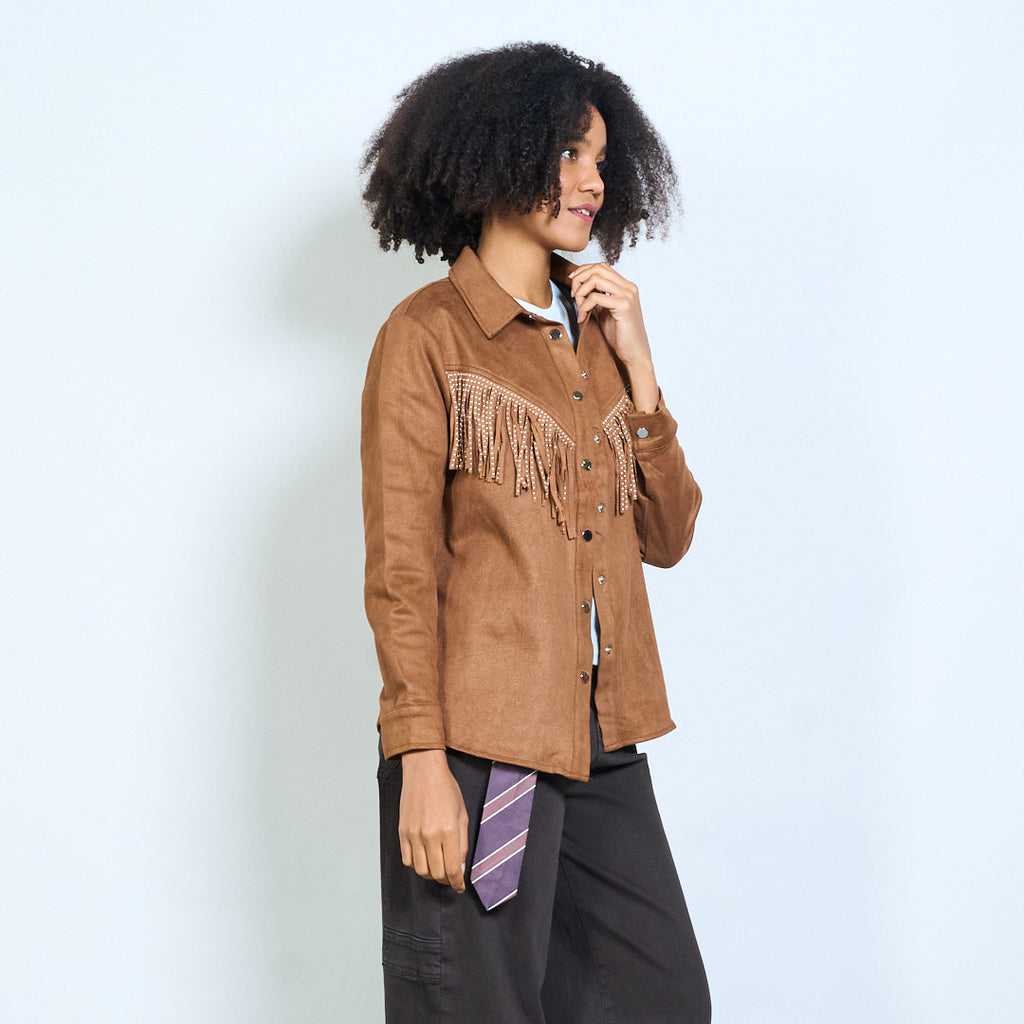 • Designed with playful fringe detailing across the chest for a western-inspired look
