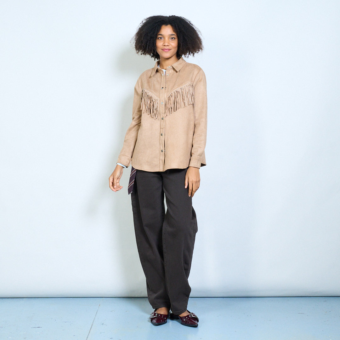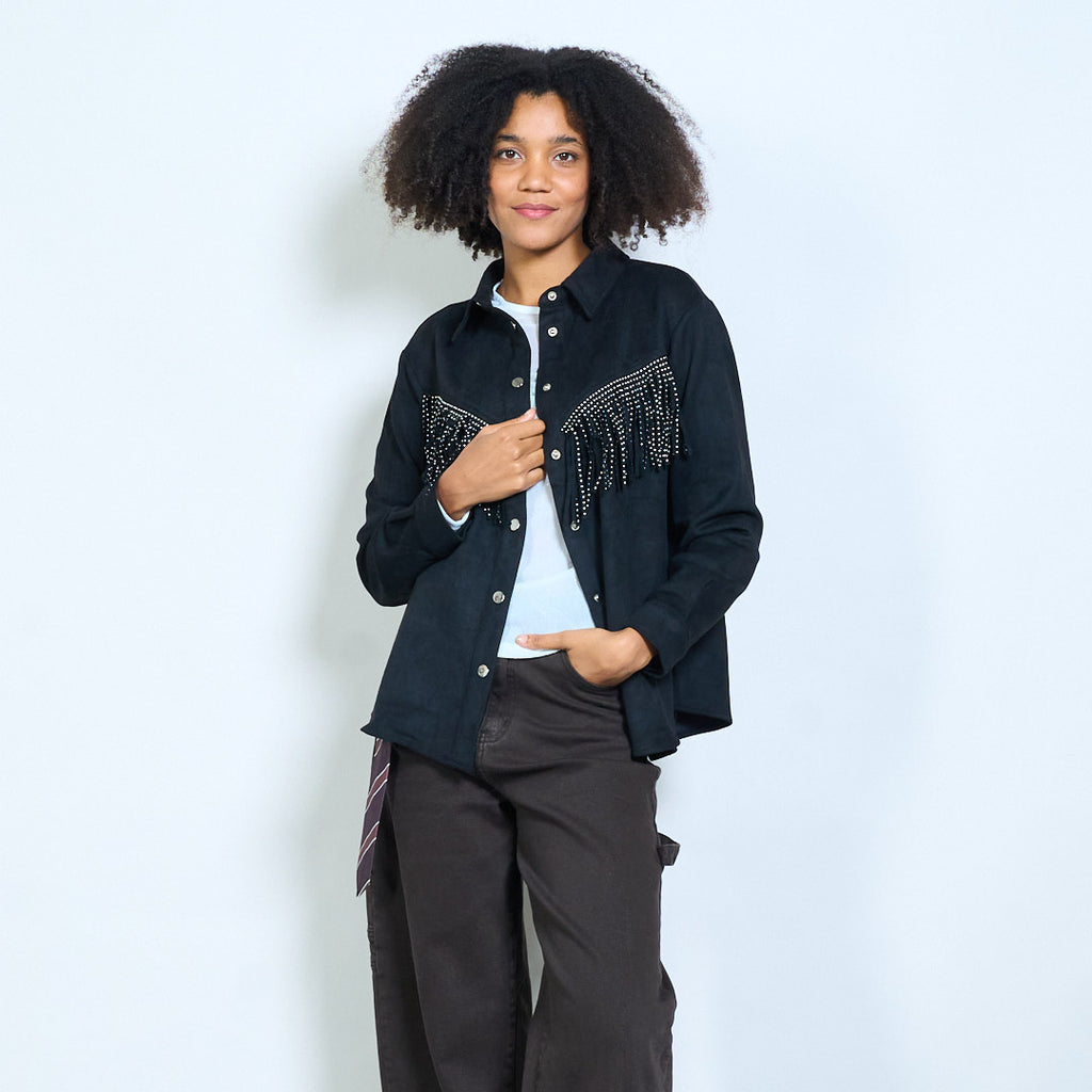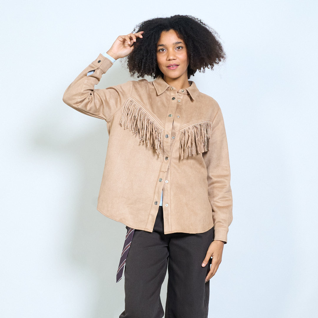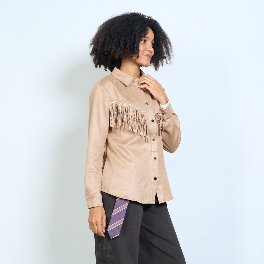 • Designed with playful fringe detailing across the chest for a western-inspired look