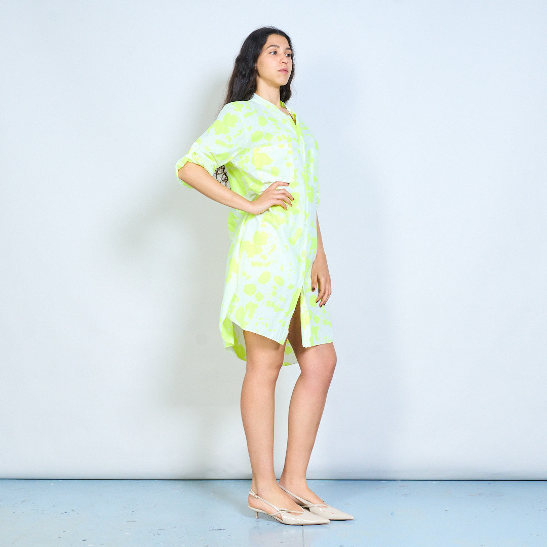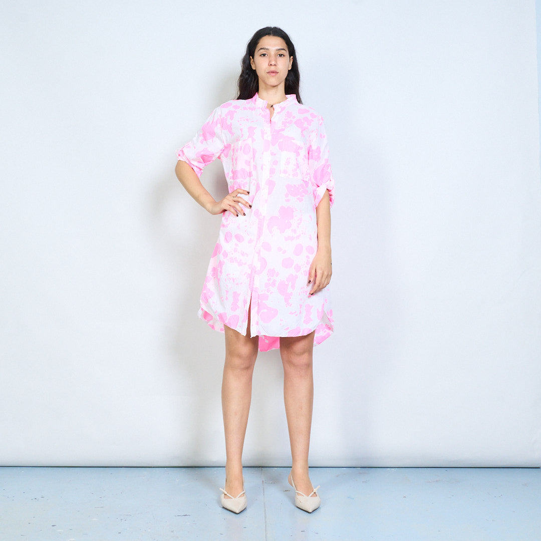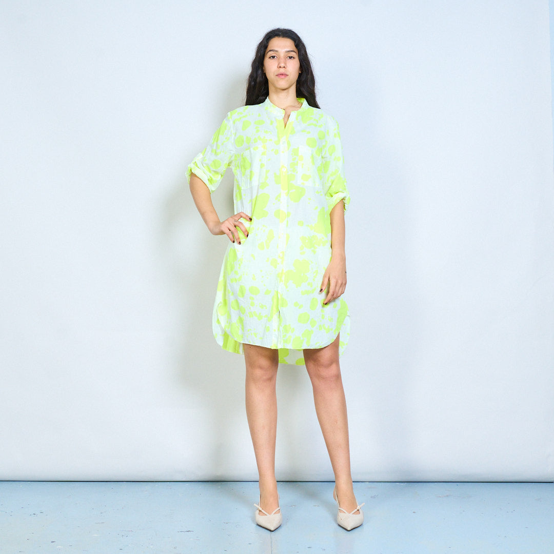 Abstract splash print button down shirt dress wholesale