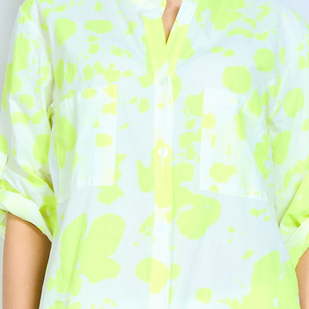 - Lightweight breathable fabric with bold abstract splash pattern