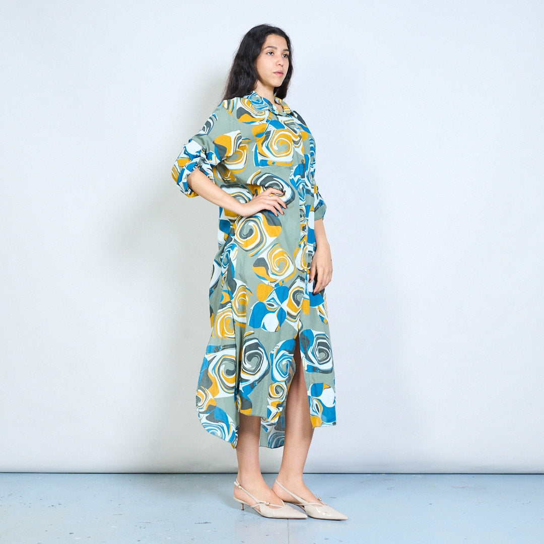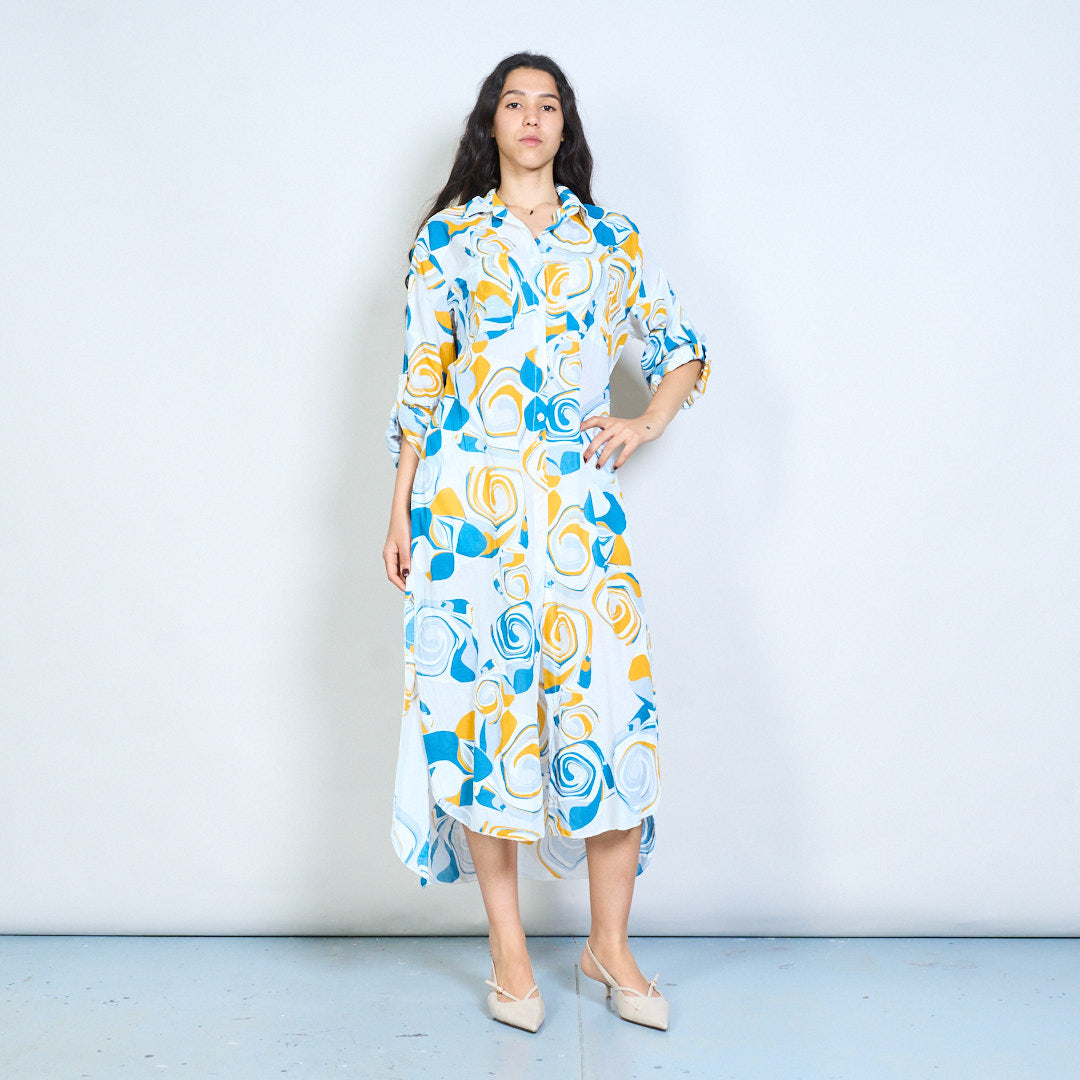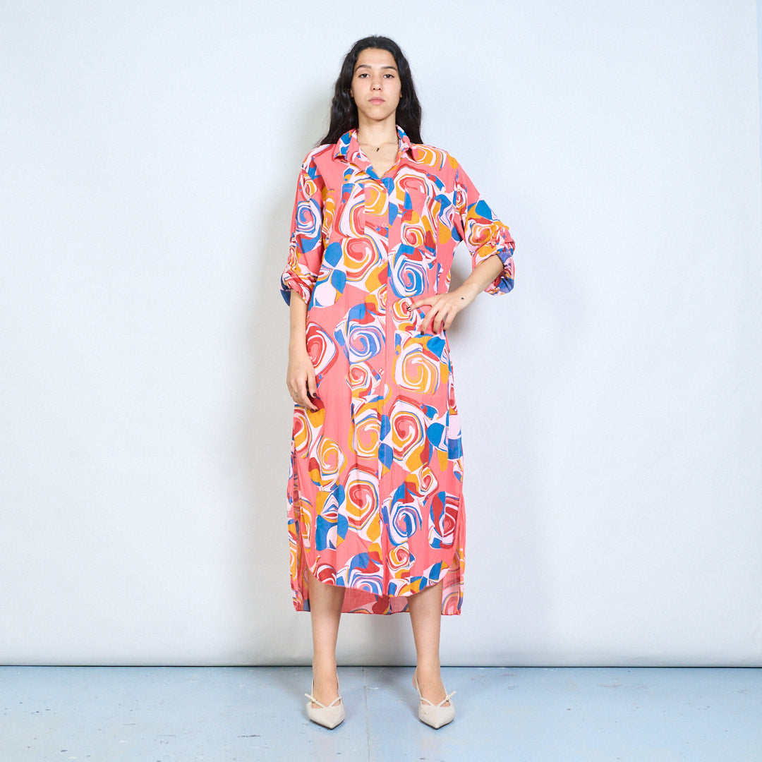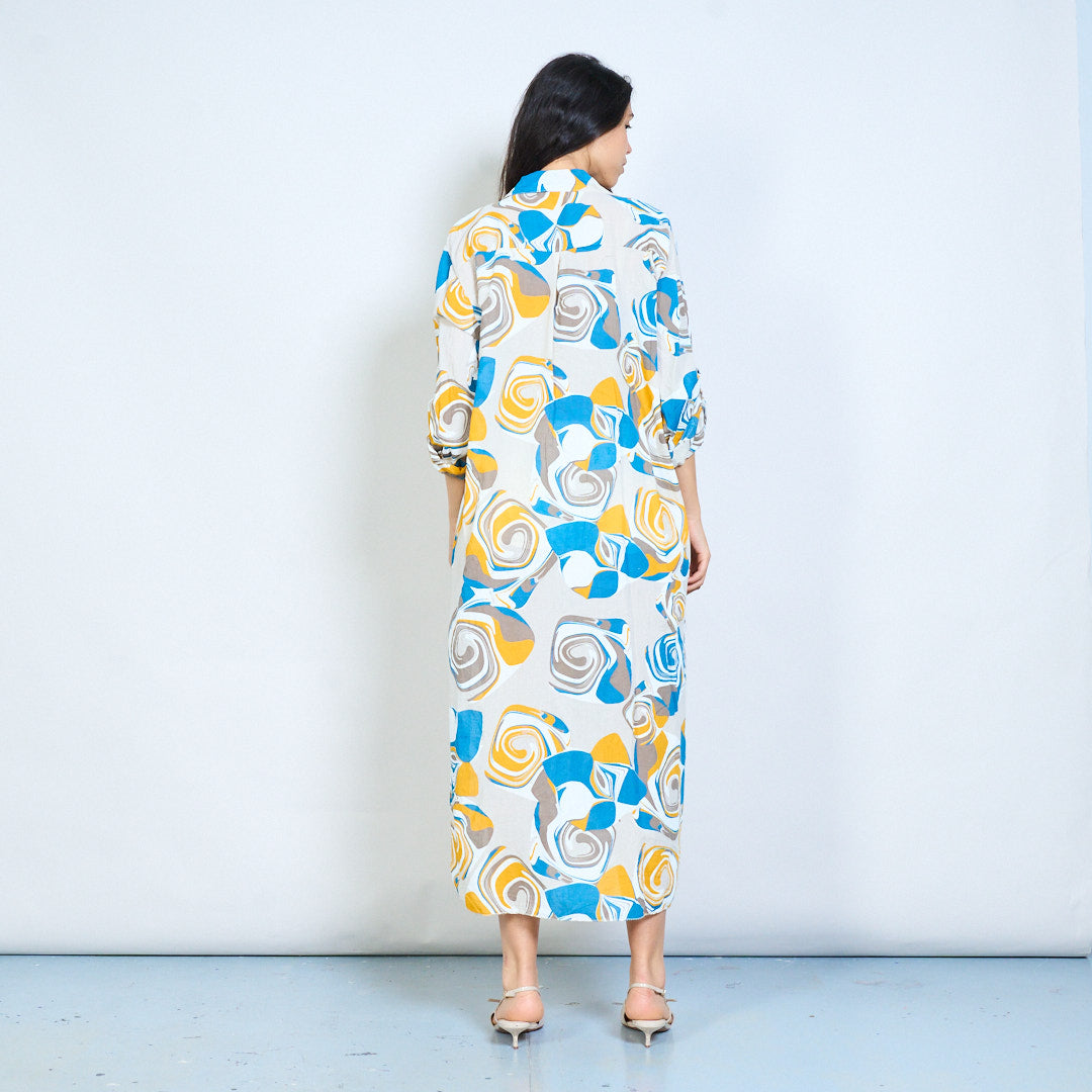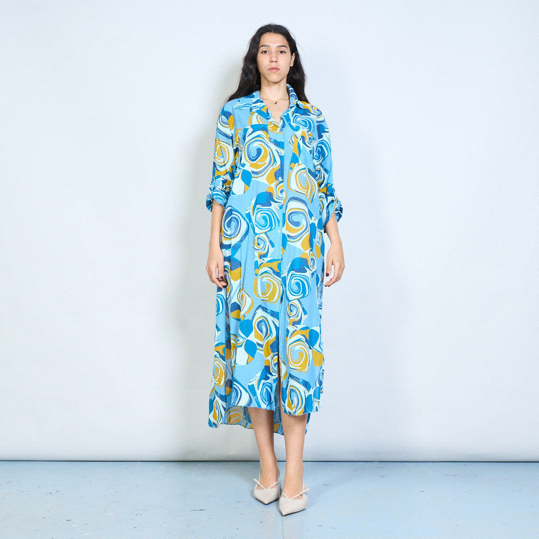 Abstract swirl print button down shirt maxi dress wholesale