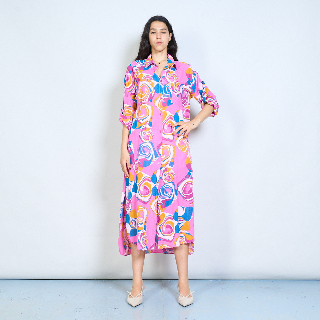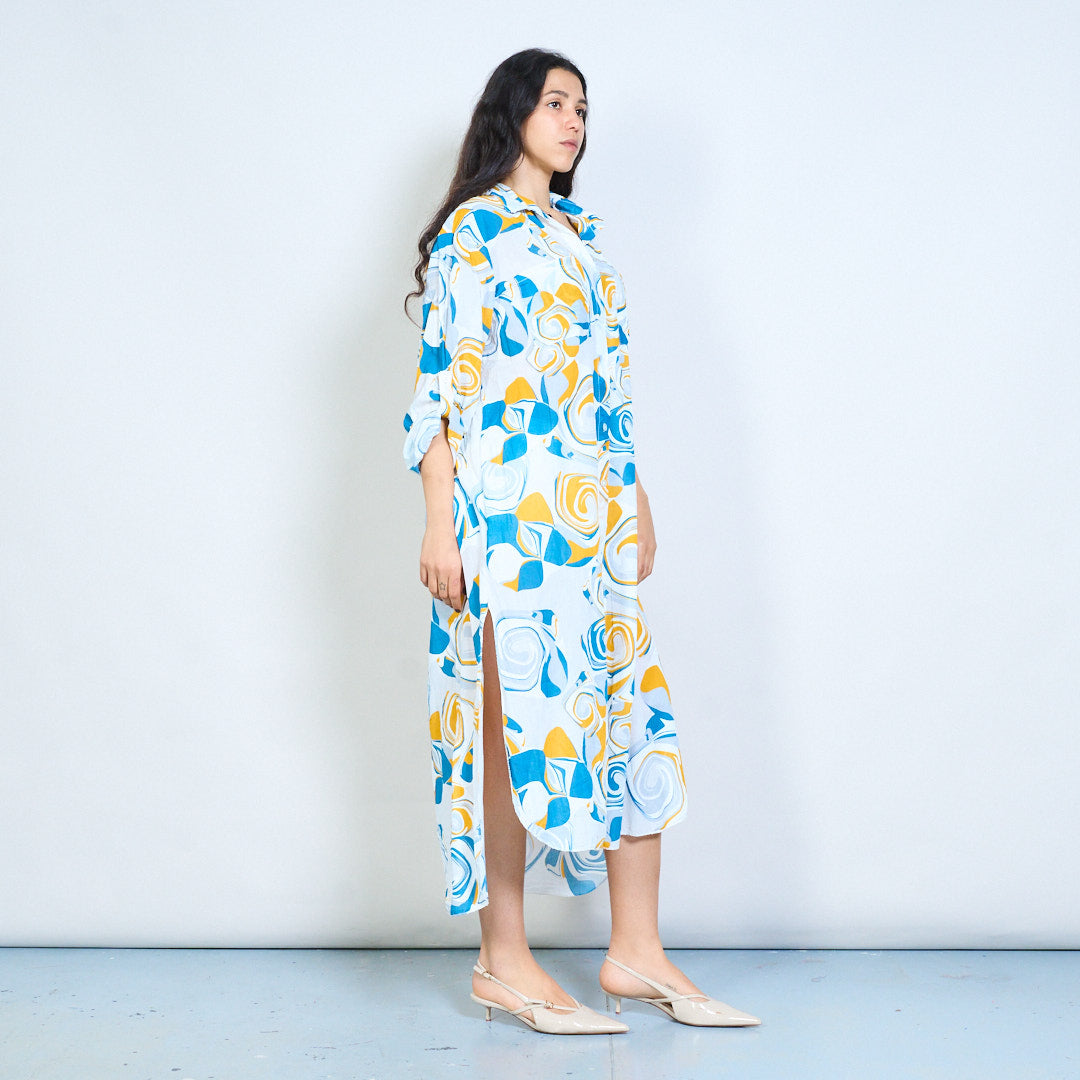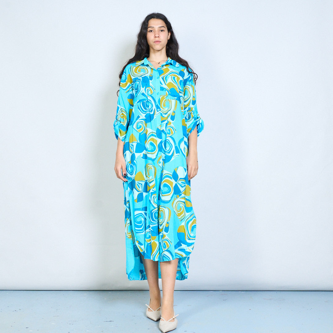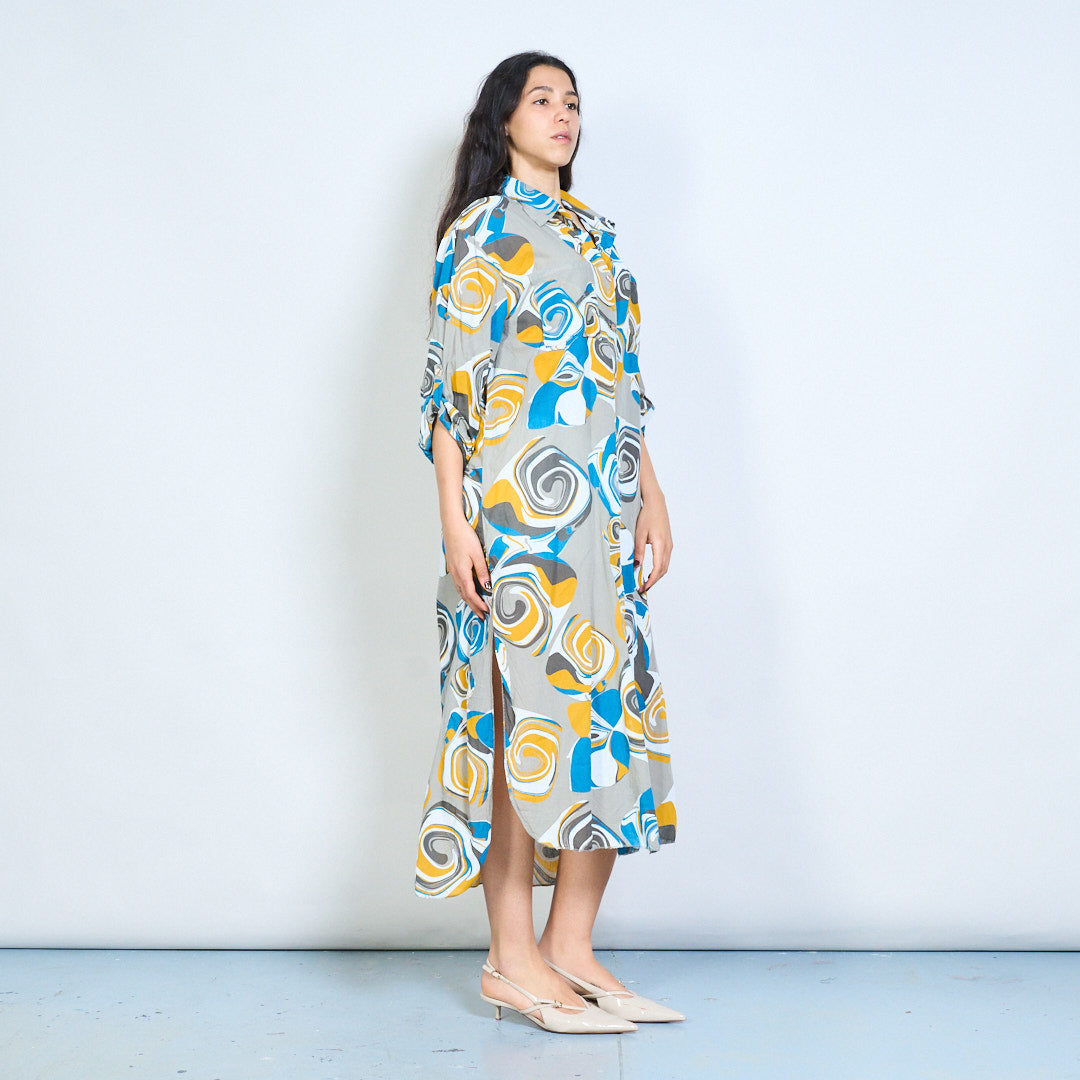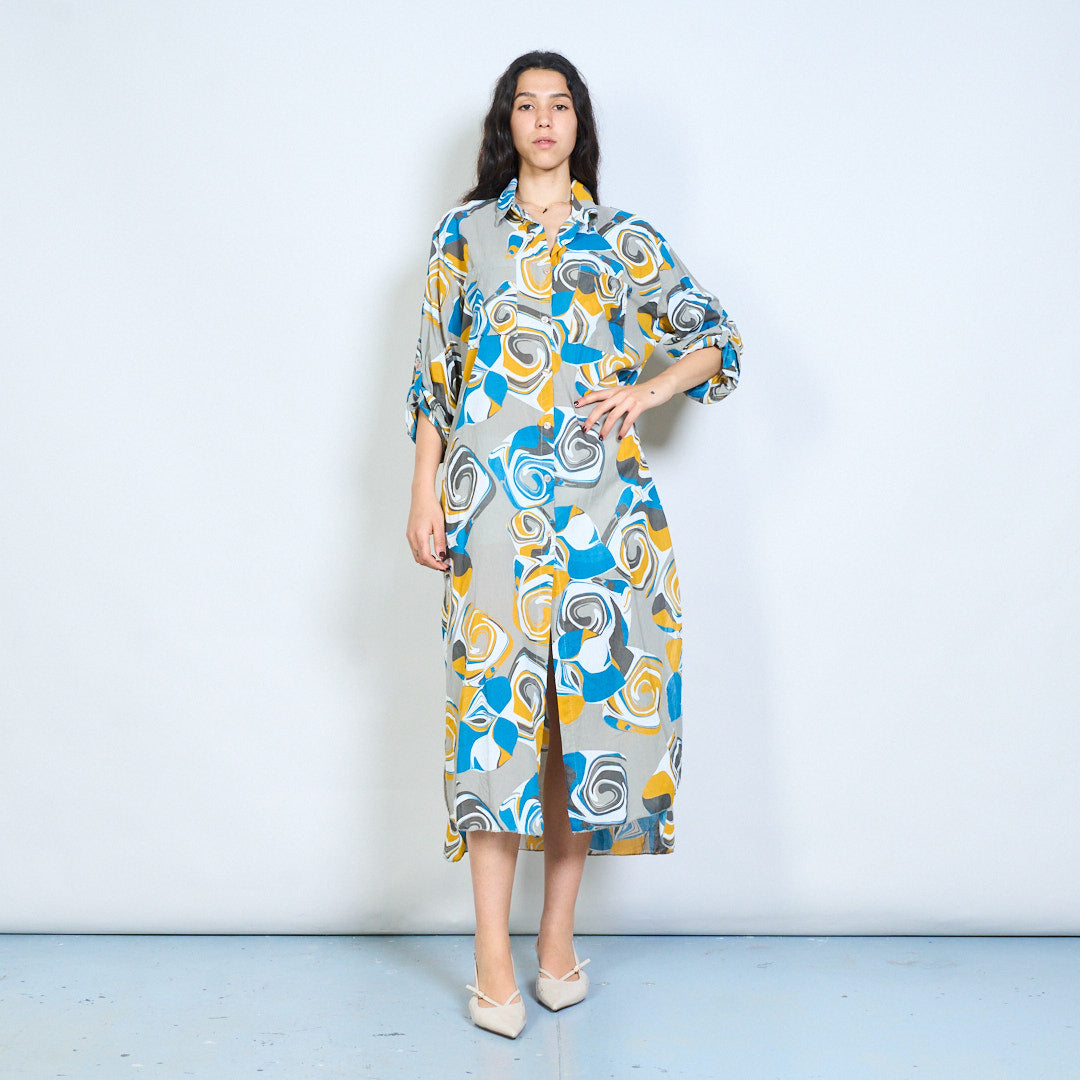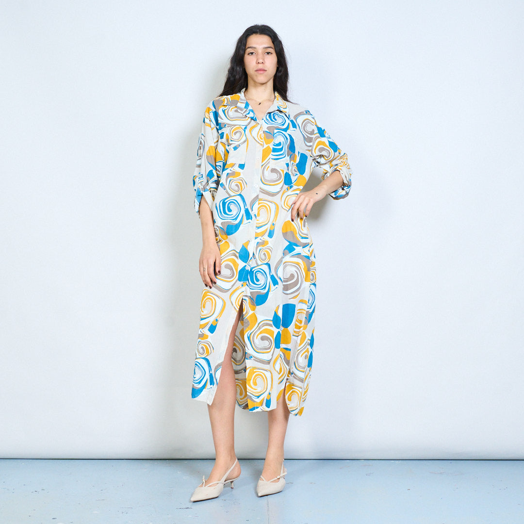 Abstract swirl print button down shirt maxi dress wholesale