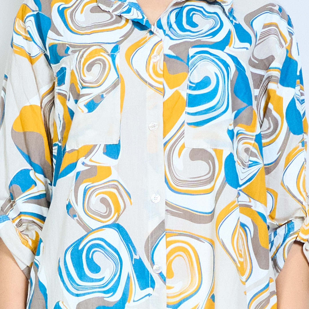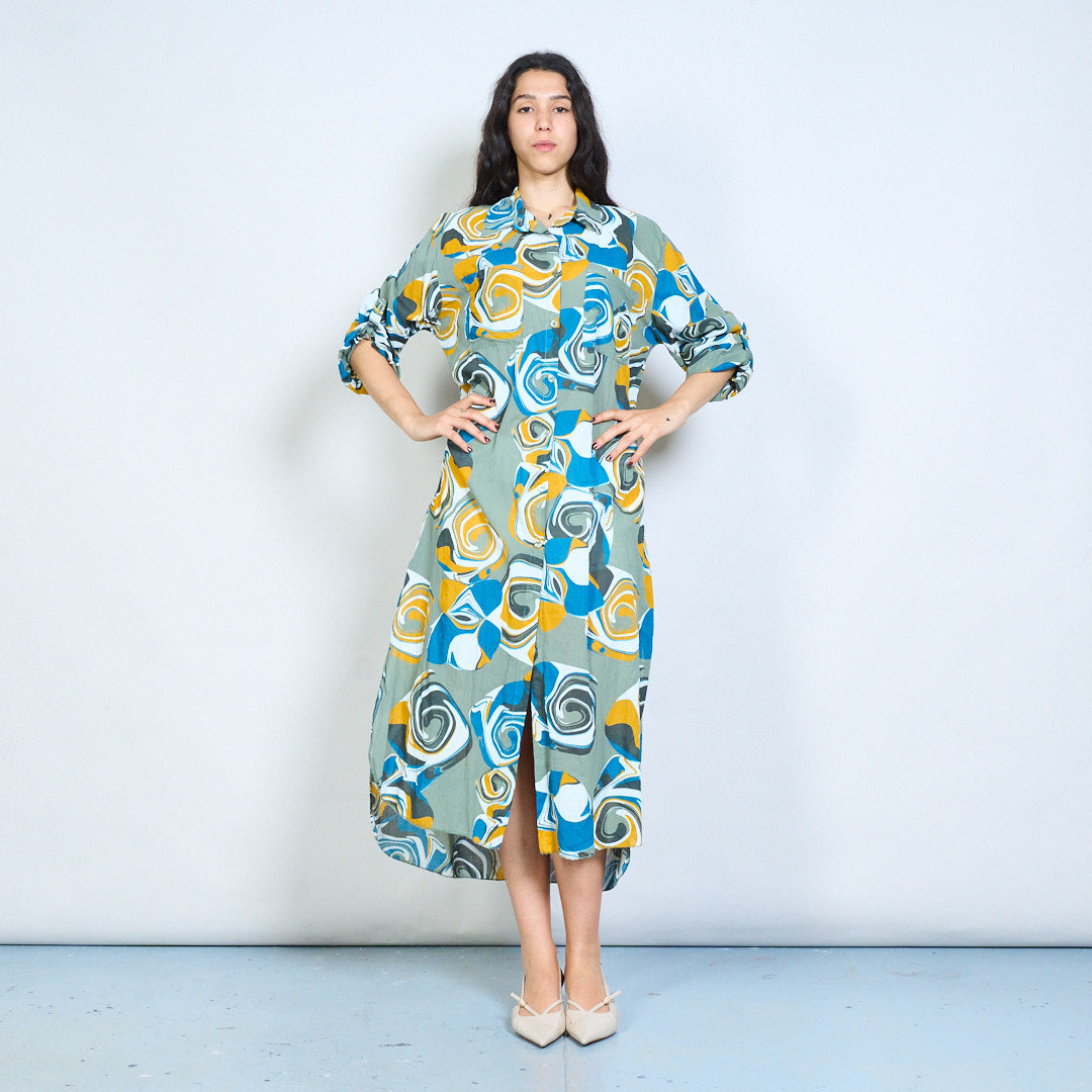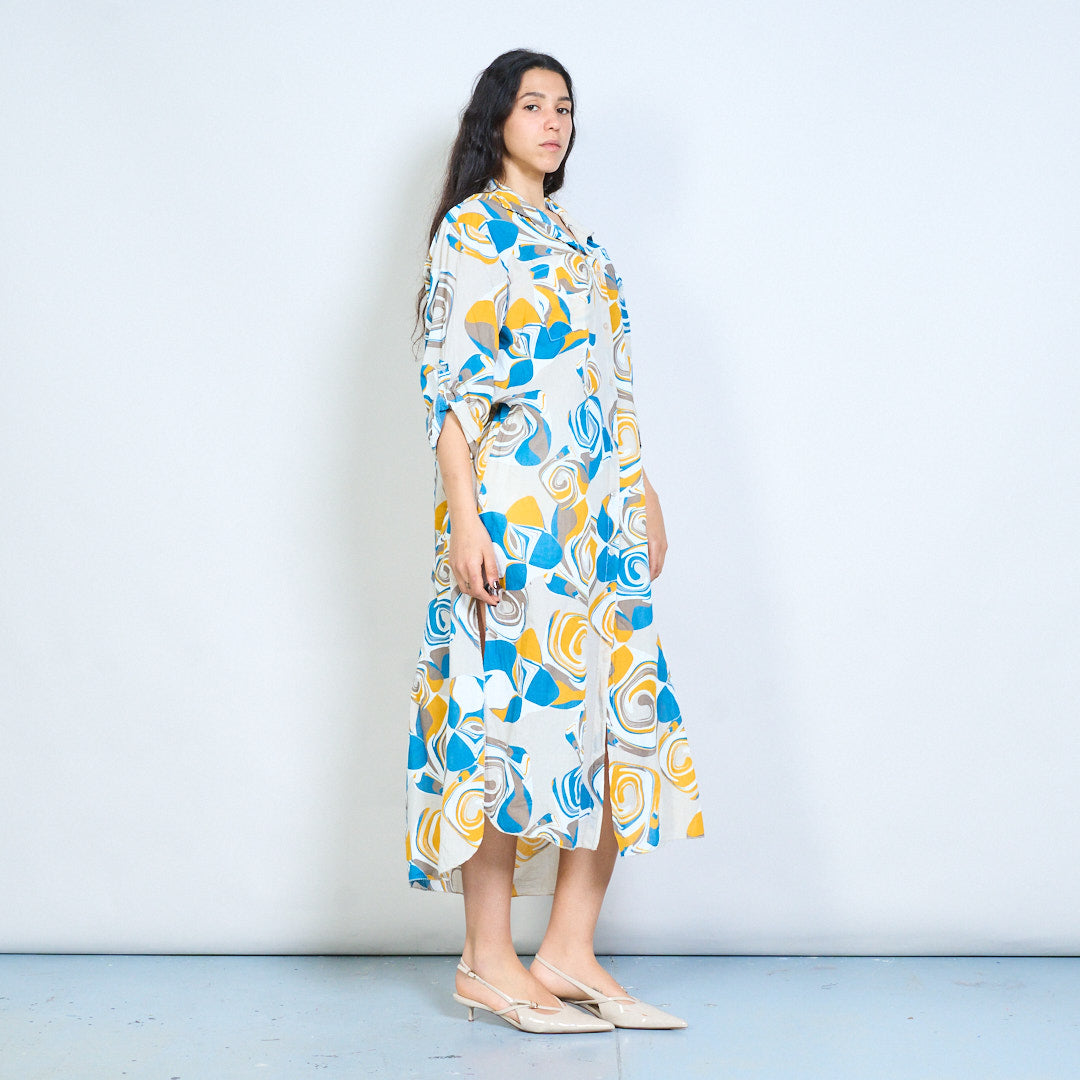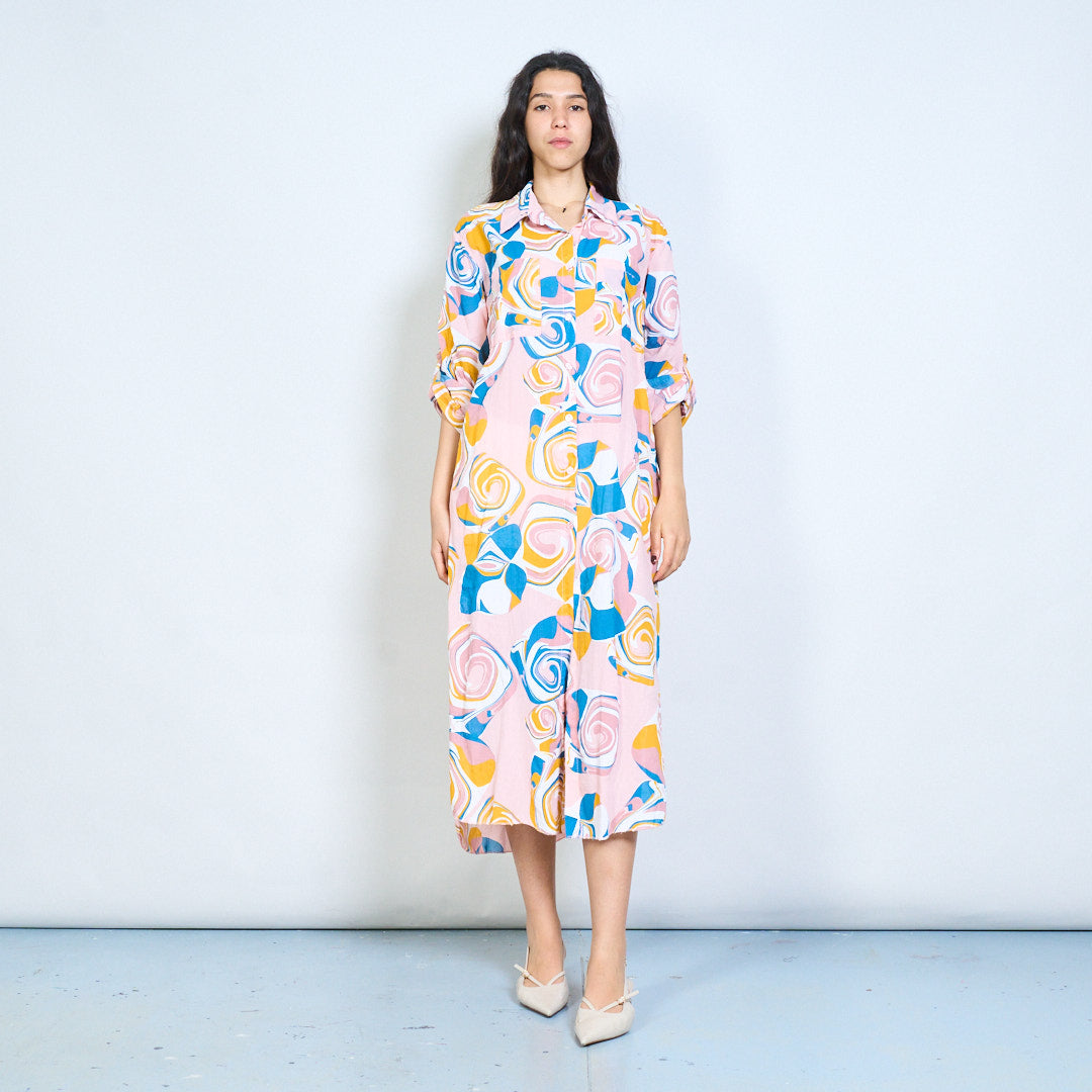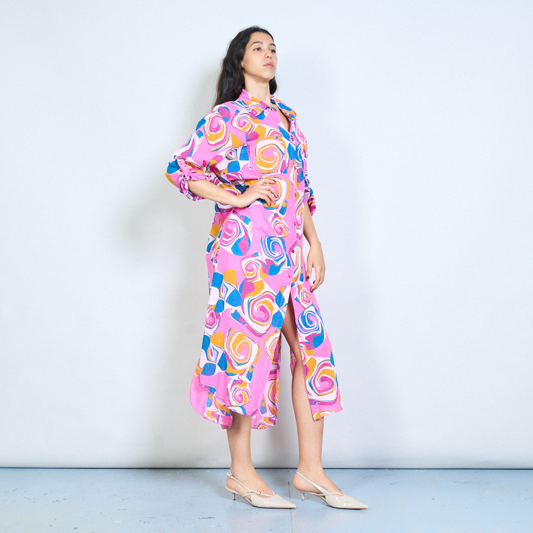 Abstract swirl print button down shirt maxi dress wholesale