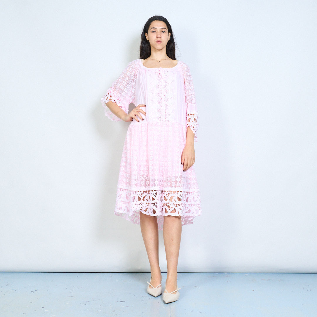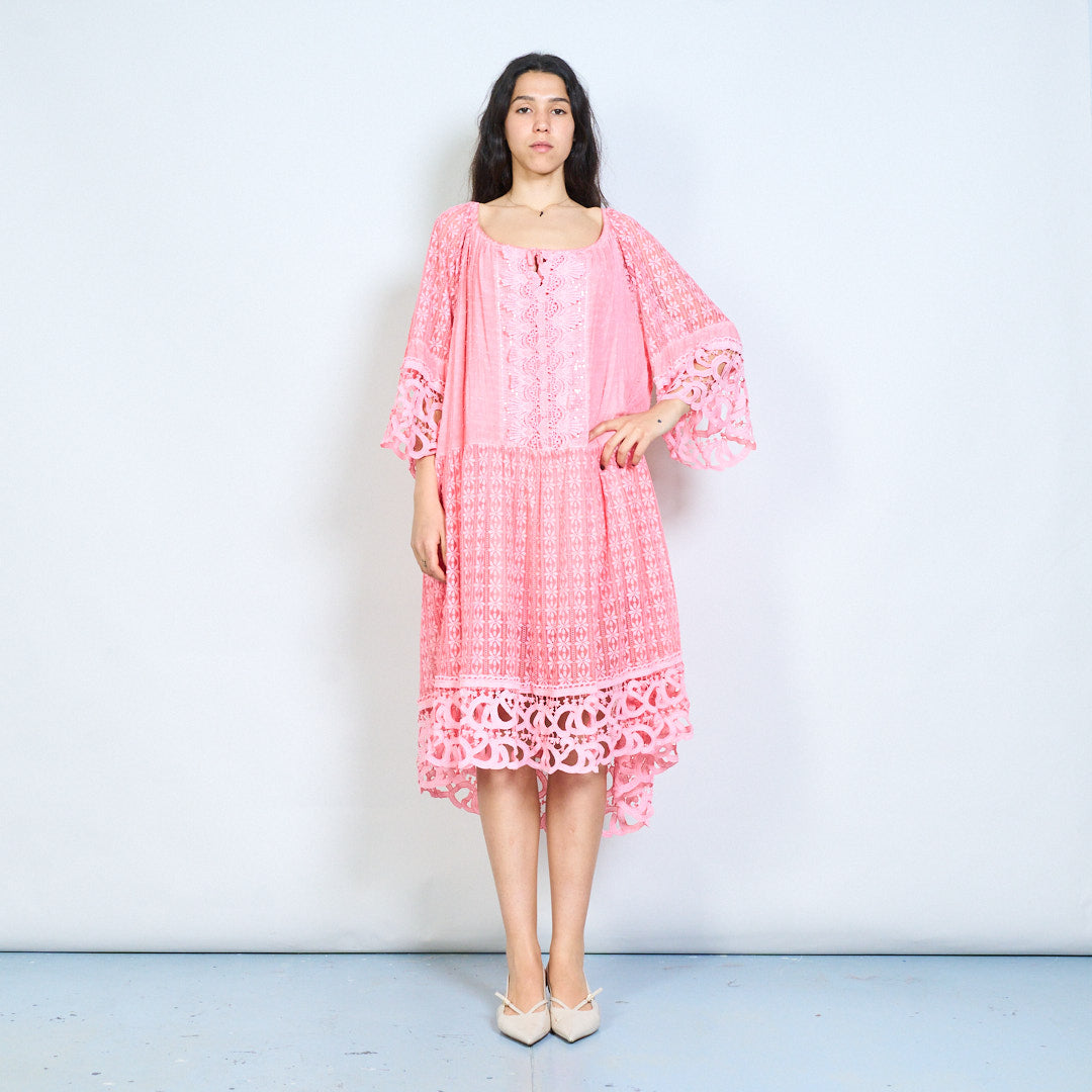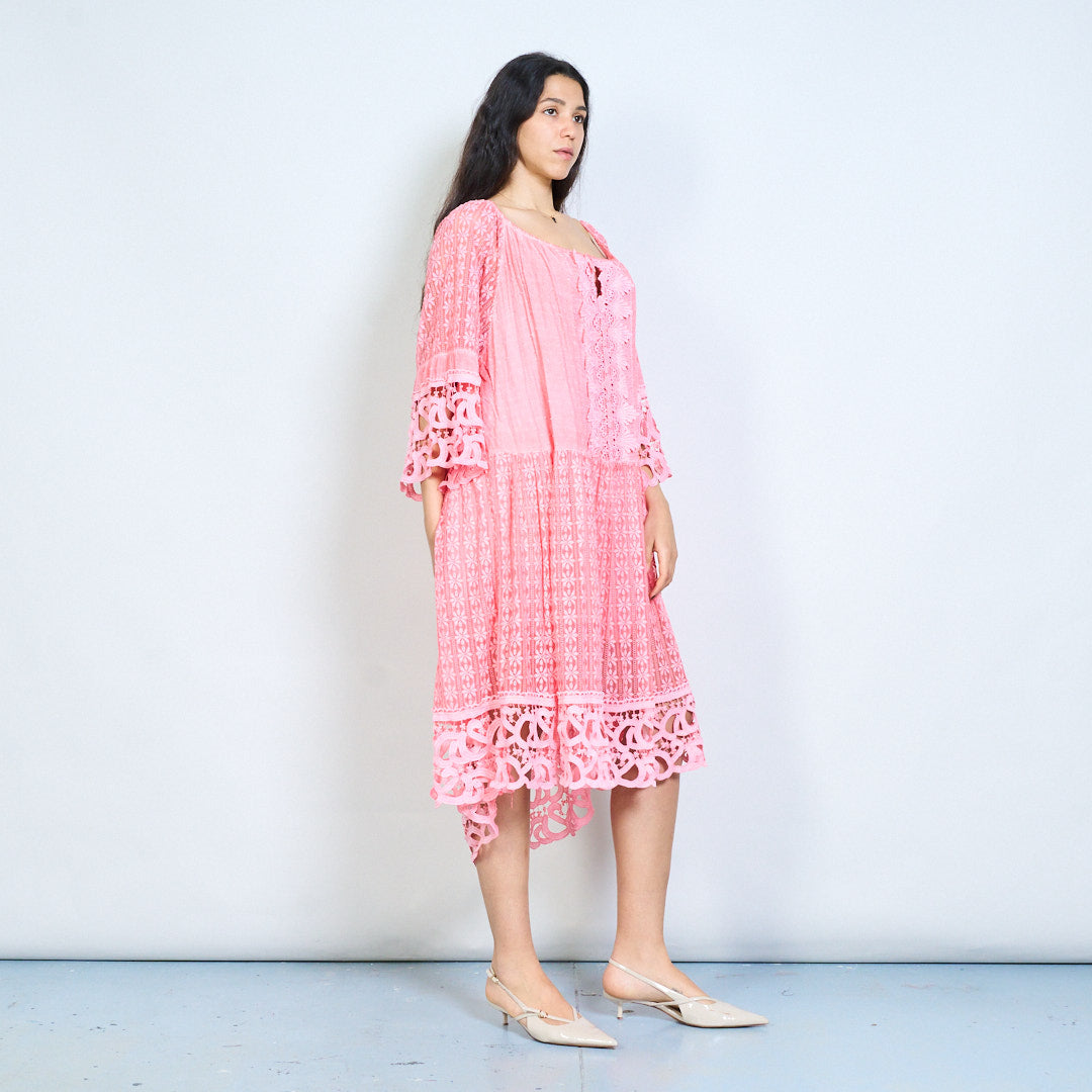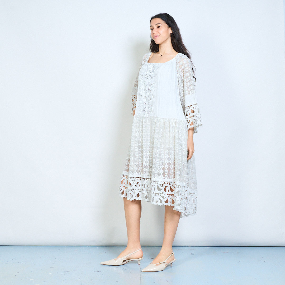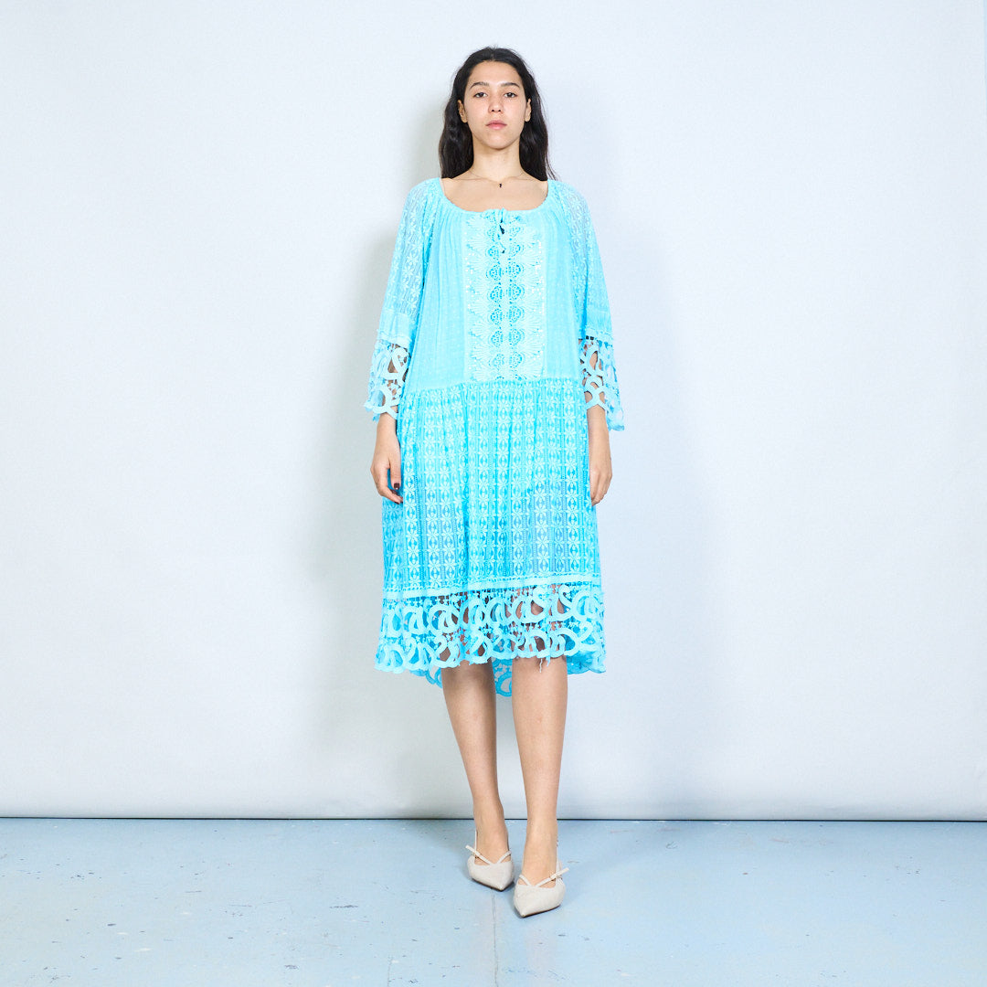 Crochet lace panel 3/4 sleeve loose maxi dress wholesale