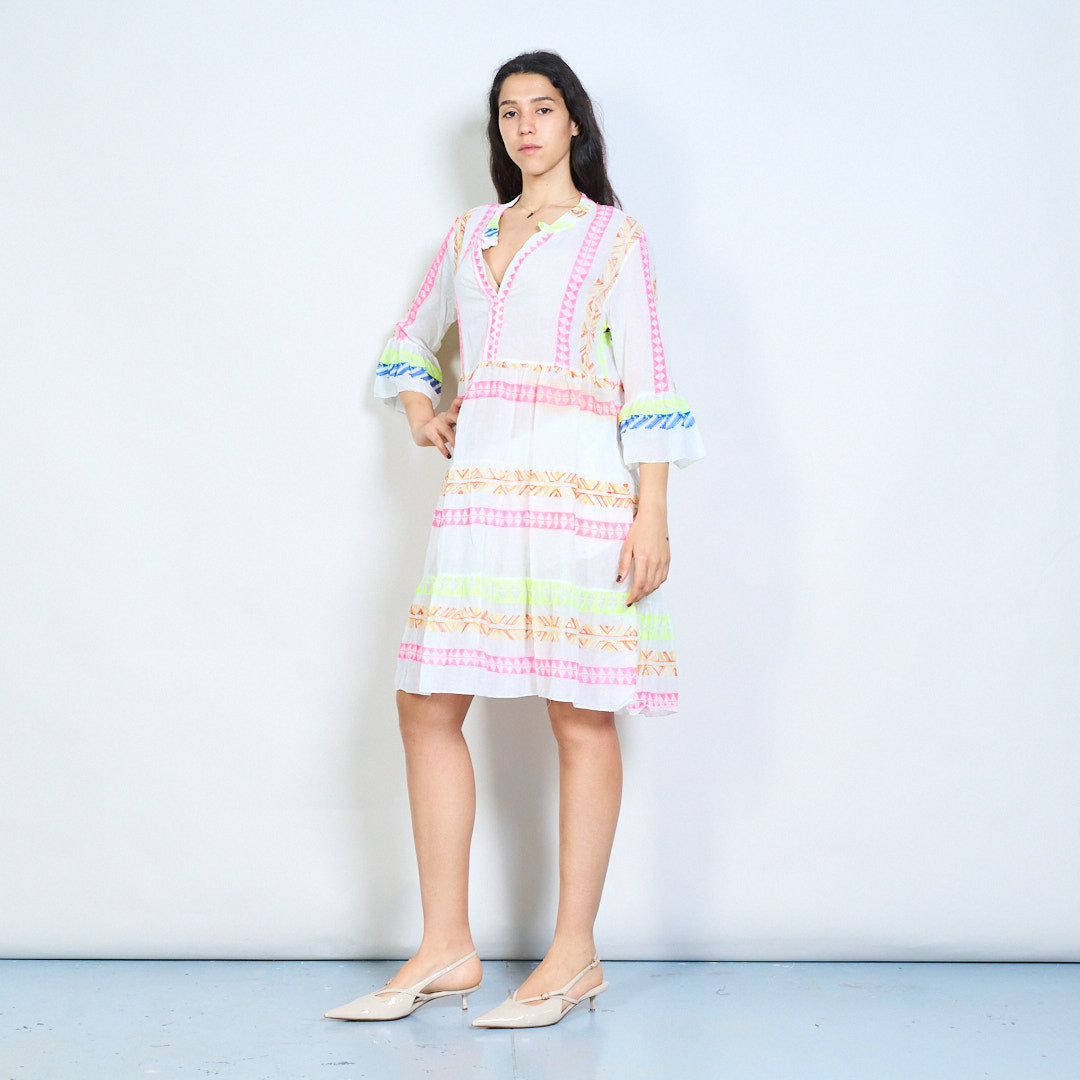 Geometric tribal stripe print v-neck loose midi dress wholesale