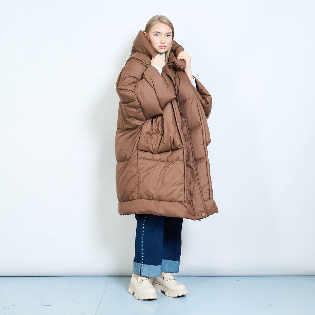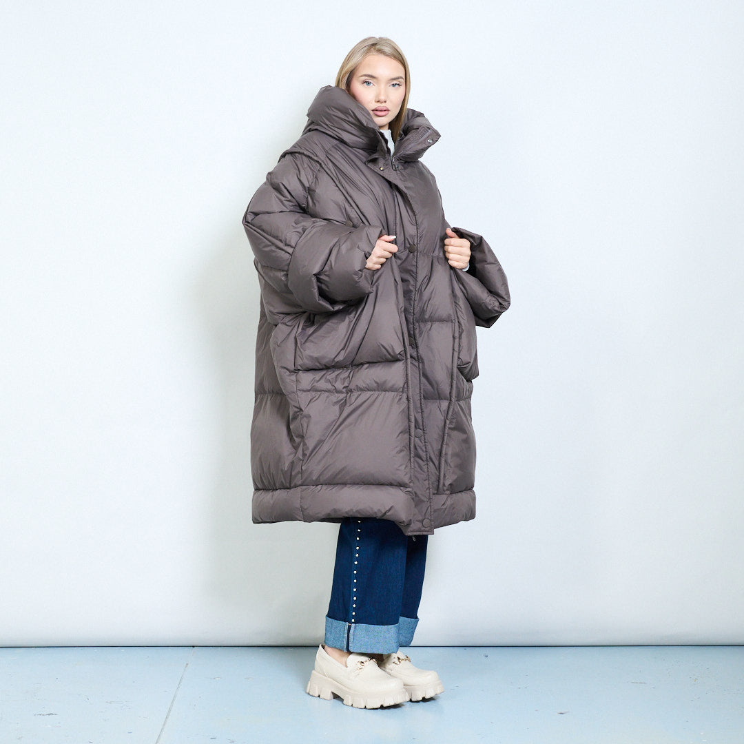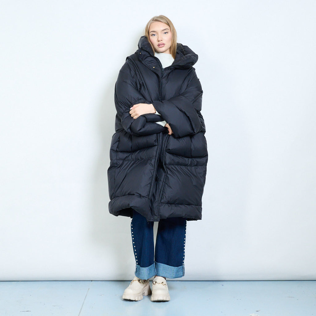 - Oversized silhouette offering maximum warmth and a relaxed, modern cold-weather look