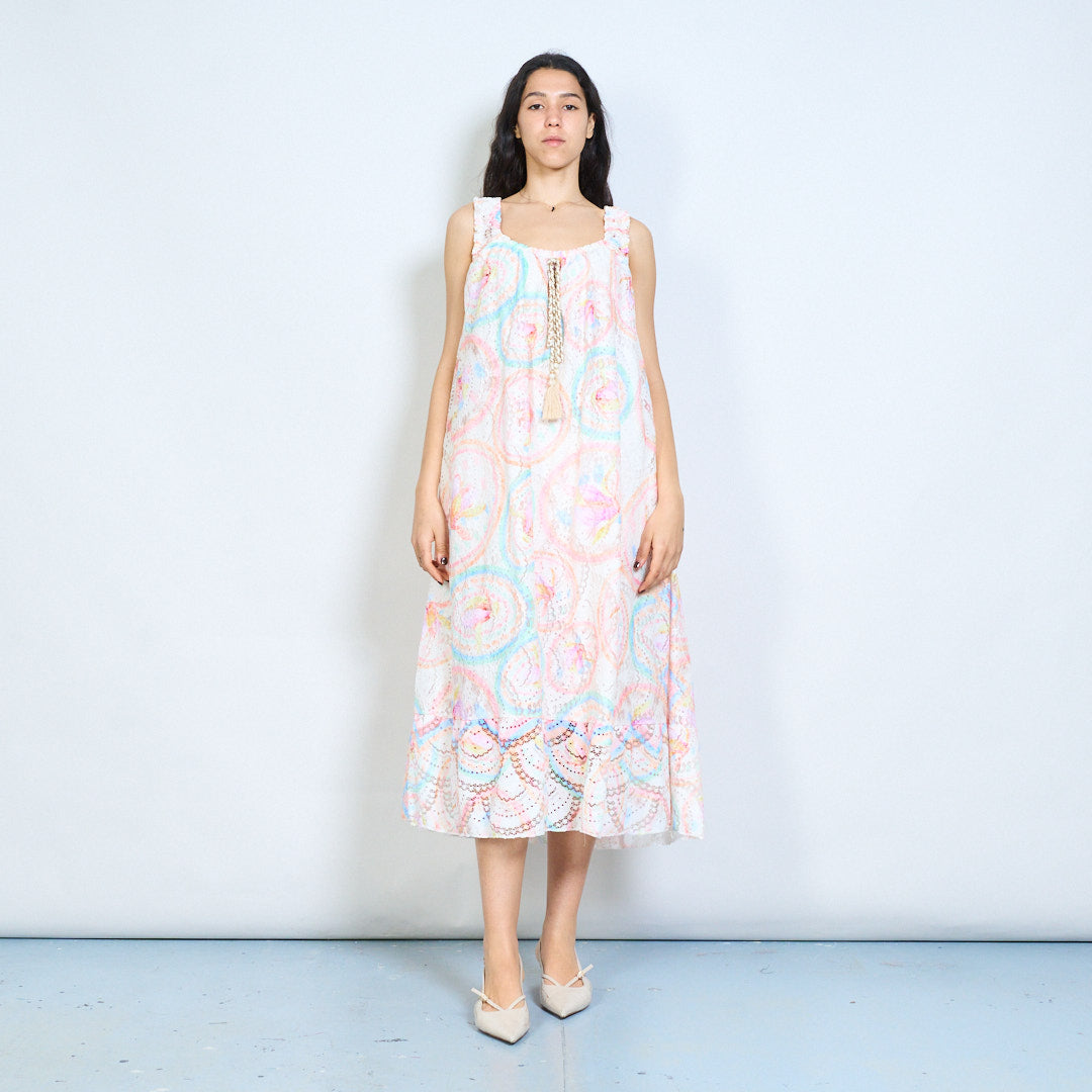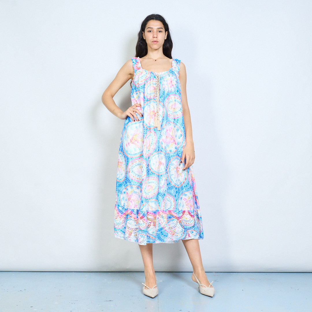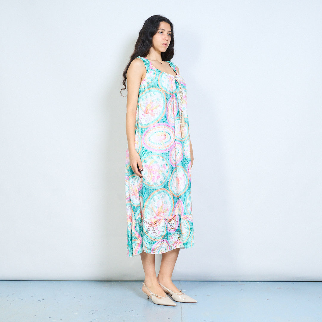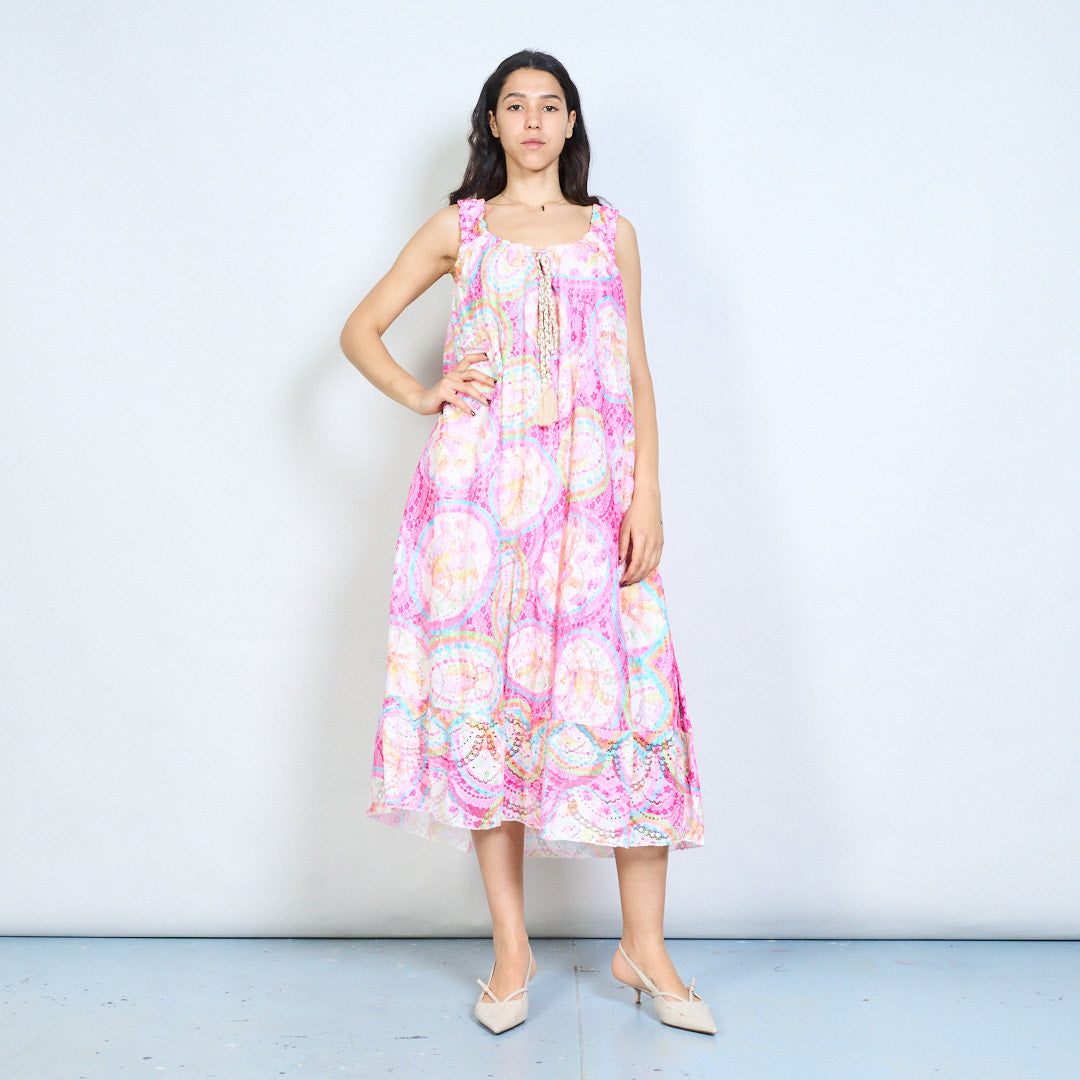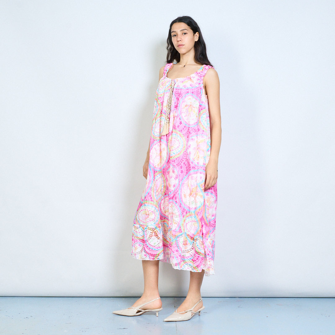 Paisley medallion print tassel tie sleeveless maxi dress wholesale