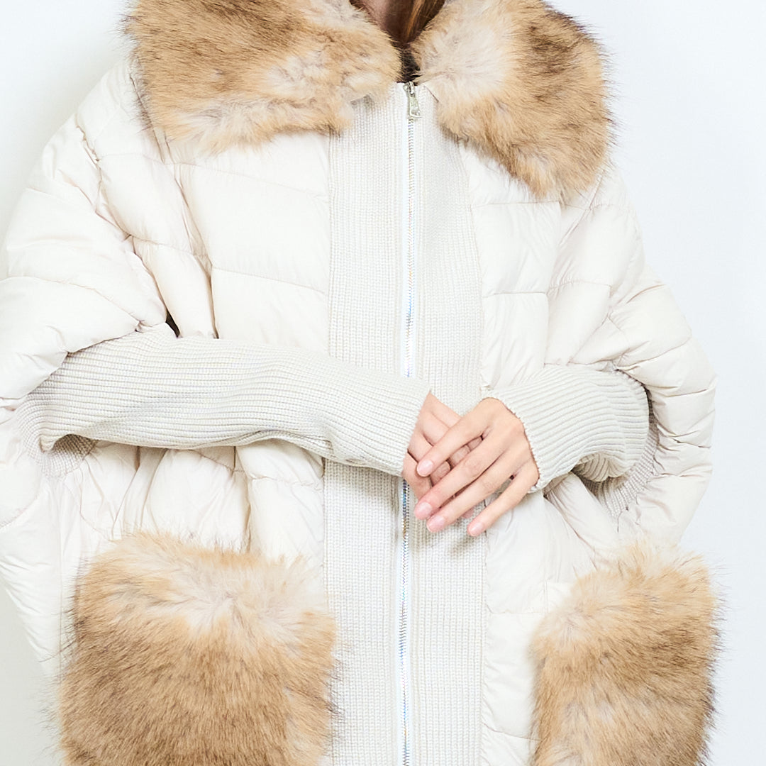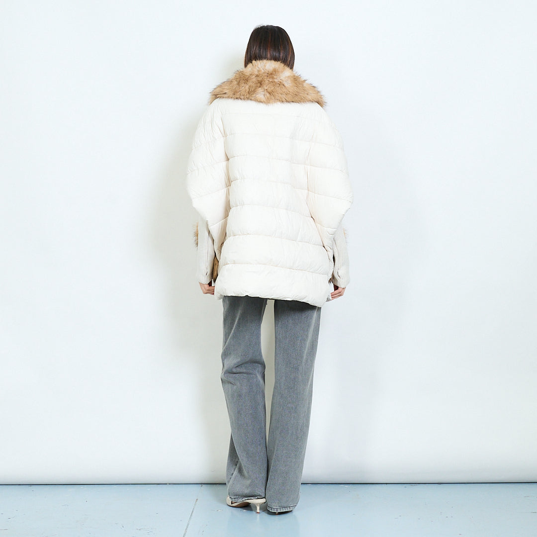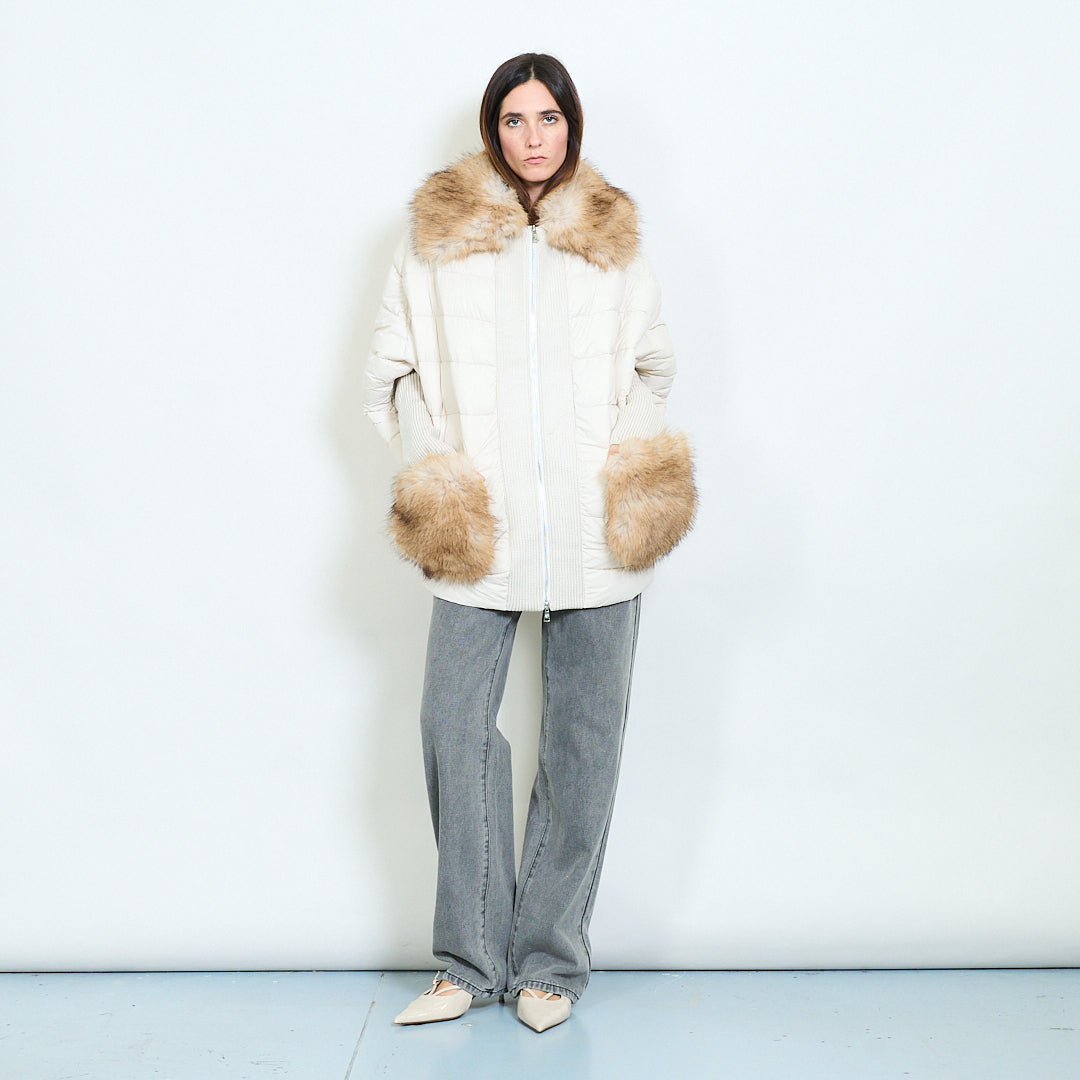 Quilted puffer jacket with oversized faux fur collar and hem detail wholesale