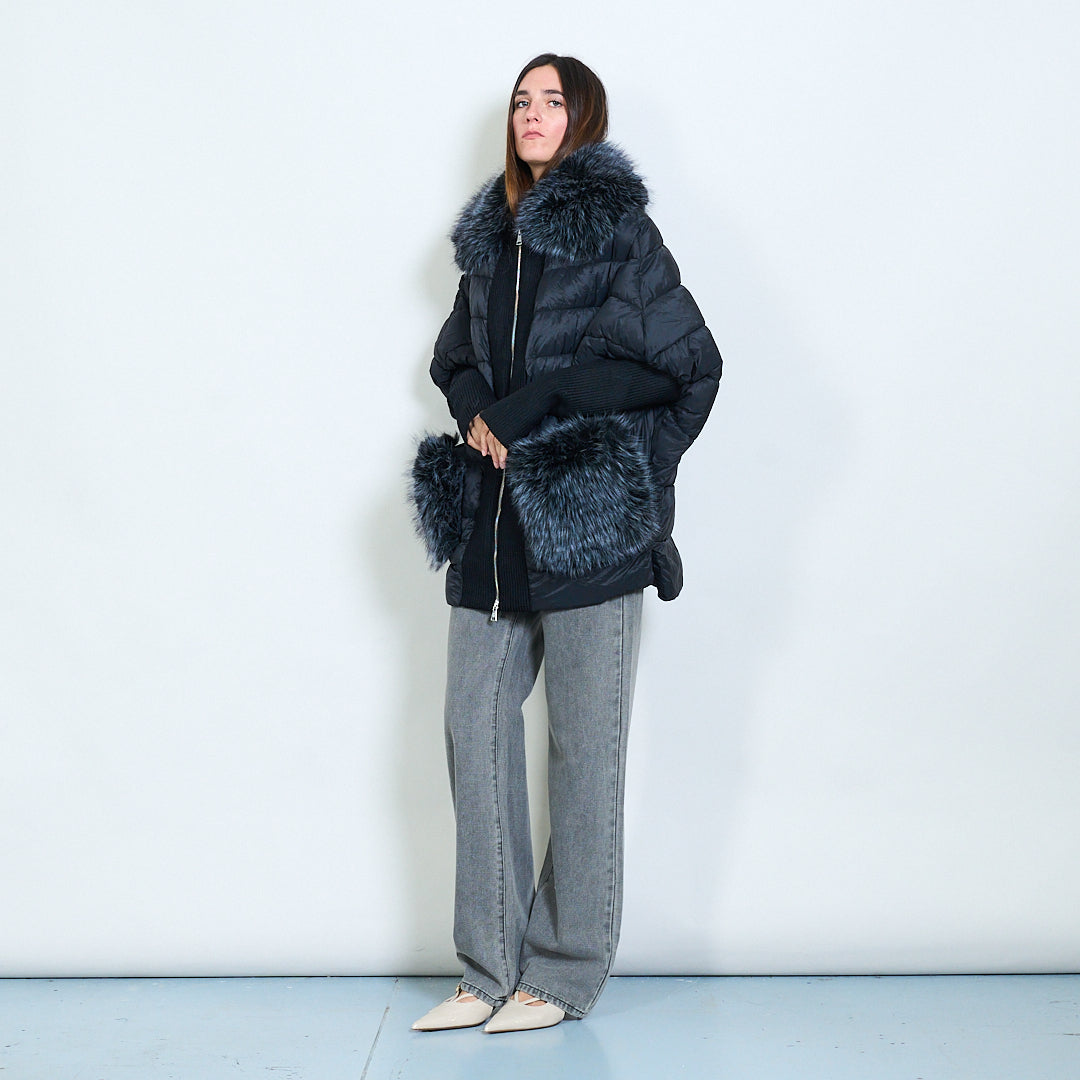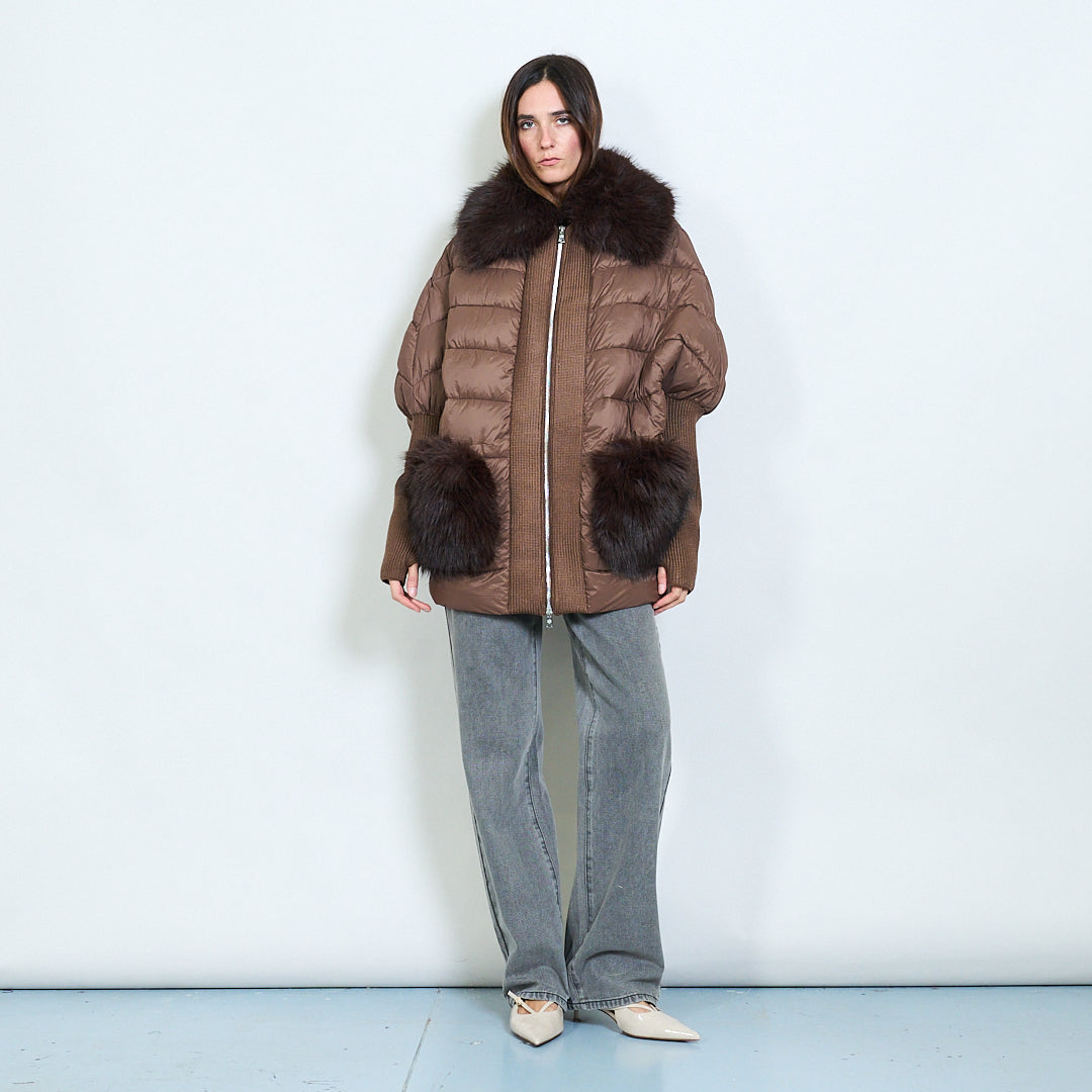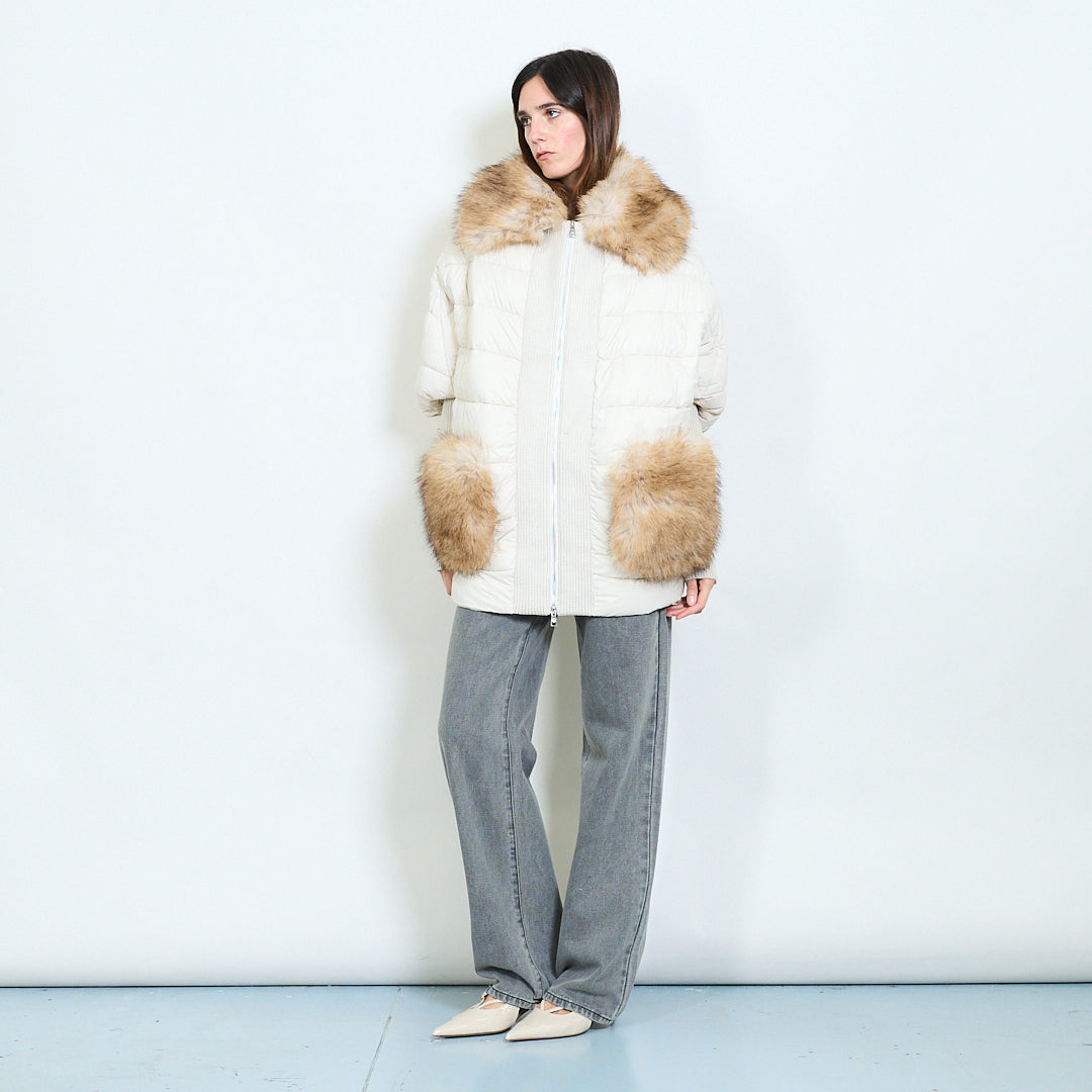 Quilted puffer jacket with oversized faux fur collar and hem detail wholesale