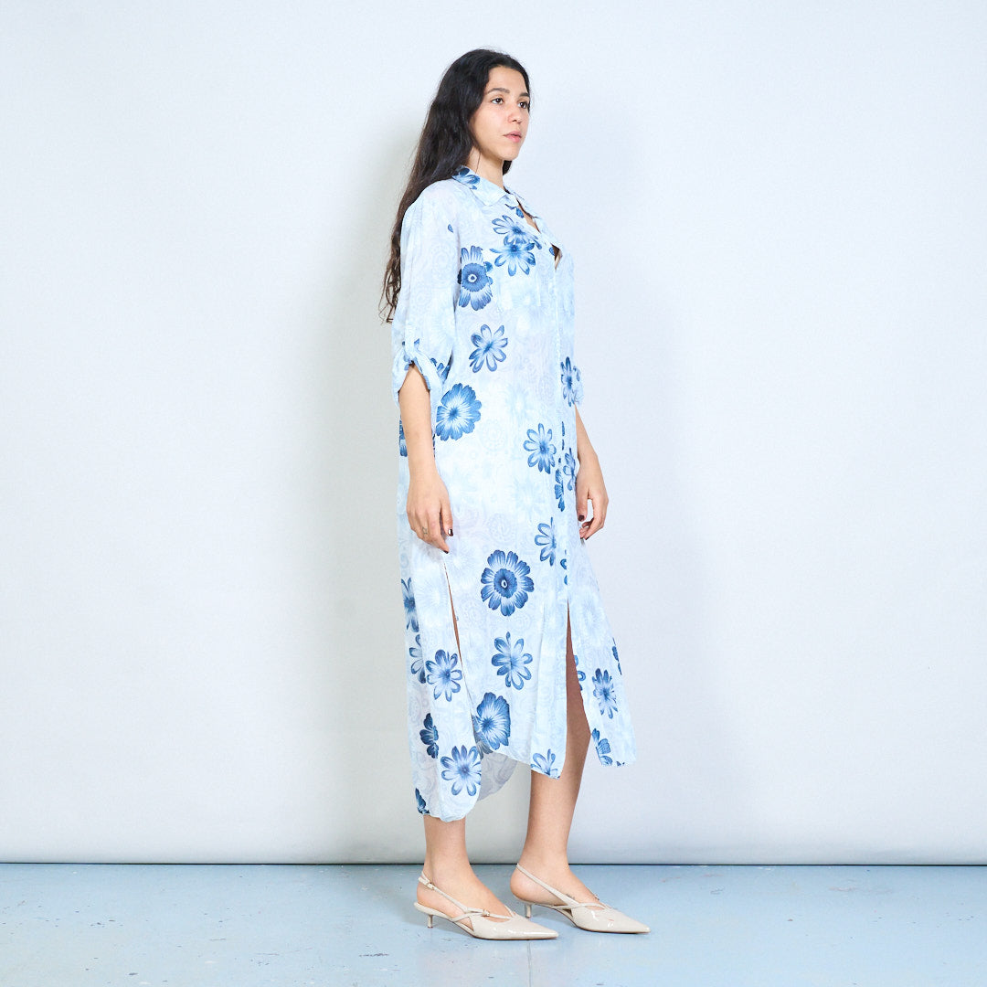 Bold daisy print button down shirt ma...