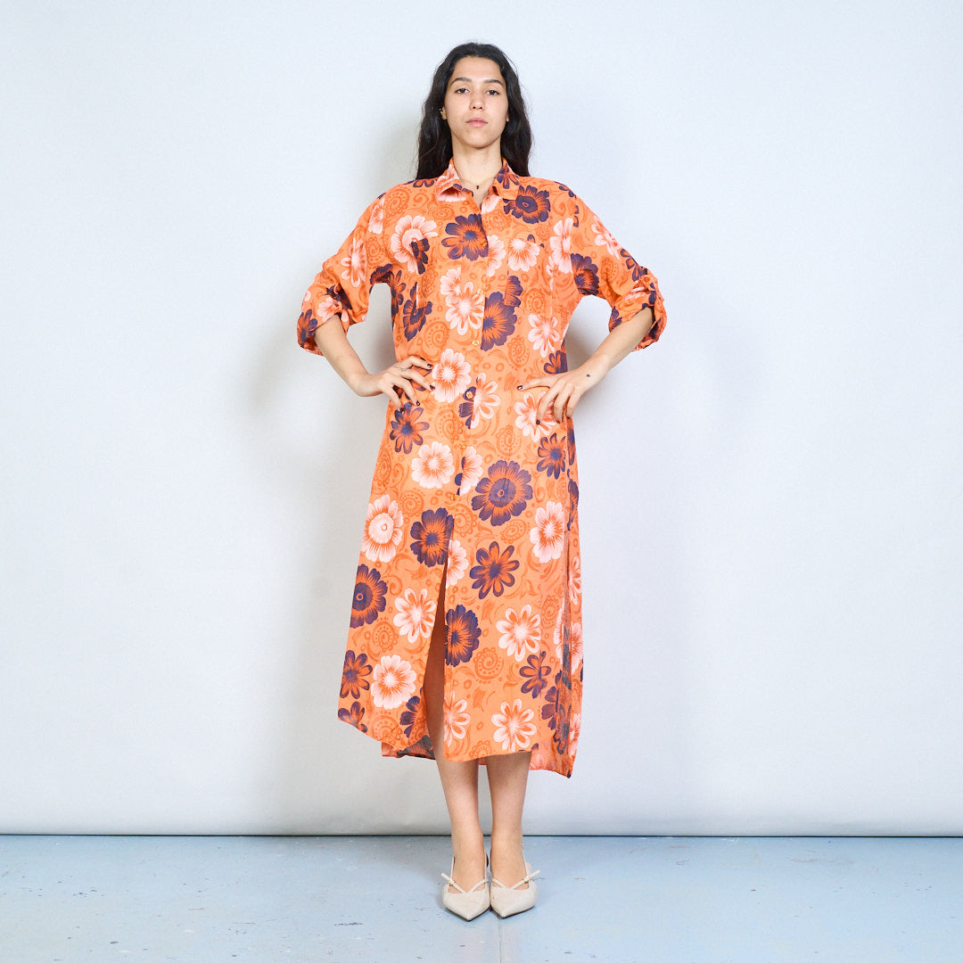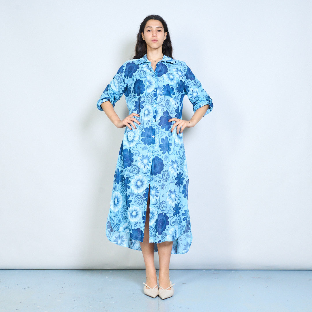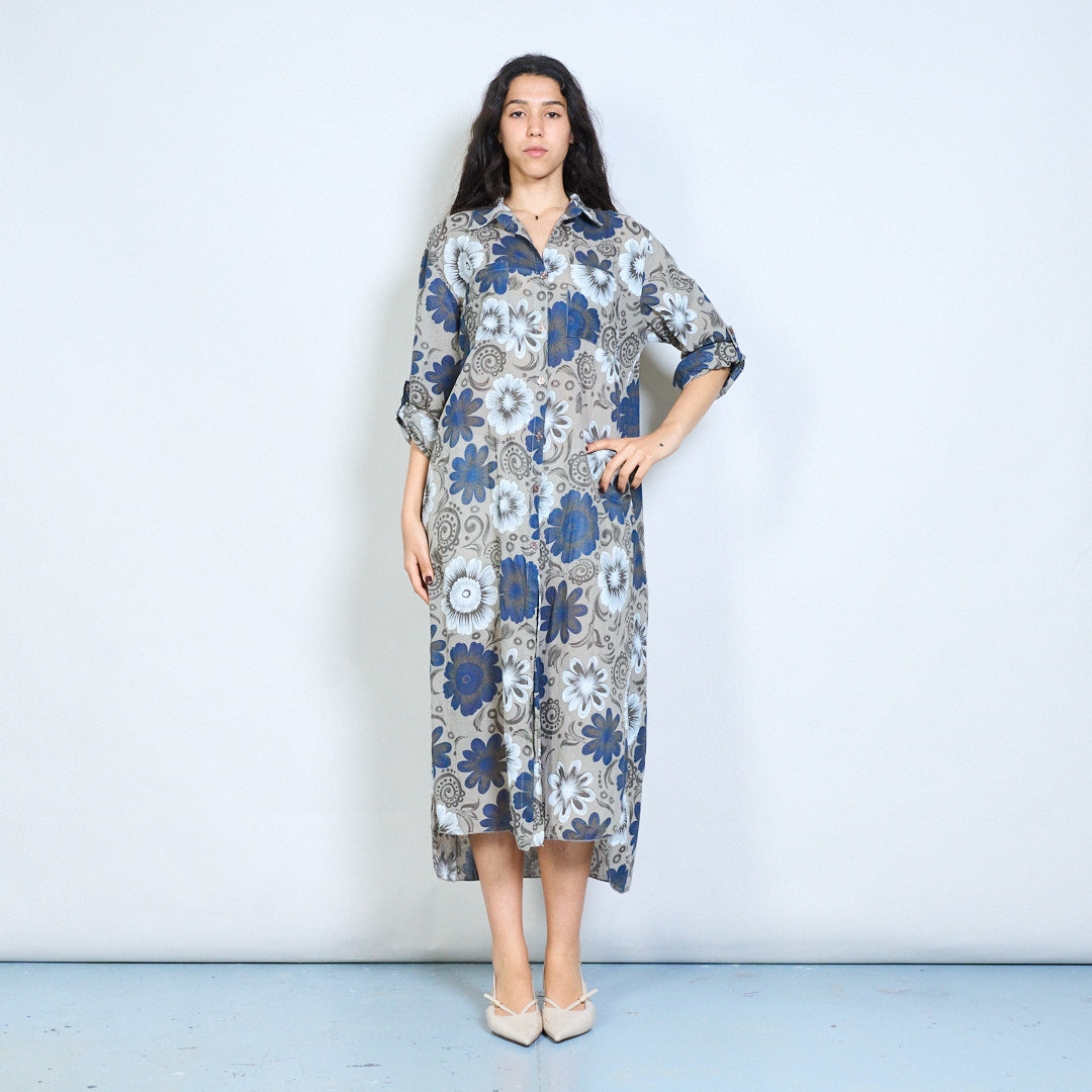 Retro floral paisley print button down midi dress wholesale