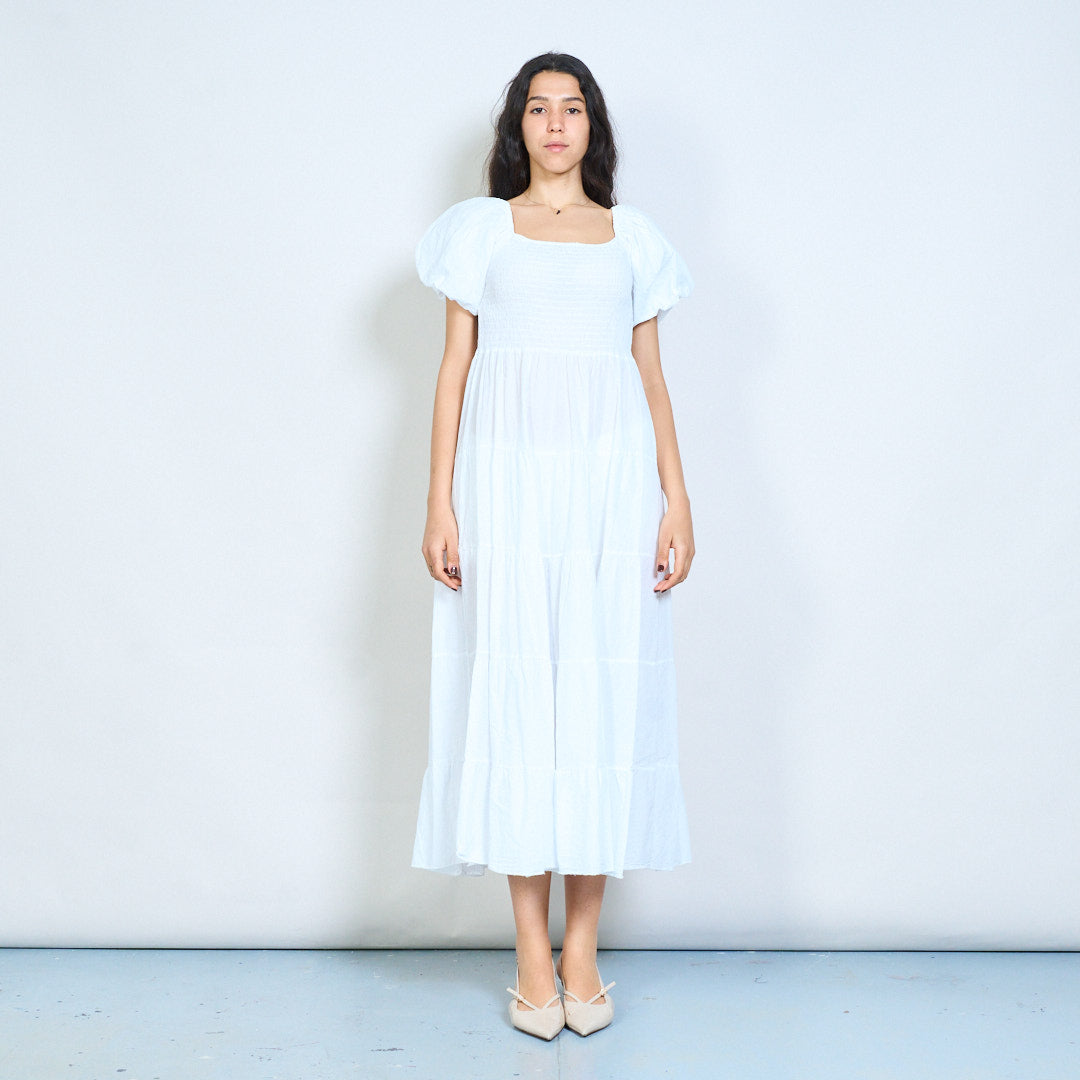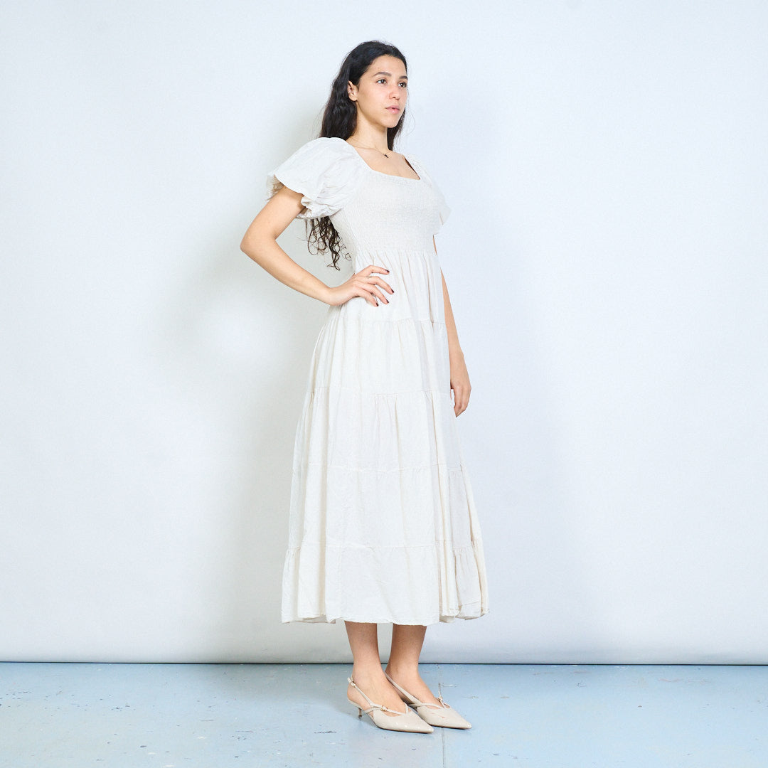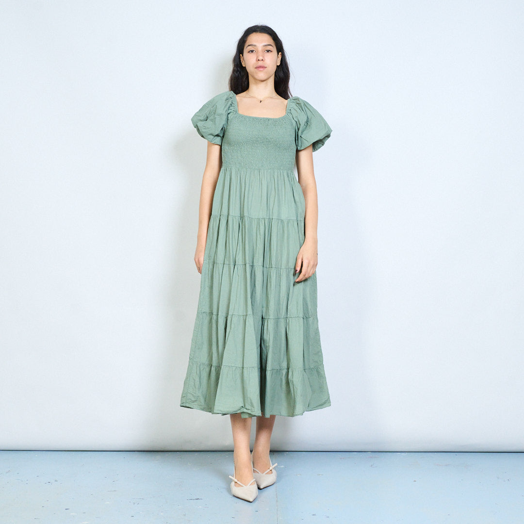 Smocked bodice puff sleeve tiered maxi dress wholesale