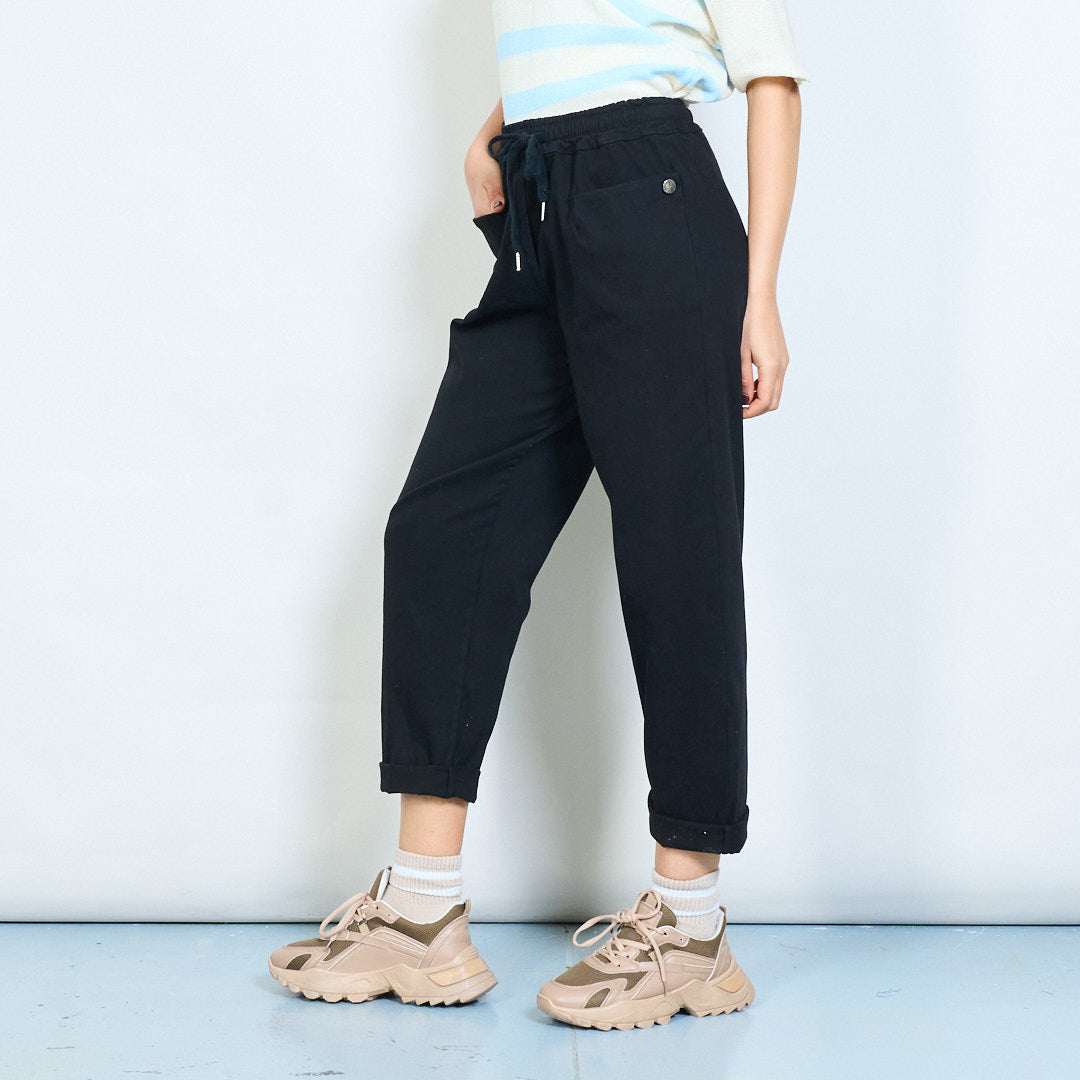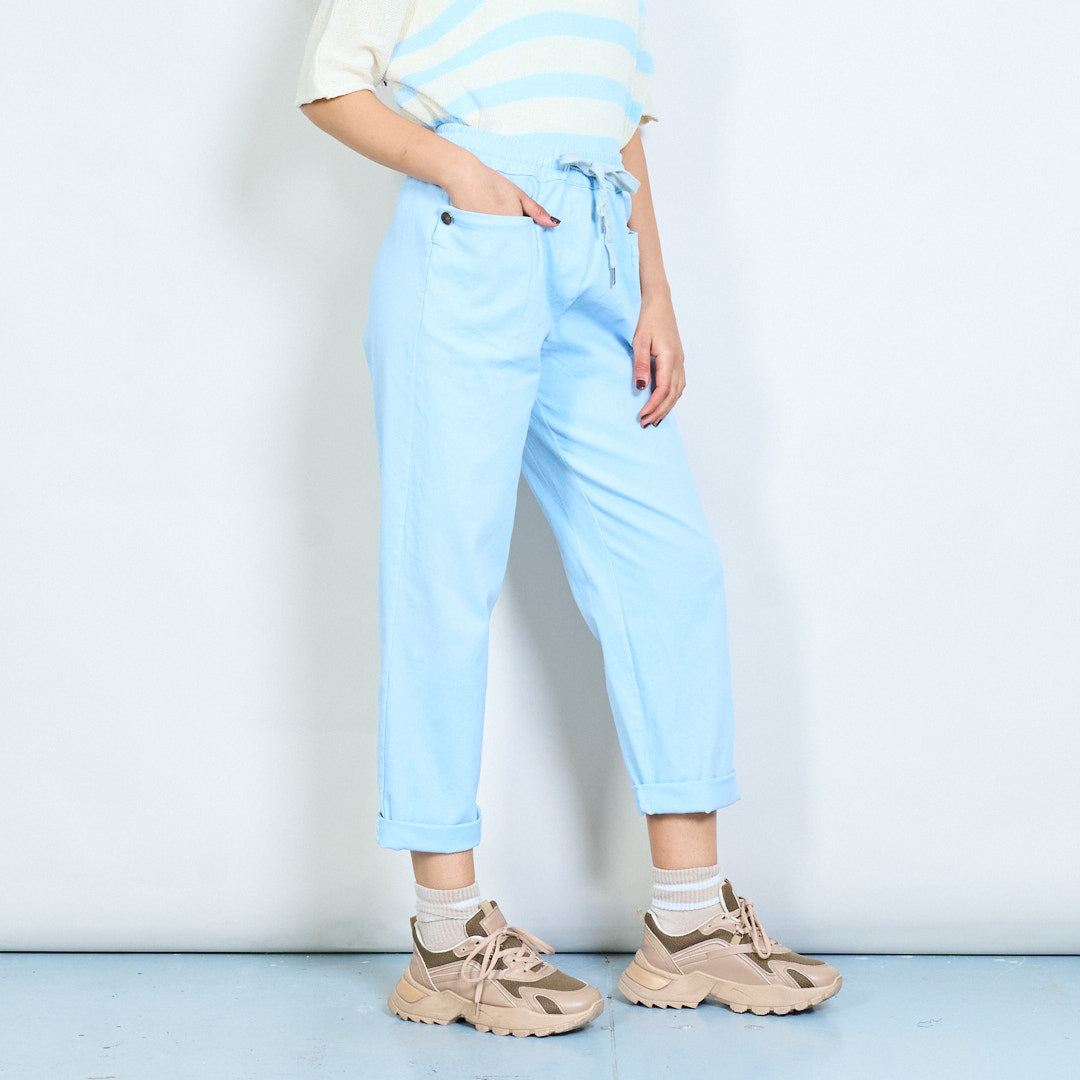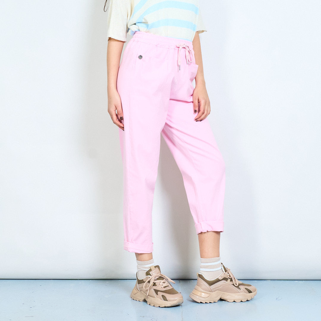 Drawstring elastic waist relaxed fit rolled hem trousers wholesale