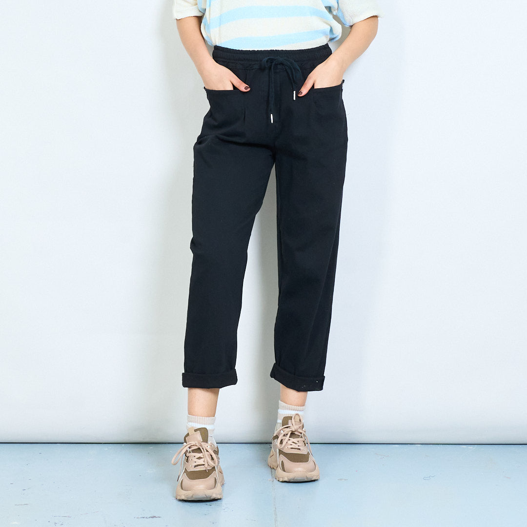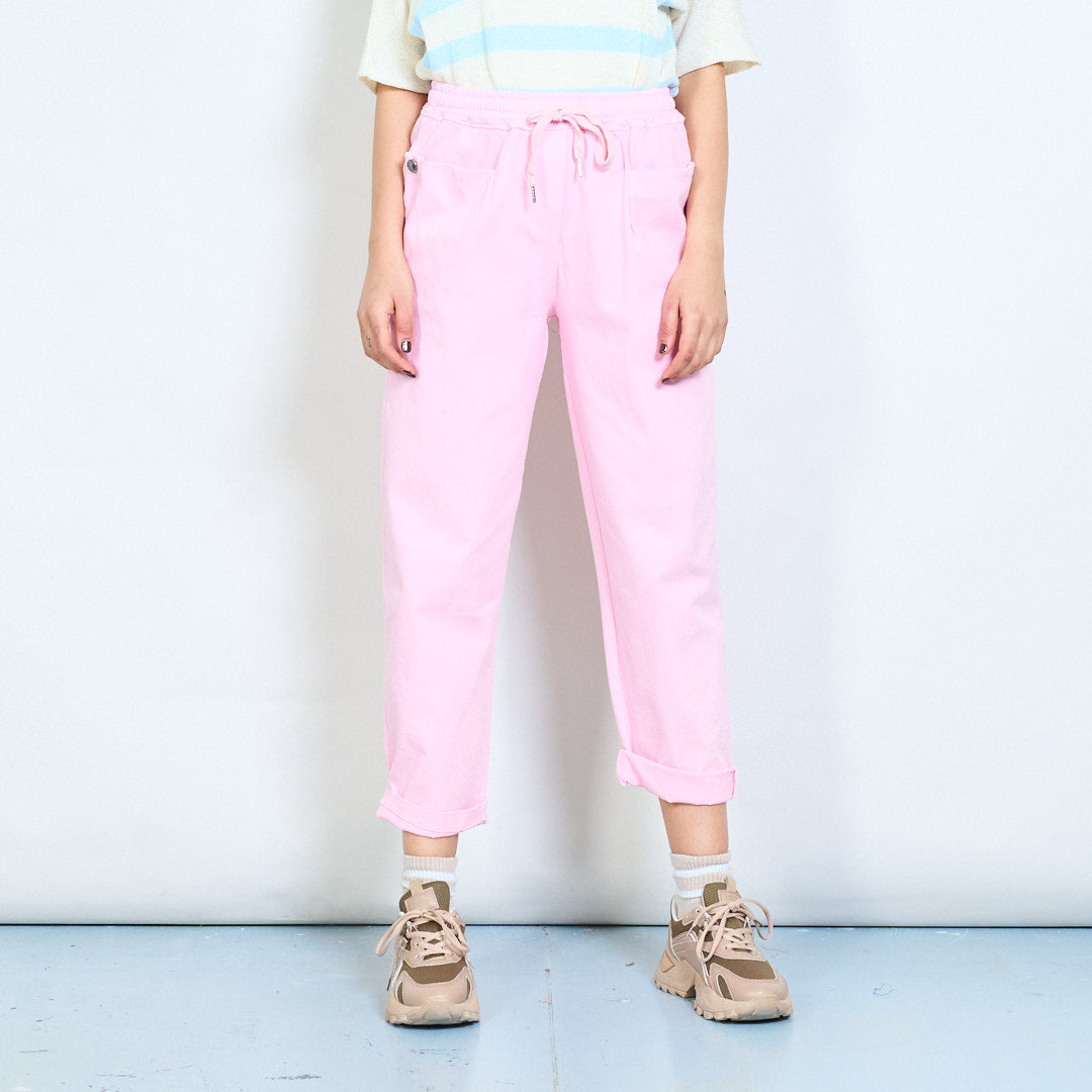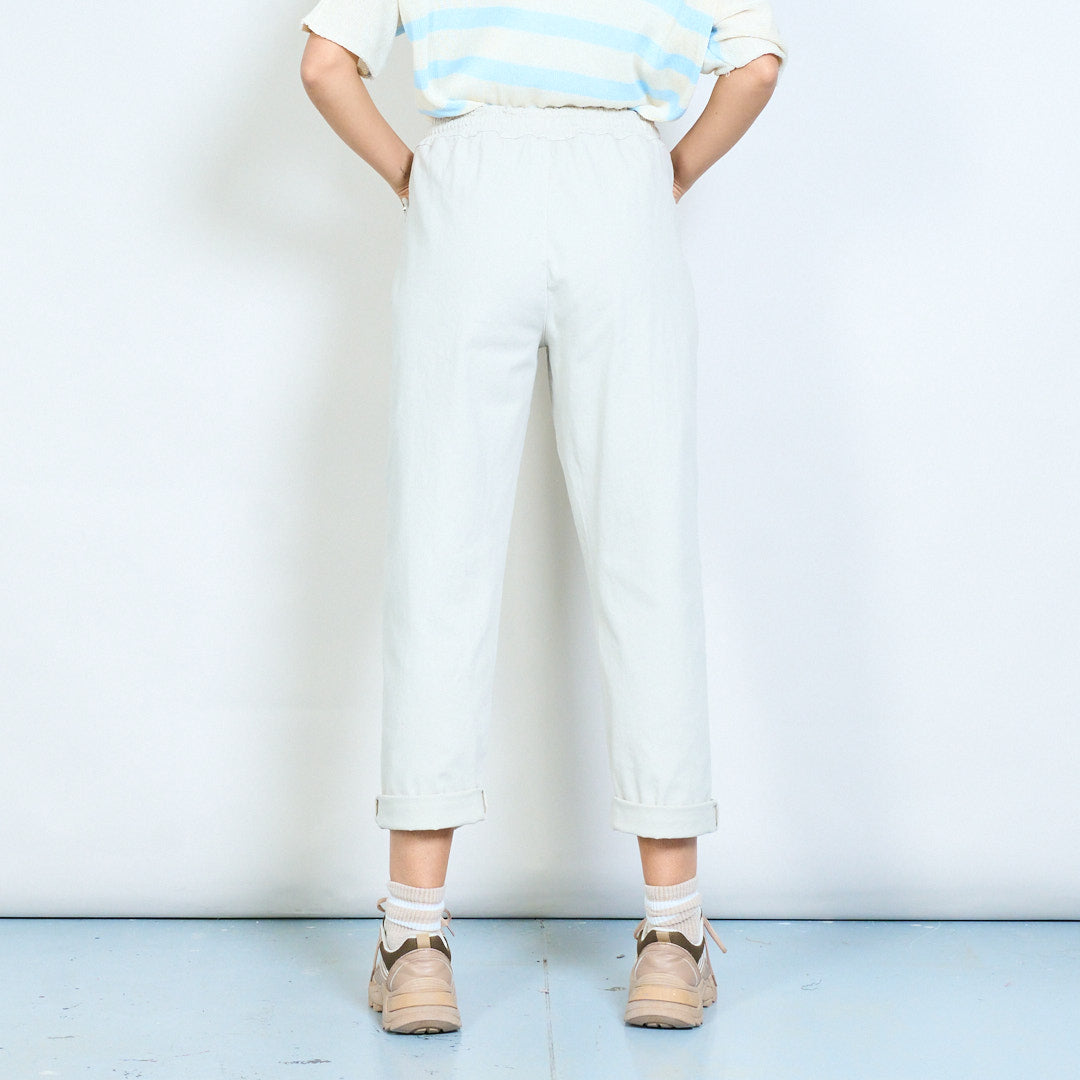 Drawstring elastic waist relaxed fit rolled hem trousers wholesale