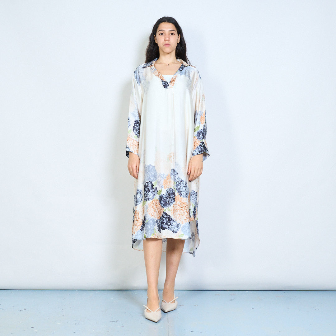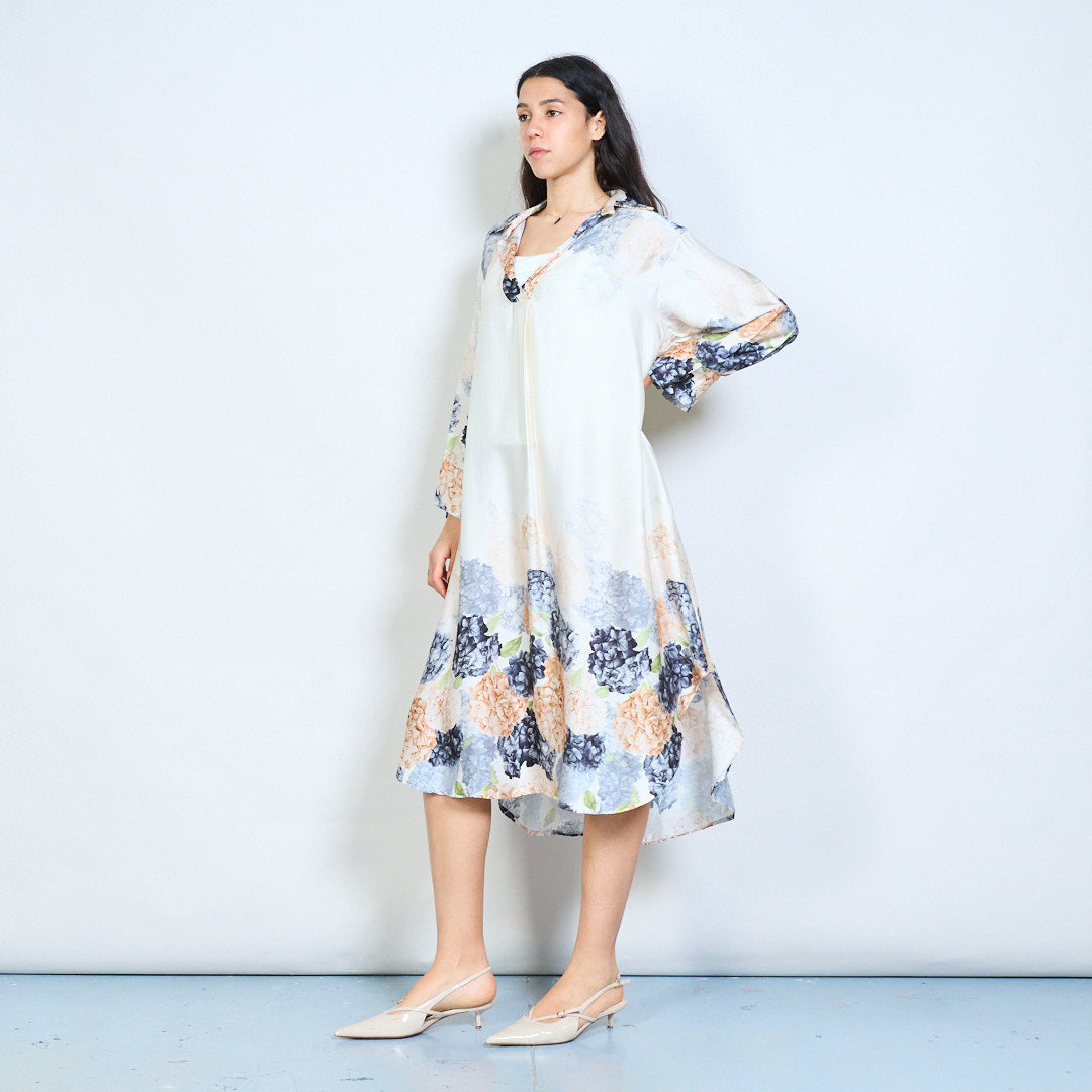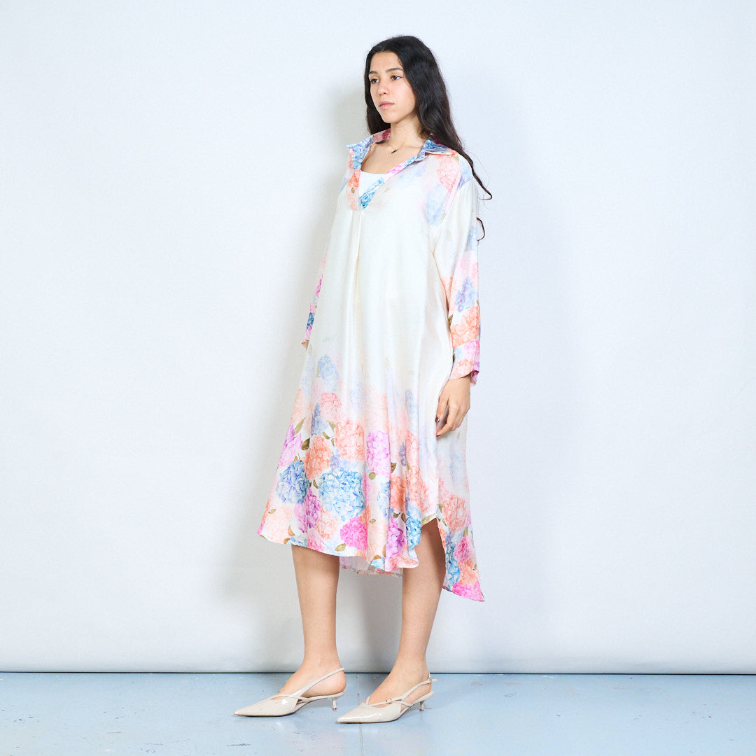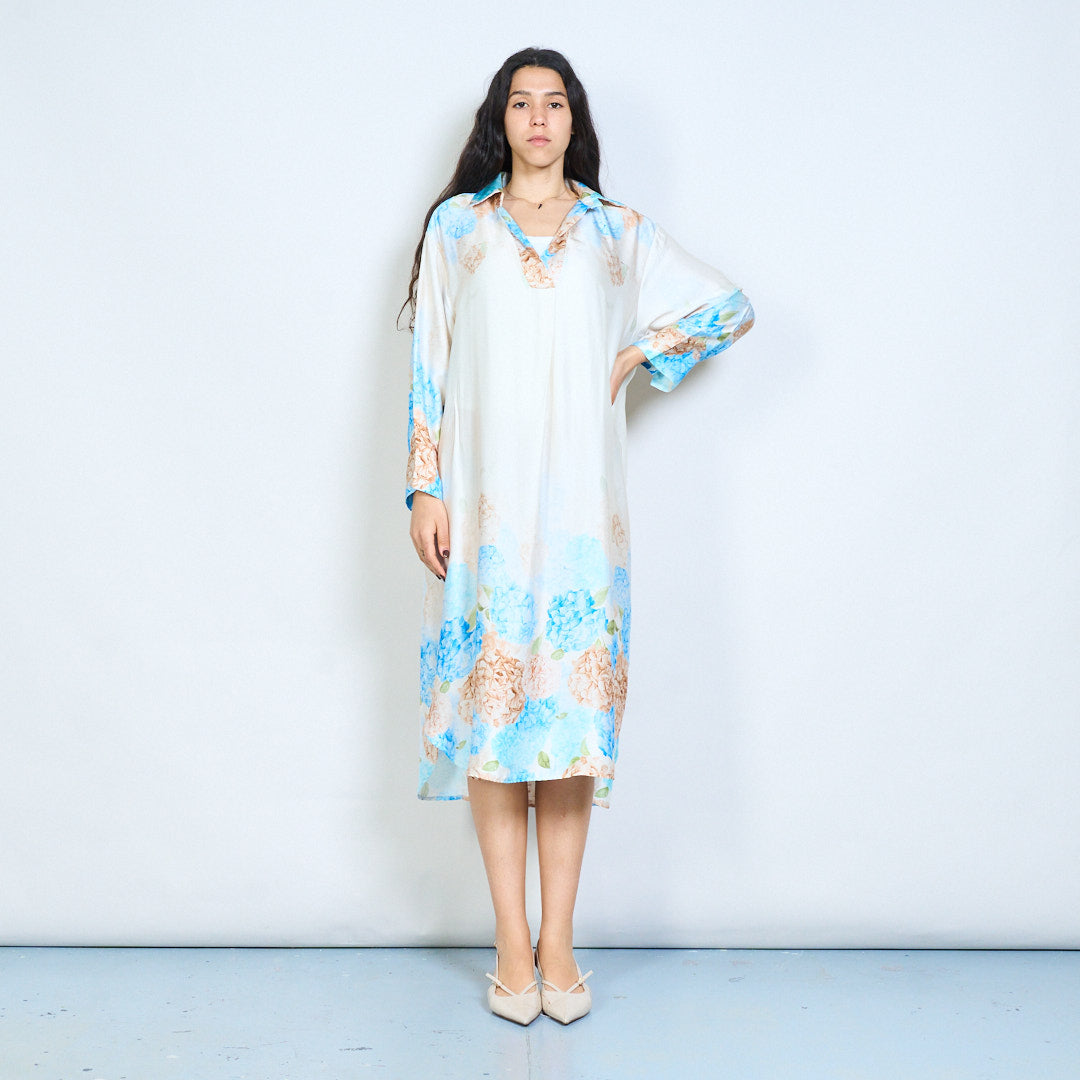 Hydrangea floral print collared midi dress wholesale